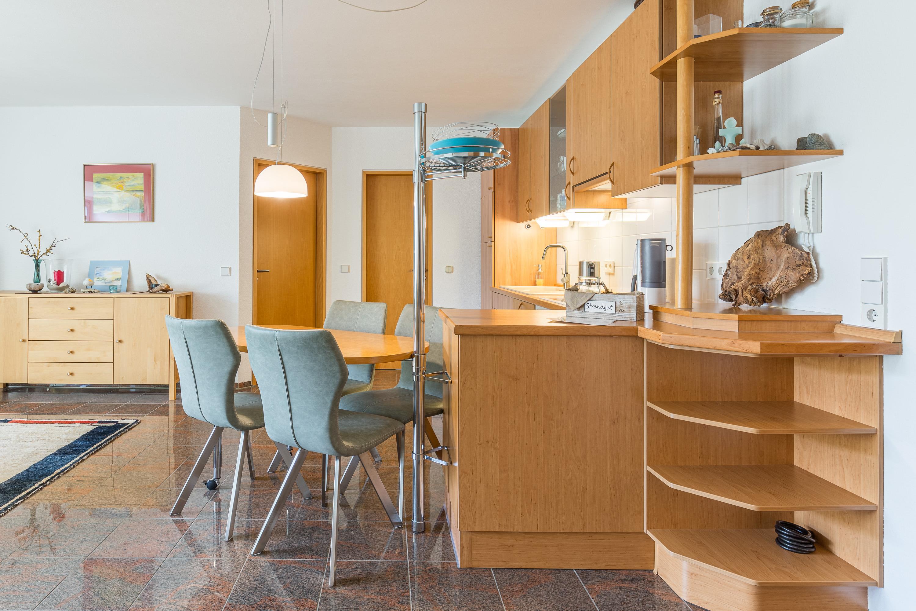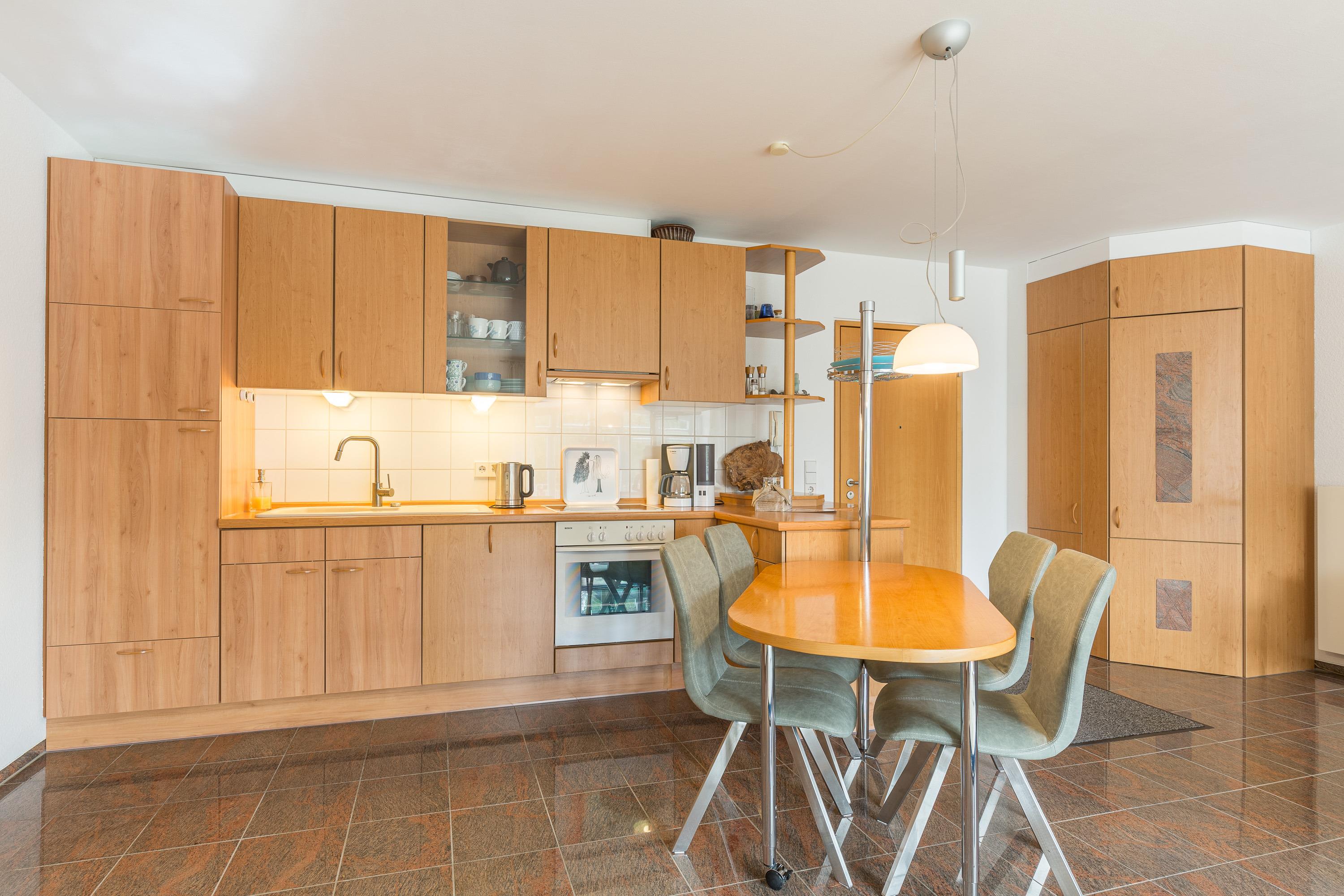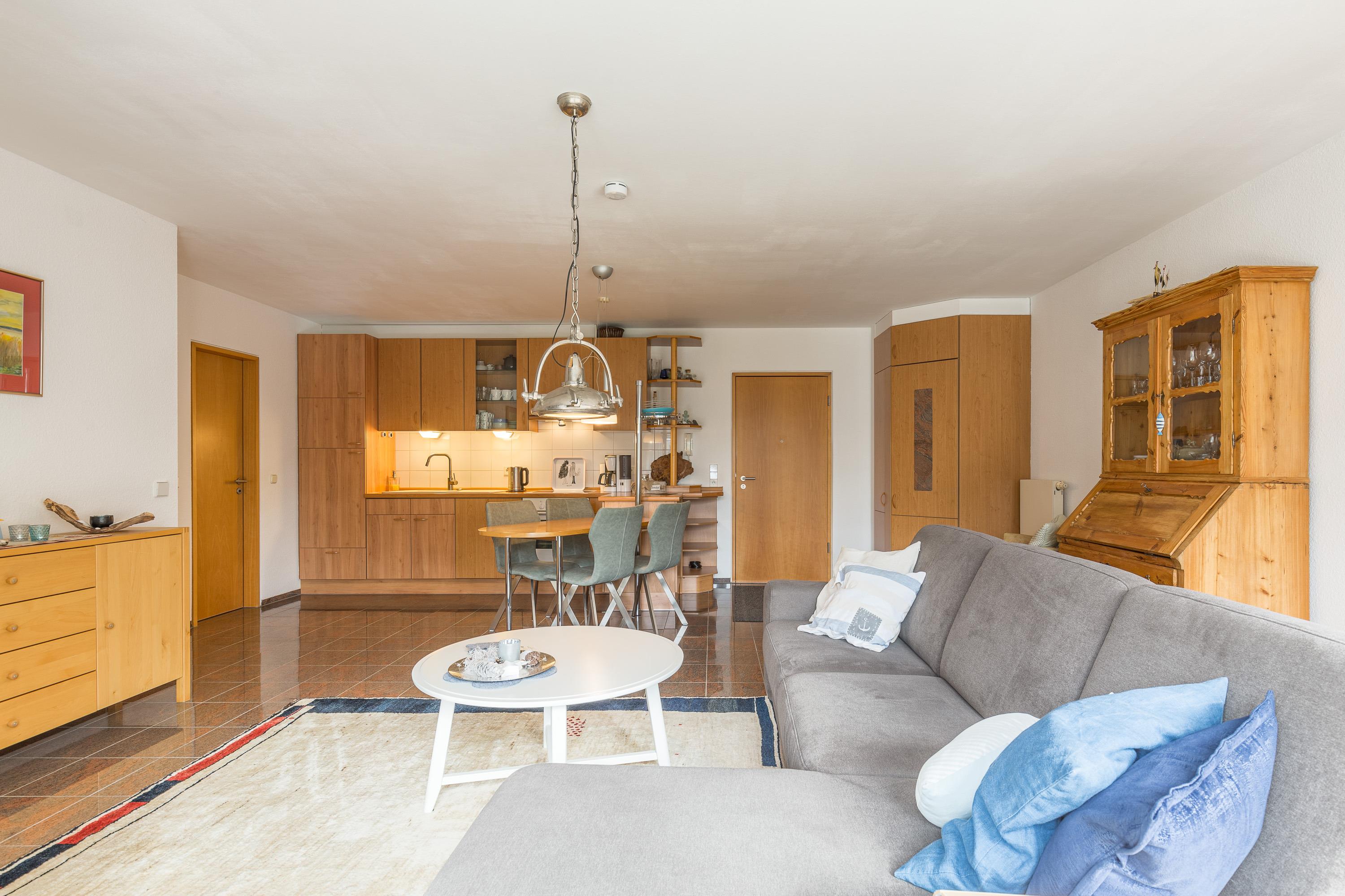 Die Wohnung verfügt über eine hervorragende Ausstattung: Garderobe, Wohnzimmer mit bequemer Couch, Esstisch, Fernseher mit SAT-Anlage, Stereo-Anlage mit CD-Player, Wify über eine Gigabox, Küchenzeile (Kühlschrank mit Gefrierfach, Geschirrspüler, Toaster, Kaffeemaschine, Herd mit Ceranfeld und Backofen). Ein schönes Duschbad mit Waschmaschine komplettiert das Appartement.