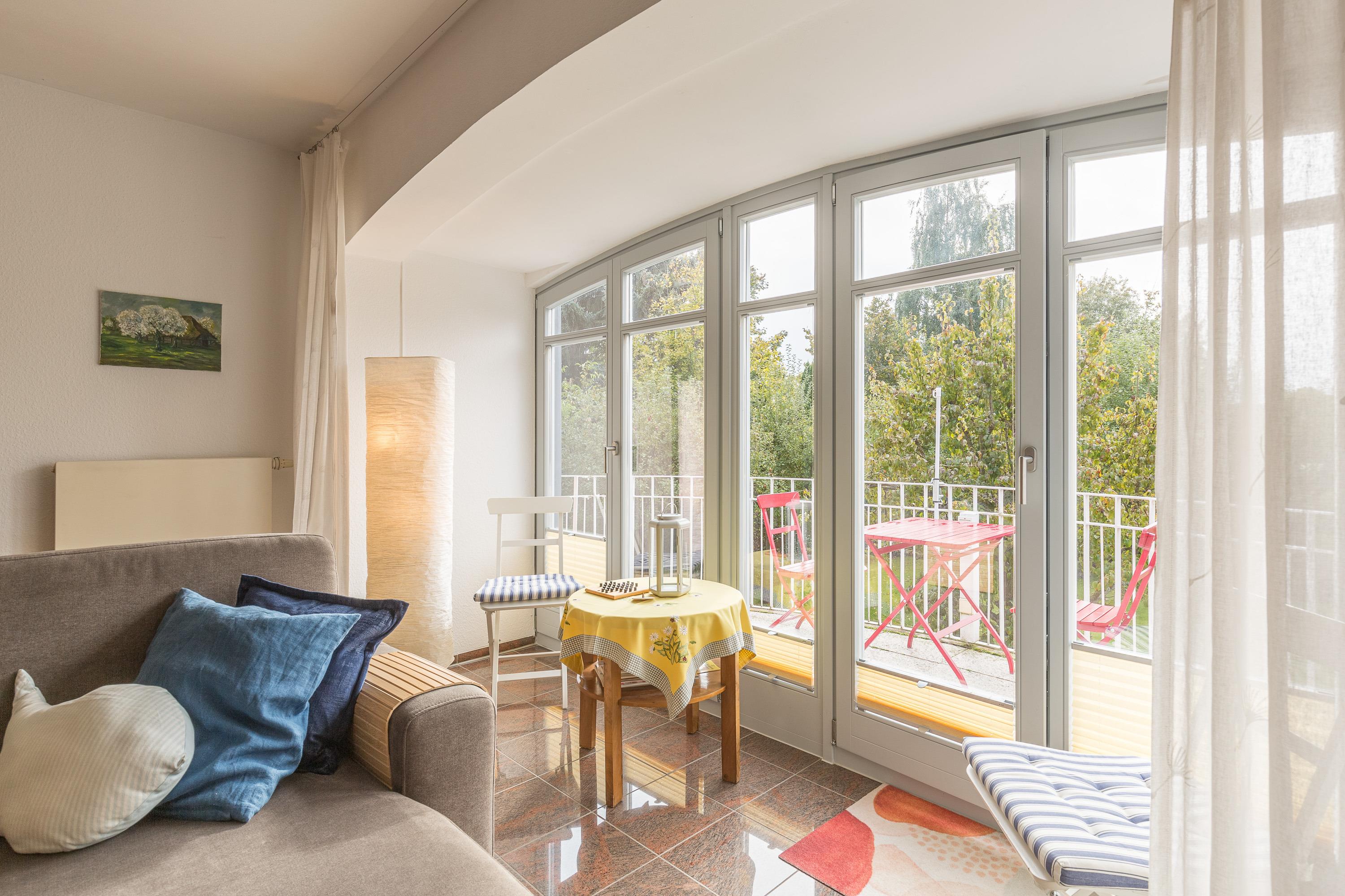 In zurückgesetzter Lage nur 150 m von der Ostsee entfernt, liegt das Haus "Villa Sonnengarten" mit der Ferienwohnung Nr. 4. Das gemütliche und geschmackvoll eingerichtete 3-Zimmer-Appartement liegt im 1. OG und bietet bequem Platz für 2-4 Personen.