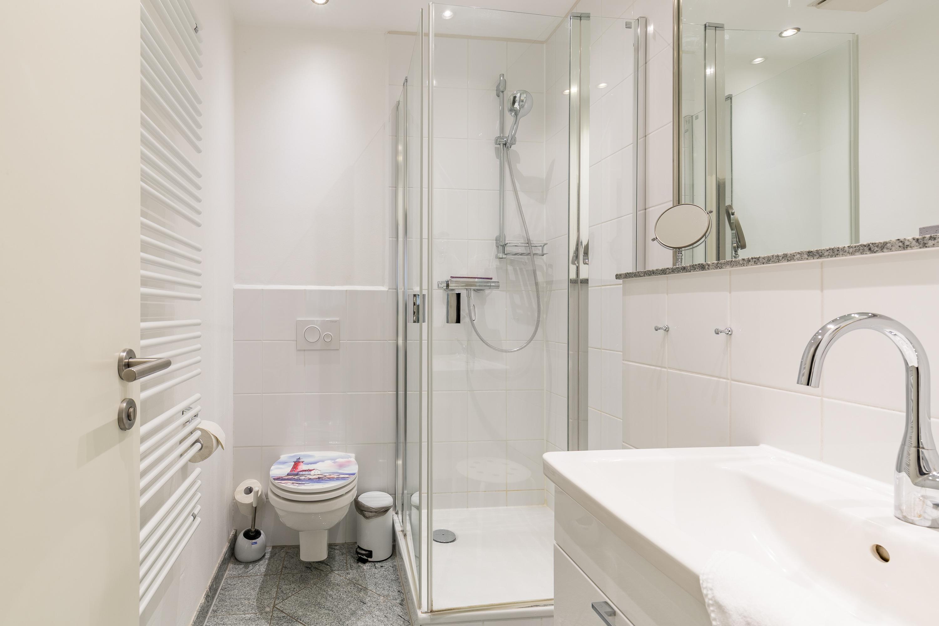 Die Ferienwohnung Nr. 9 liegt im 1. Obergeschoss zur Seeseite mit freiem Ostsee- Meeresblick und ist 37 qm groß. Sie ist modern und mit hochwertigen Möbeln ausgestattet und verfügt über eine komfortable Küchenzeile mit Backofen, Geschirrspülmaschine und Mikrowelle sowie ein komfortables Duschbad mit WC.