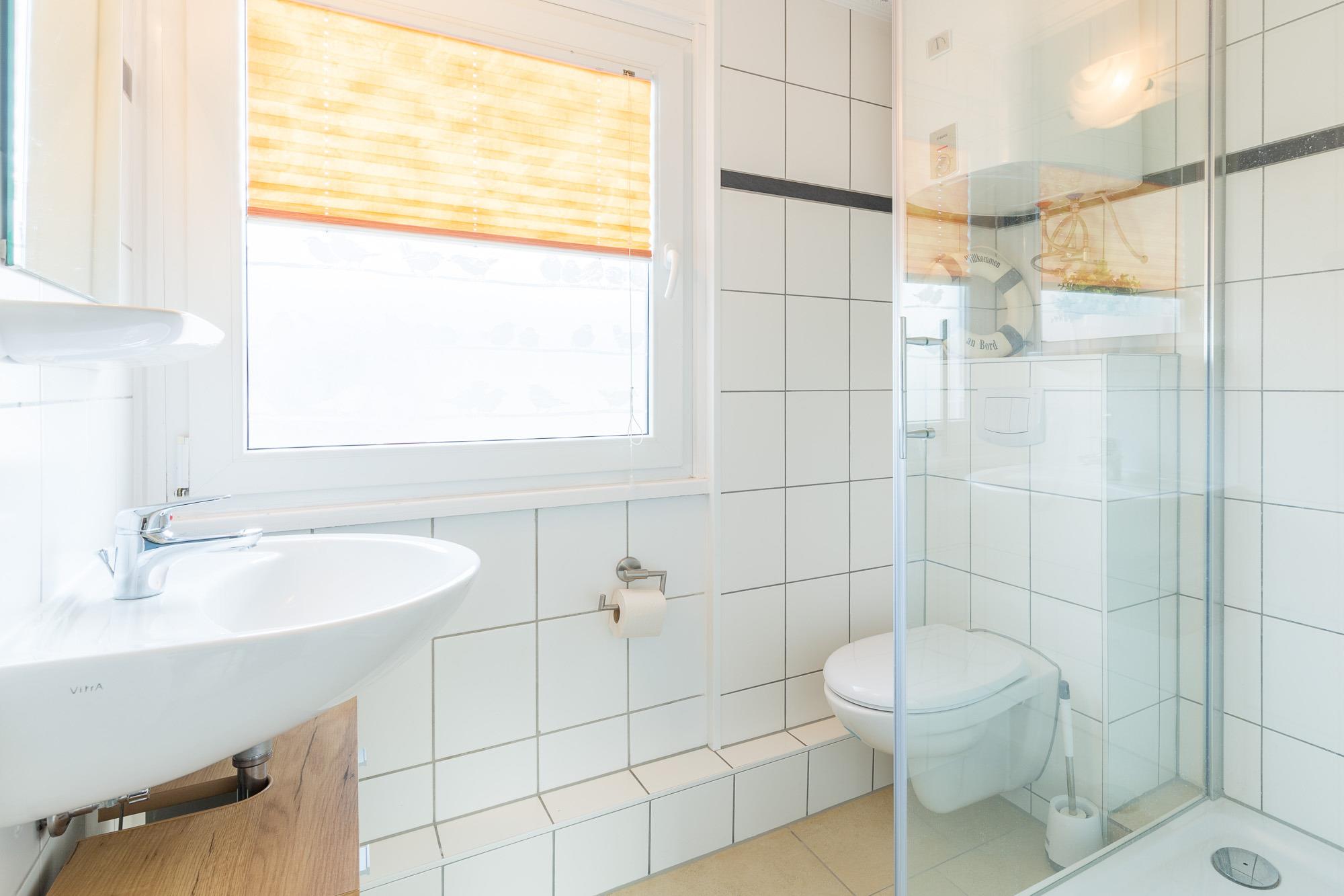 Zudem verfügt die kleine Küche über einen 2-Platten-Herd, eine Mikrowelle und einen Kühlschrank mit Gefrierfach. Das Badezimmer ist mit einer Duschkabine ausgestattet.