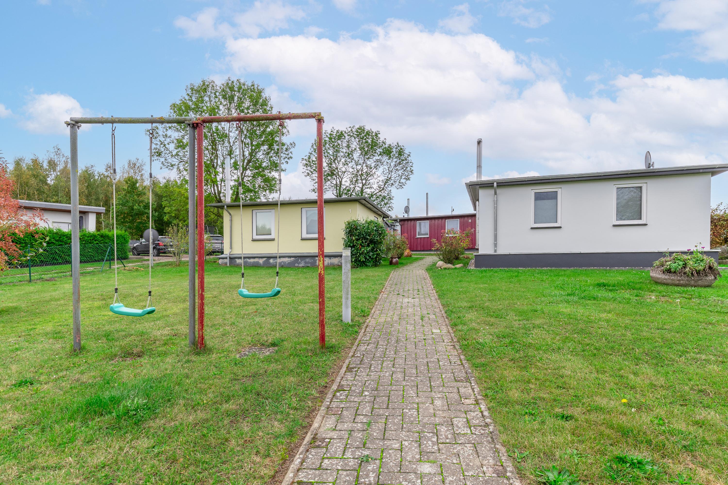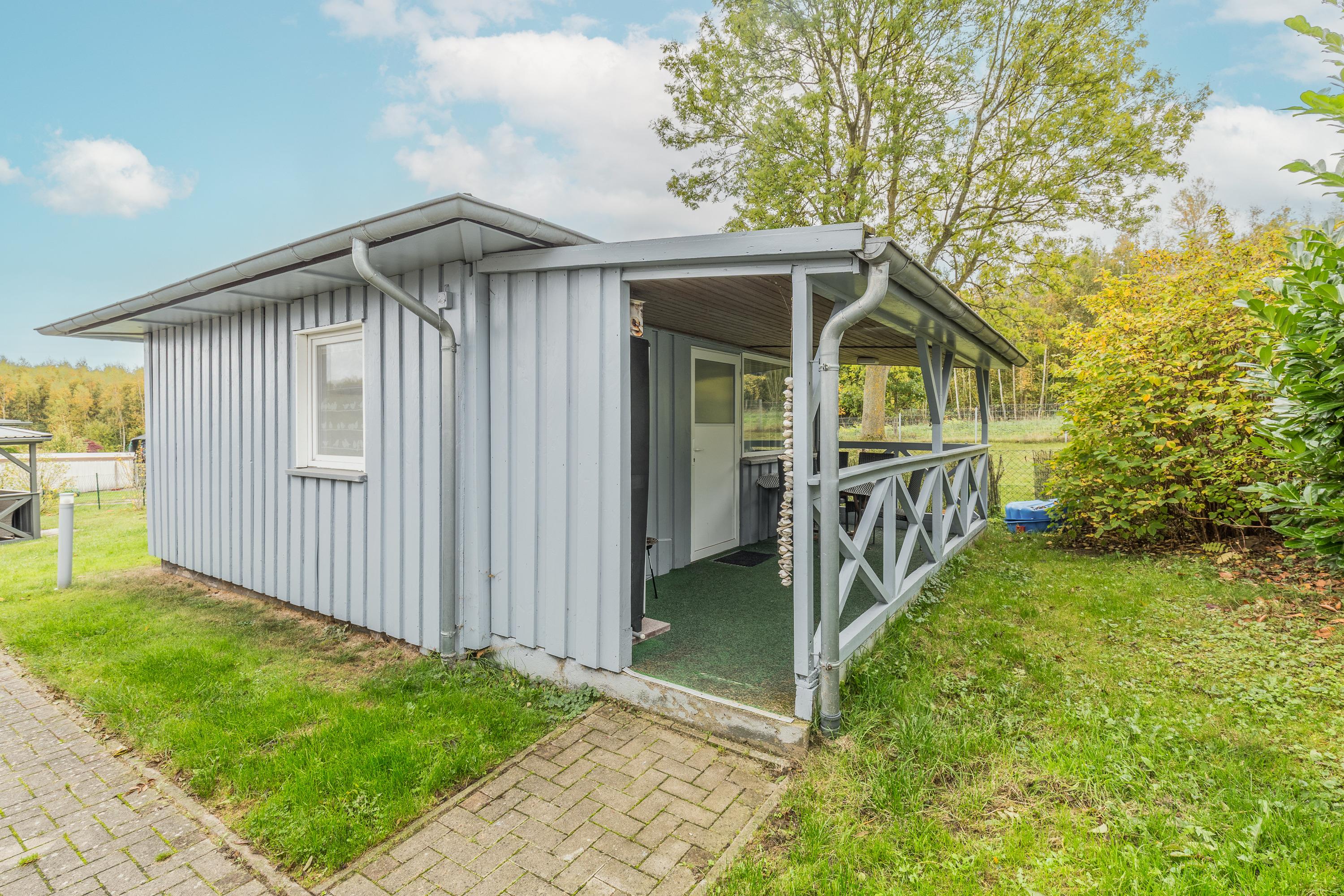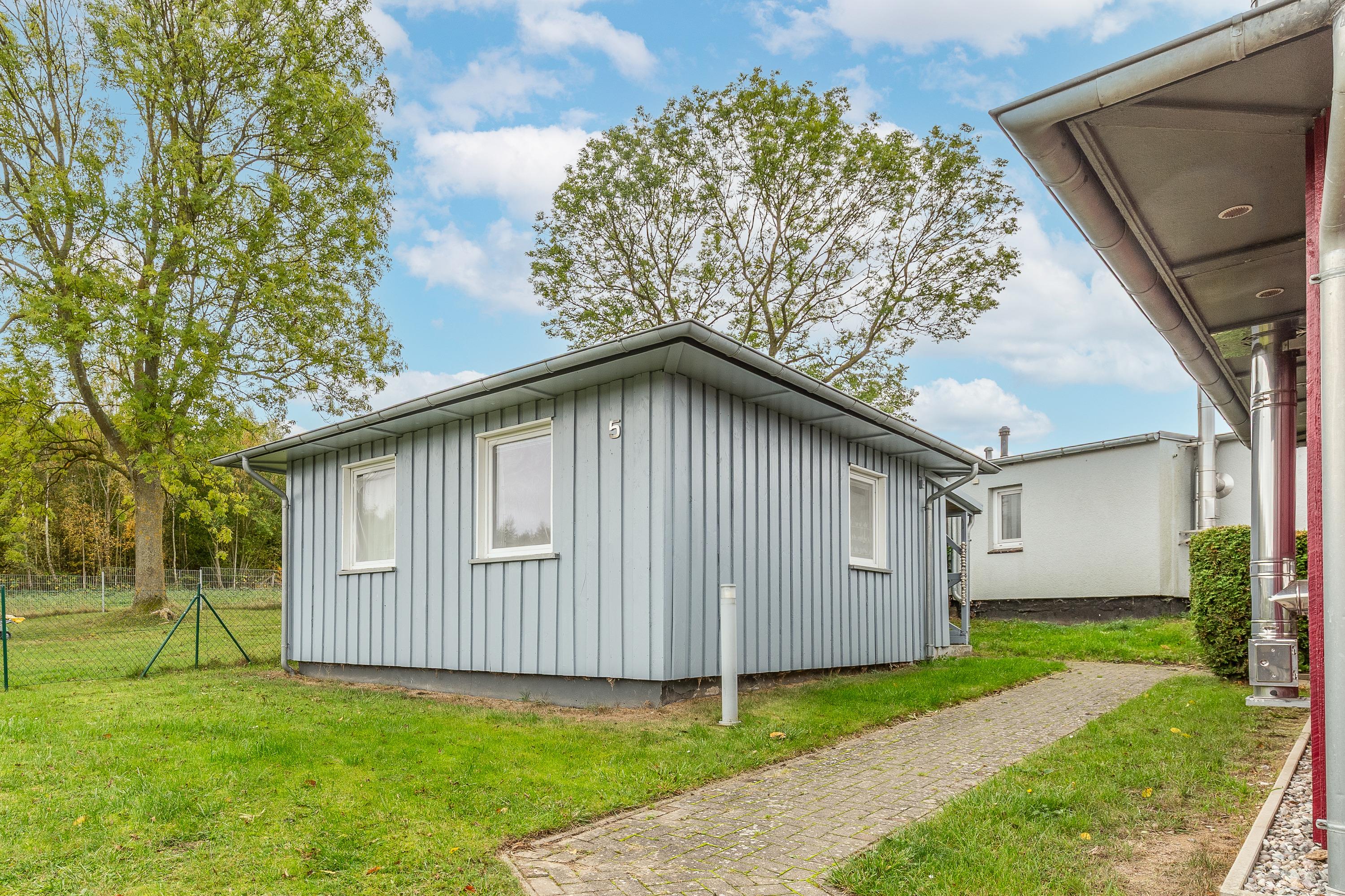 Der Bungalow 5 in der Ferienanlage Zum Brinkgarten ist ca 30 m² groß. Er bietet mit 2 separaten Schlafzimmern Platz für max. 3 Personen. Vom Wohnzimmer aus haben Sie direkten Zugang auf die überdachte Terrasse. Im Wohnbereich befindet sich ein Flachbild-TV.