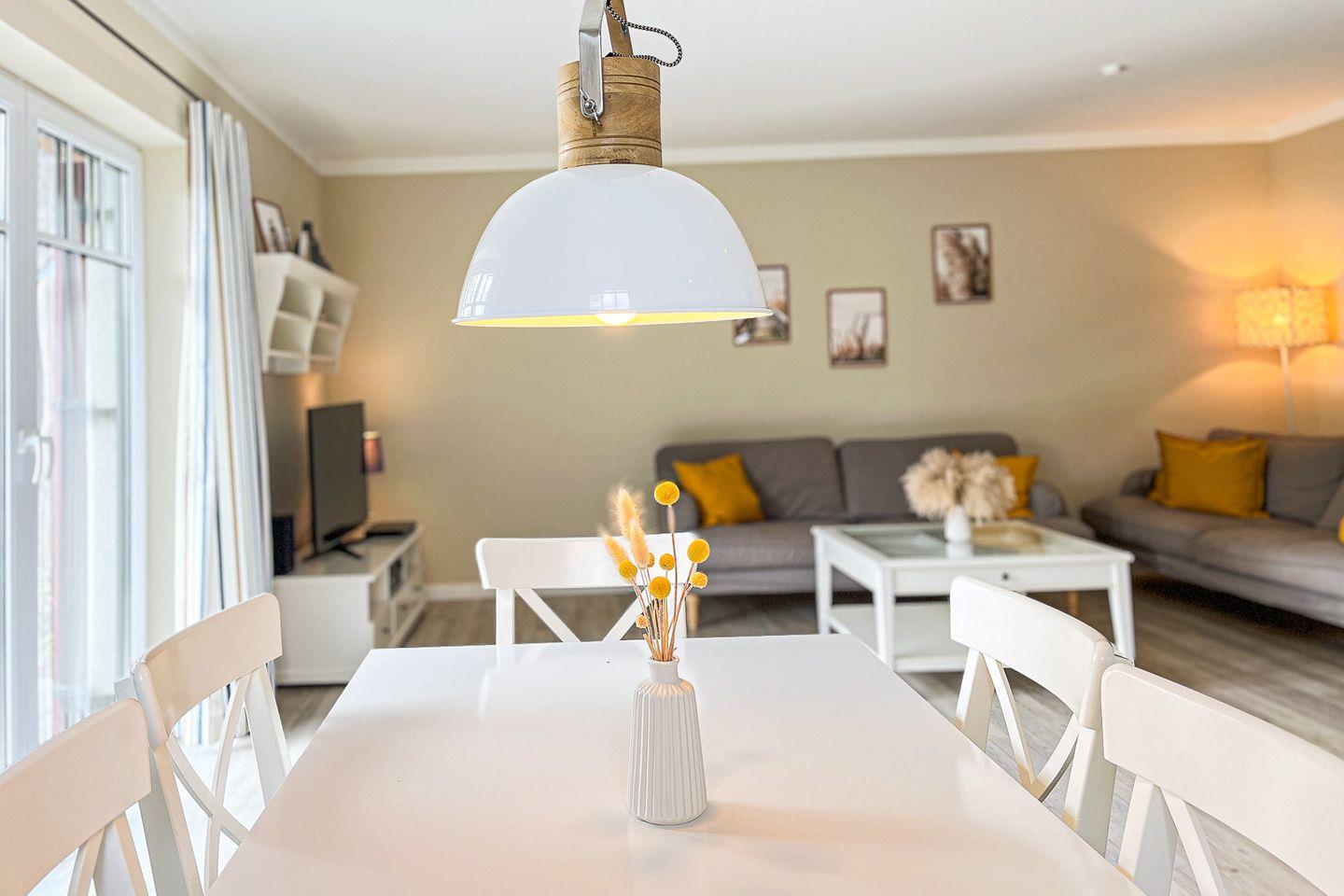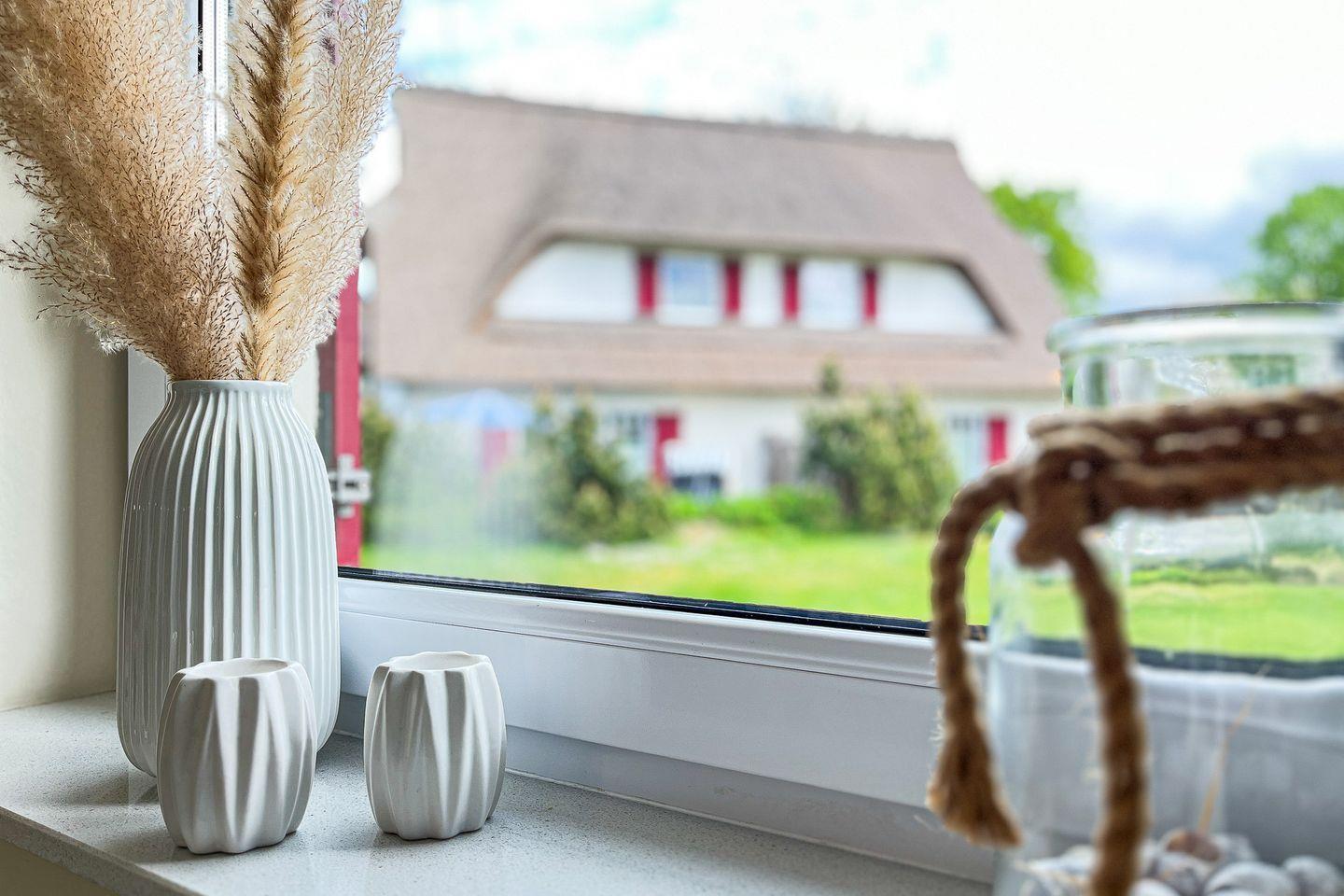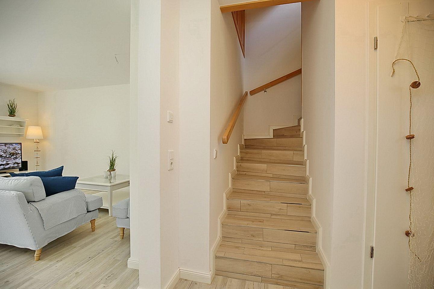Auf drei Etagen vereint die großzügige Doppelhaushälfte mit Reetdach einen Wohnraum mit Zugang zur Terrasse, drei Schlafzimmer und zwei moderne Bäder. Zusammen mit dem Spitzboden hast du hier auf über 100 m² viel Platz für deinen Urlaub.