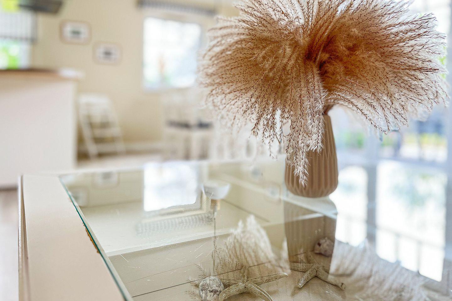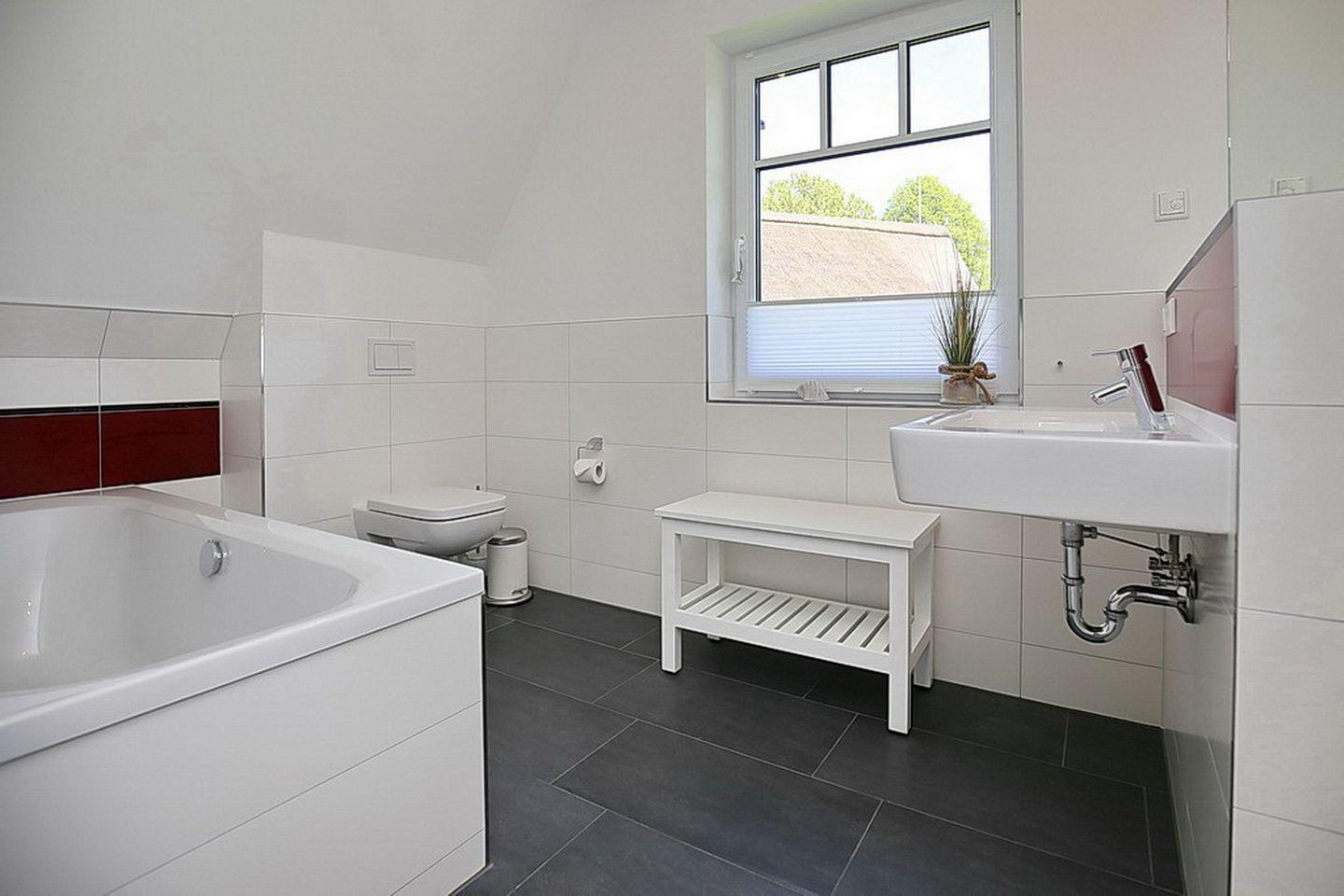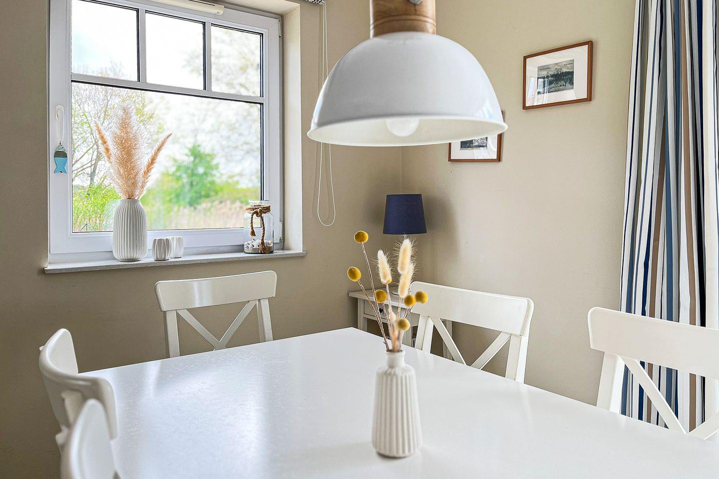 Auf drei Etagen vereint die großzügige Doppelhaushälfte mit Reetdach einen Wohnraum mit Zugang zur Terrasse, drei Schlafzimmer und zwei moderne Bäder. Zusammen mit dem Spitzboden hast du hier auf über 100 m² viel Platz für deinen Urlaub.