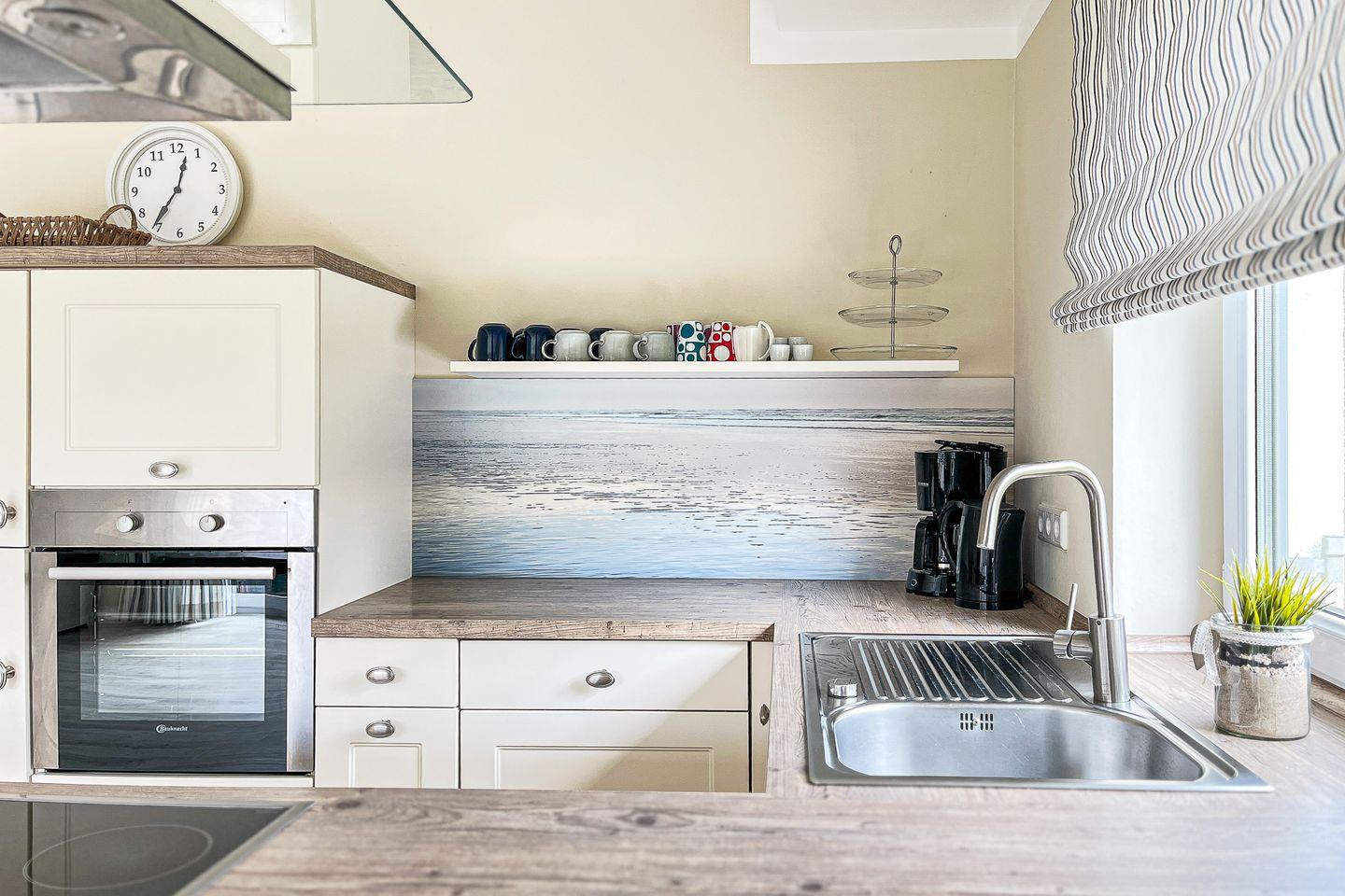 Ein Flachbild-TV und ein Radio/CD Player stehen dir im Wohnzimmer zur Verfügung. In der modernen Küchenzeile findest du Backofen, Cerankochfeld, Geschirrspüler, Kühlschrank mit Gefrierfach und eine Mikrowelle vor.