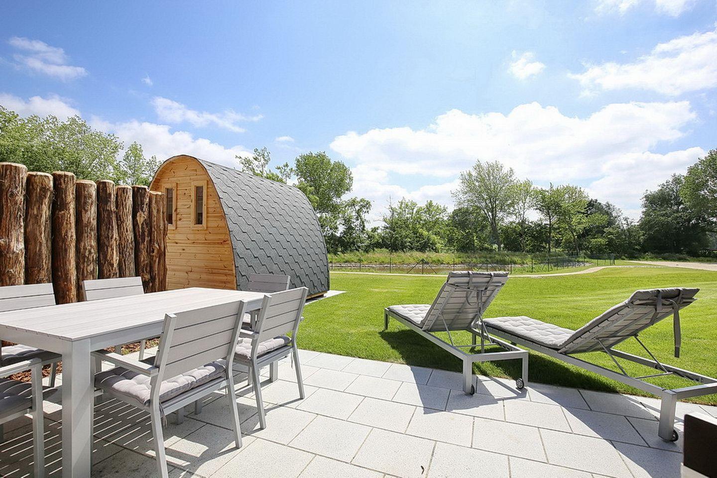 Der Zugang zur u.a. mit einem Strandkorb ausgestatteten, Süd-West Terrasse erfolgt direkt vom Wohnzimmer aus. Auf der Terrasse kannst du den vorhandenen Elektrogrill (Tischgrill) ausgiebig nutzen. Des Weiteren steht dir eine kostenpflichtige Gartensauna zur Verfügung, die du gemeinsam mit dem Ferienhaus 15a nutzen kannst (den Schlüssel erhältst du in der Rezeption).