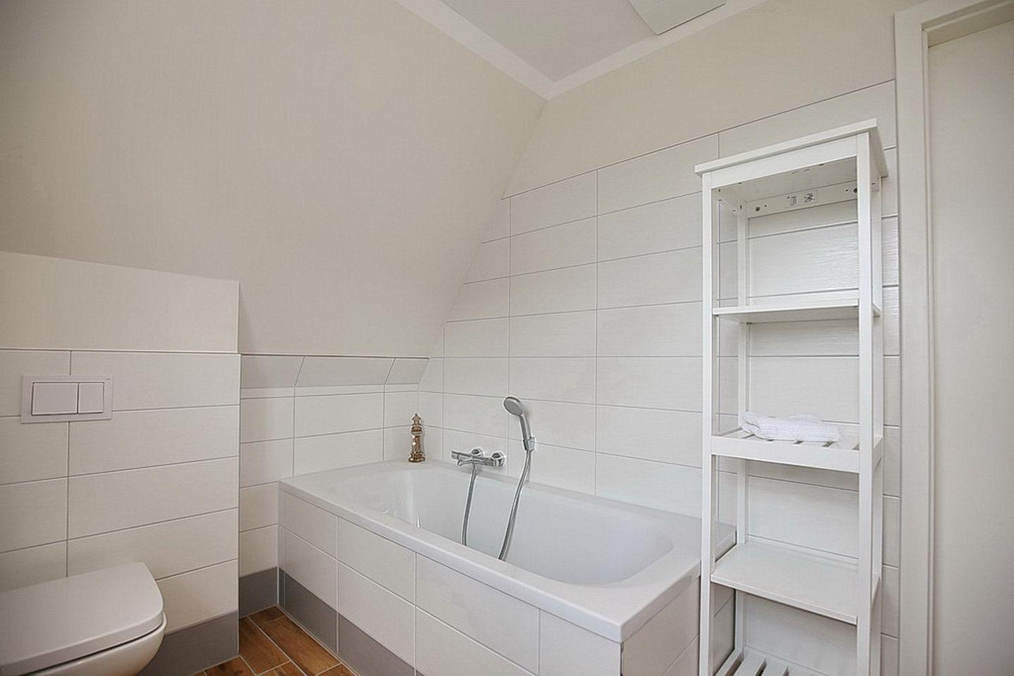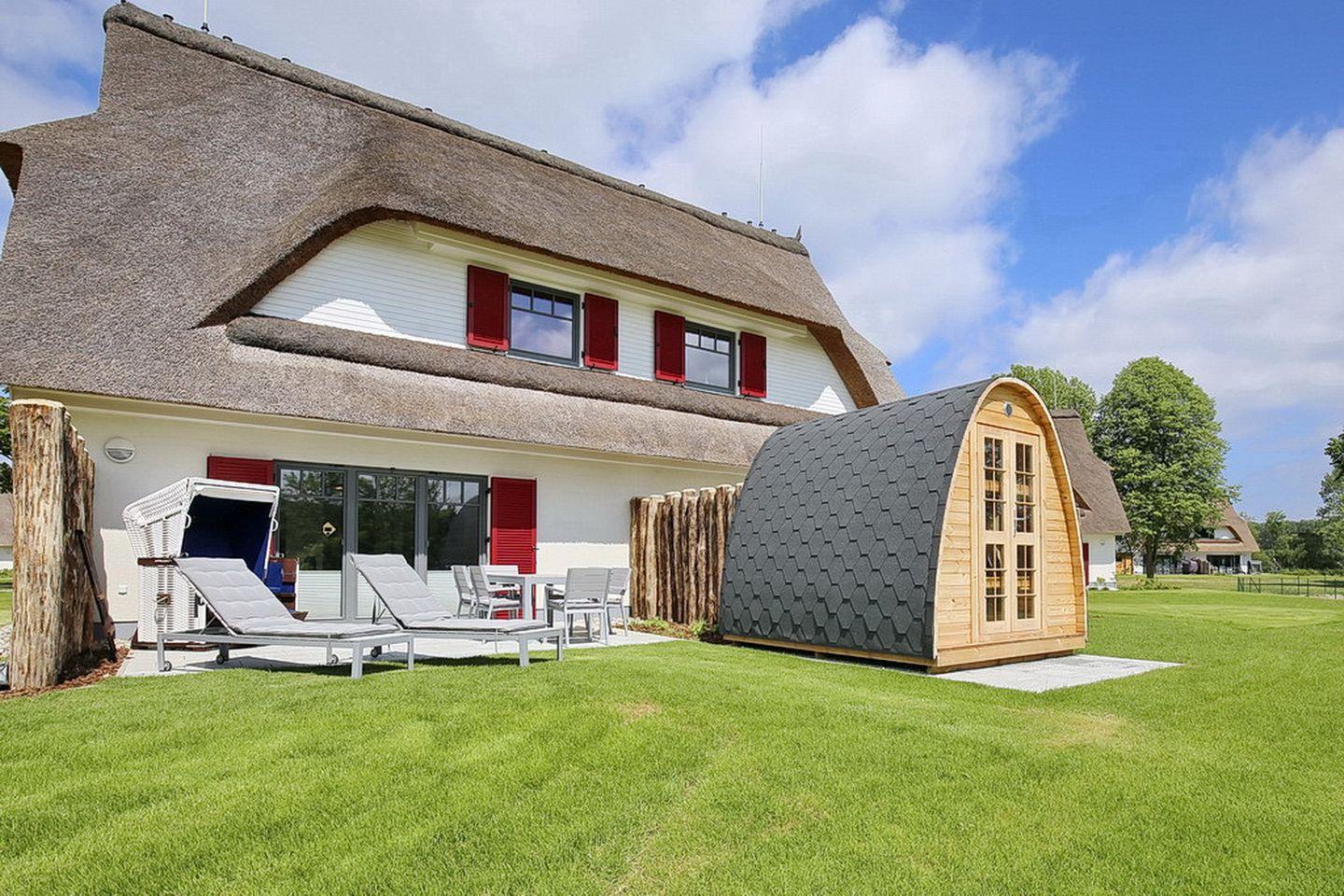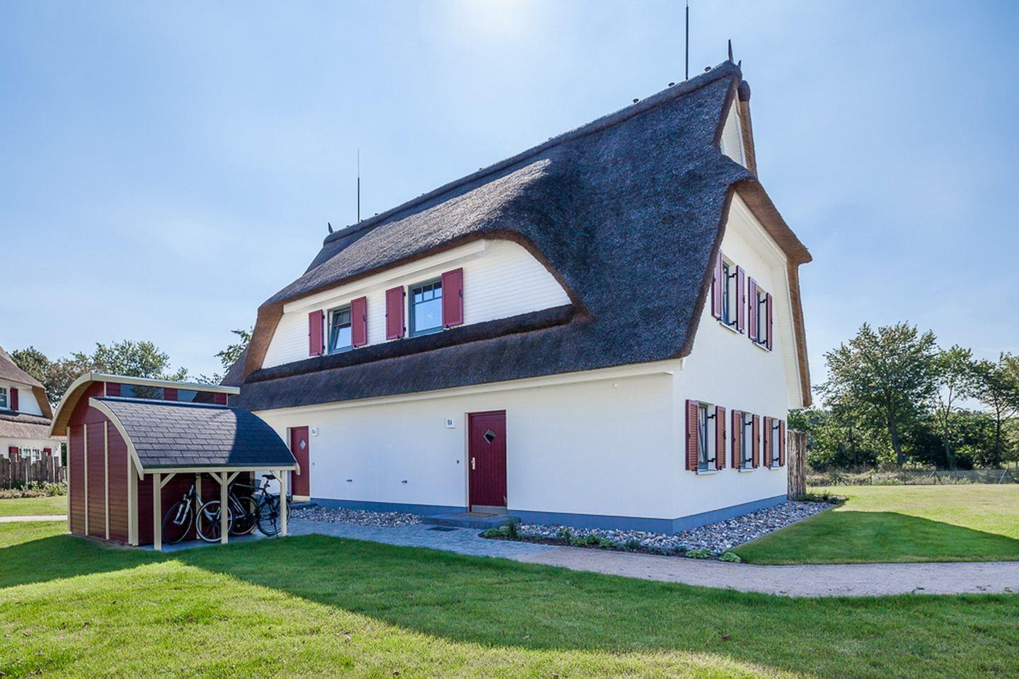 Auf drei Etagen vereint die großzügige Doppelhaushälfte mit Reetdach einen Wohnraum mit Zugang zur Terrasse, drei Schlafzimmer und zwei moderne Bäder. Zusammen mit dem Spitzboden hast du hier auf über 100 m² viel Platz für deinen Urlaub.