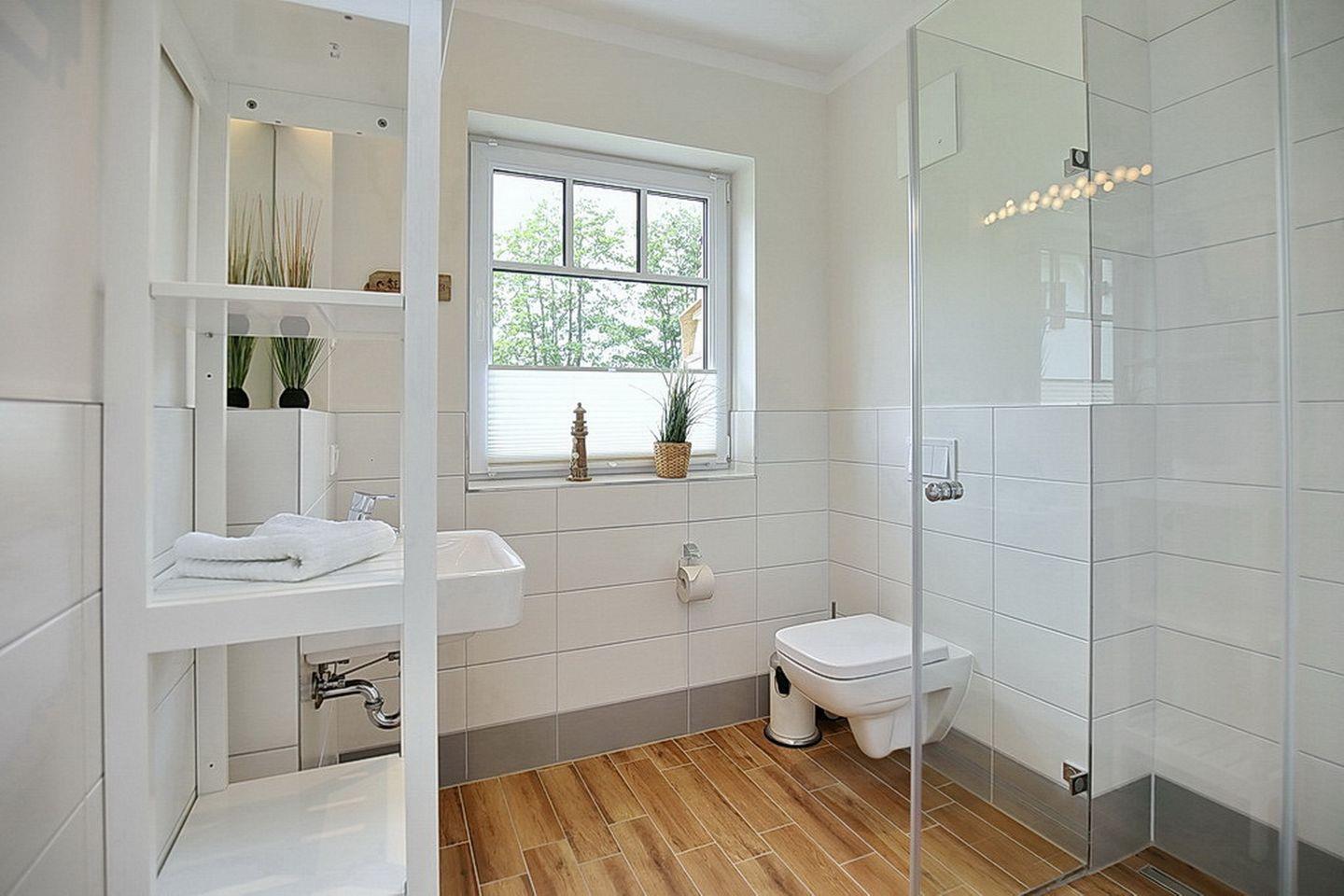 Im Erdgeschoss des Ferienhauses befindet sich der großzügige Wohnraum mit gemütlichem Essbereich, sowie der integrierten Küchenzeile. Auch das Gäste-WC mit Dusche und den Eingangsbereich findest du hier.