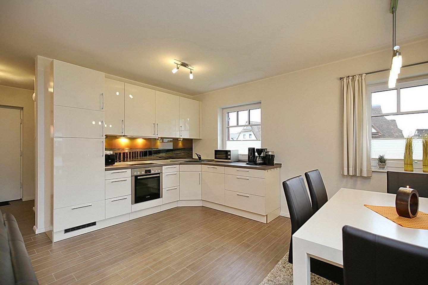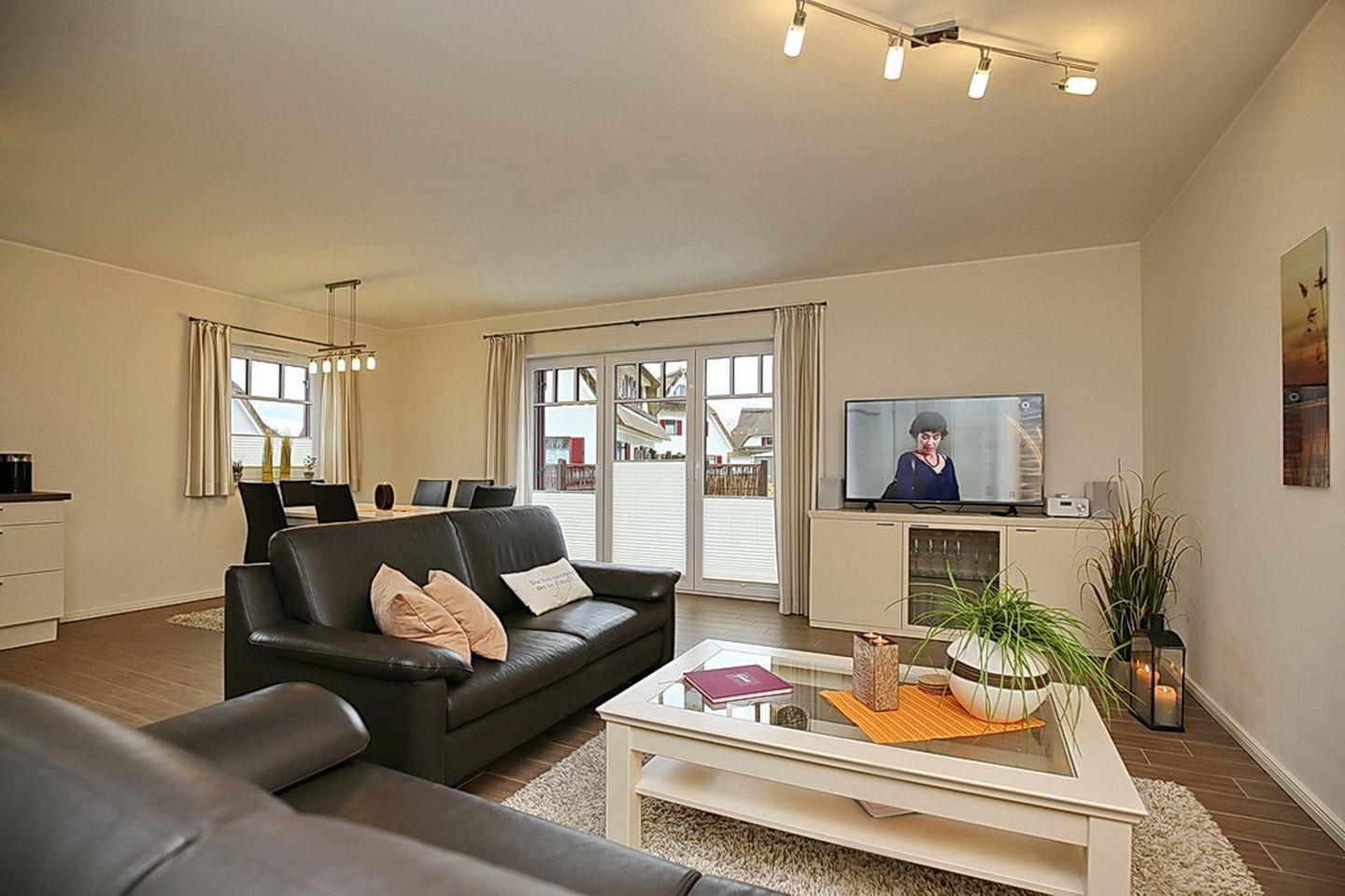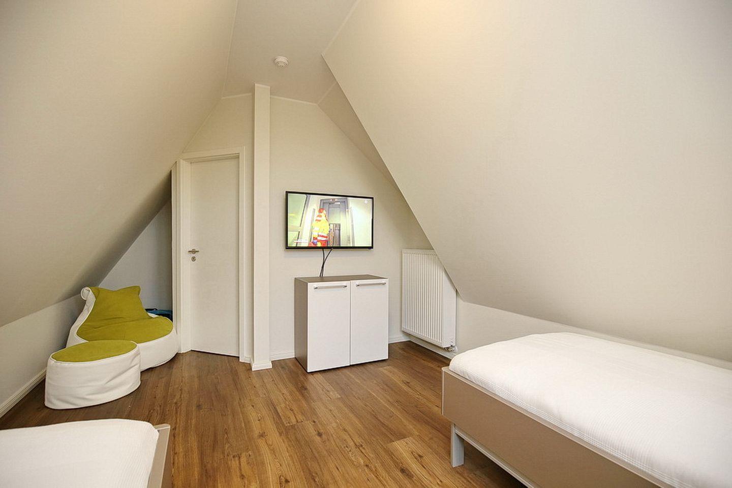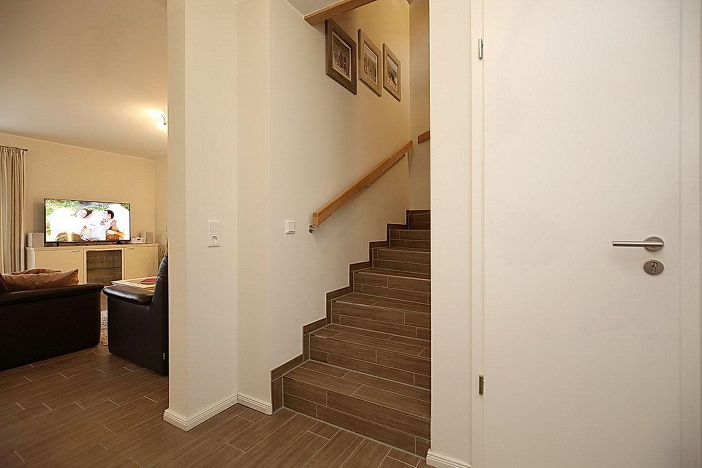 Auf drei Etagen vereint die 2015 fertiggestellte großzügige Doppelhaushälfte mit Reetdach einen Wohnraum mit Zugang zur Terrasse, drei Schlafzimmer, eine Infrarotsauna und zwei moderne Bäder. Zusammen mit dem Spitzboden hast du hier auf über 100 m² viel Platz für deinen Urlaub. WLAN steht dir im gesamten Haus kostenfrei zur Verfügung.