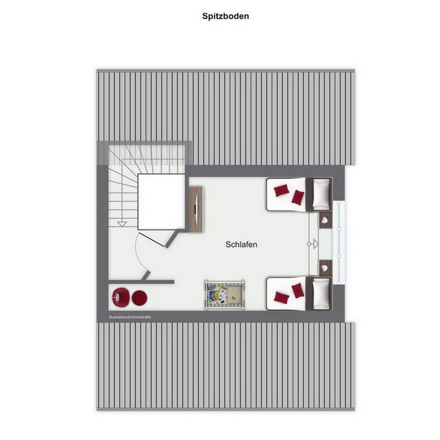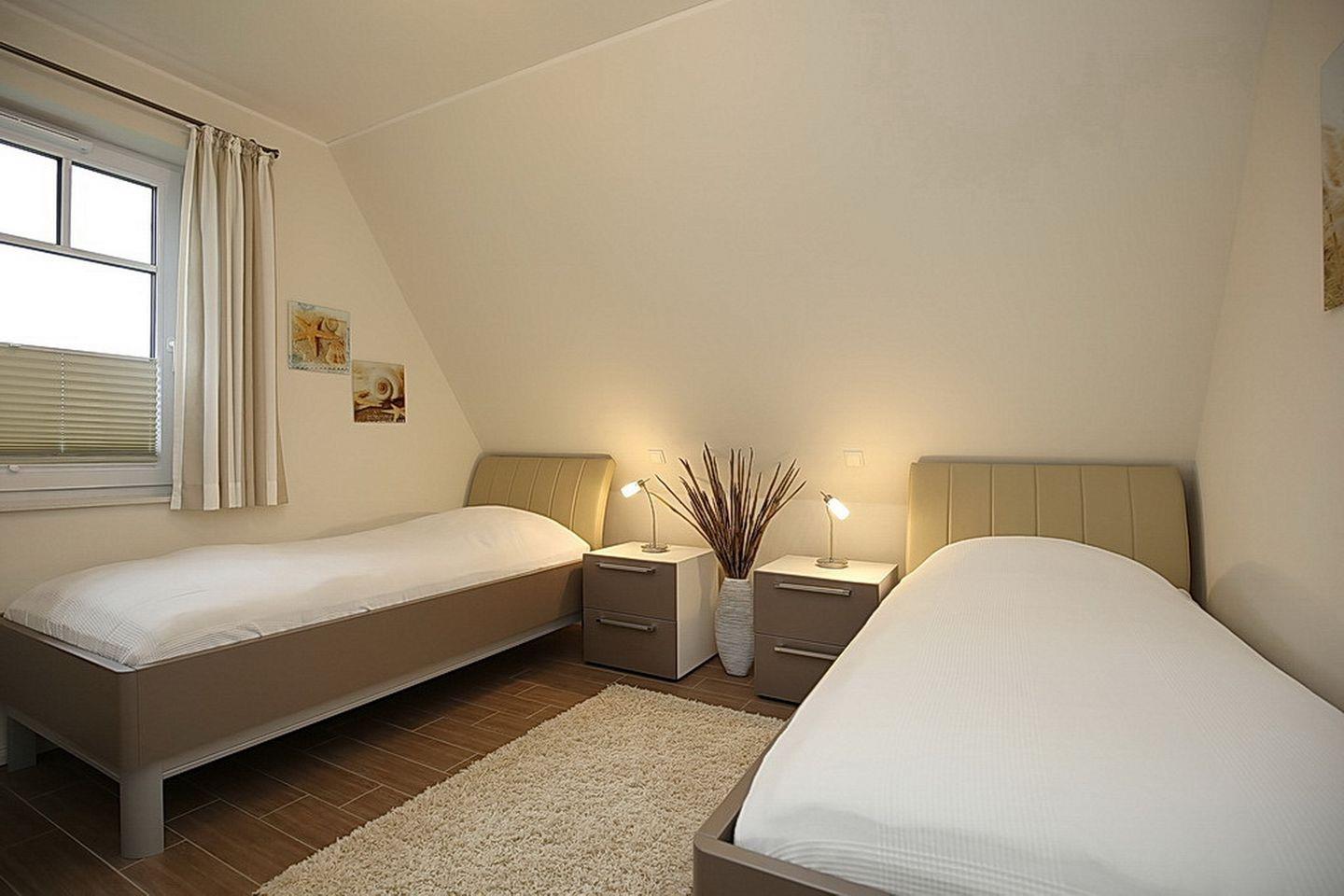 Im Dachgeschoss befindet sich ein weiteres Schlafzimmer mit zwei Einzelbetten (90 x 200 cm).
