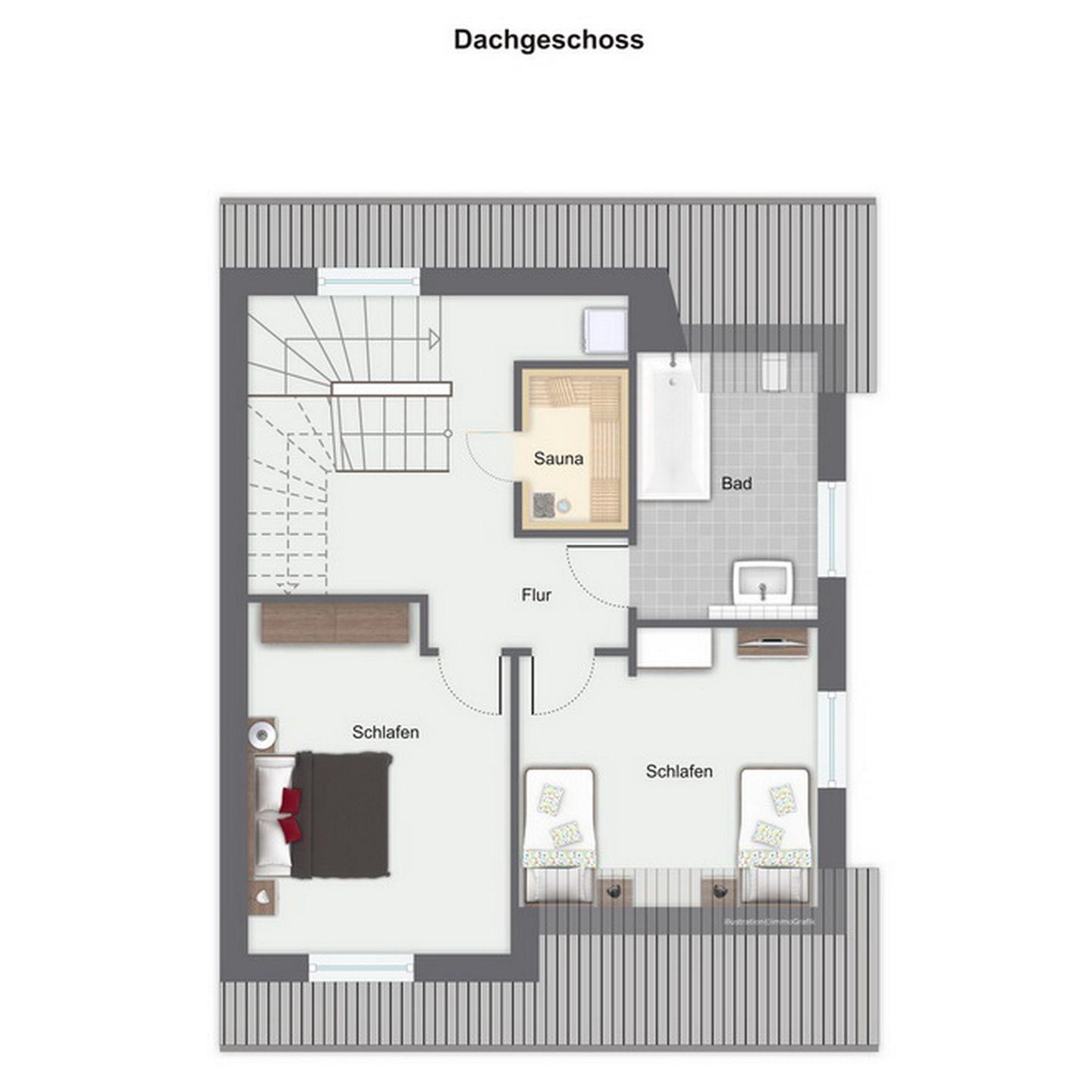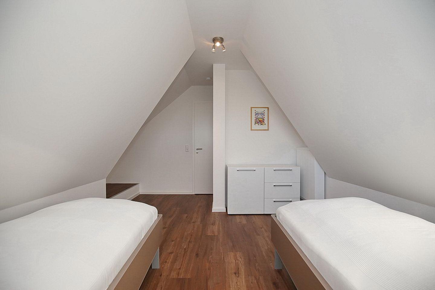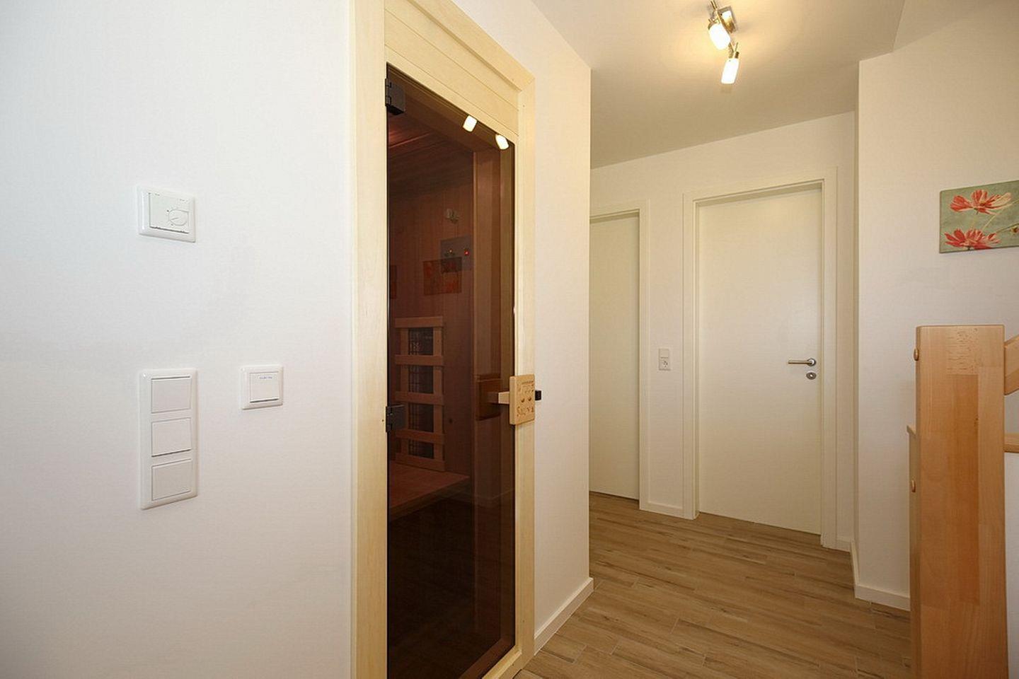 Im Spitzboden befindet sich ein weiteres Schlafzimmer mit zwei Einzelbetten (90 x 200 cm) und einer zusätzlichen Schlafnische für 1 Kind (Matratzengröße 170 x 80 x 8 cm). Auch hier gibt es einen Flachbild-Fernseher. Für unsere kleinen Gäste stehen ein Hochstuhl und ein Babybett bereit. In diesem Nichtraucher-Haus, mit Waschmaschine und Trockner, sind Haustiere nicht erlaubt. WLAN (ohne Gewähr) steht dir kostenlos zur Verfügung. Eine kleine Infrarotsauna mit Farblichttherapie kannst du ebenfalls genießen.
