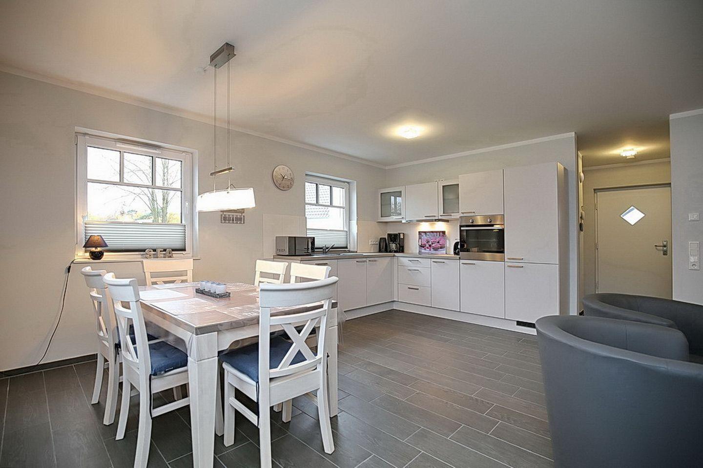 In der hochwertig eingerichteten Küchenzeile findest du einen Geschirrspüler, eine Mikrowelle, einen Herd mit Cerankochfeld und Backofen, eine Kühl- und Gefrierkombination, eine Kaffeemaschine, einen Elektrogrill und vieles mehr vor.