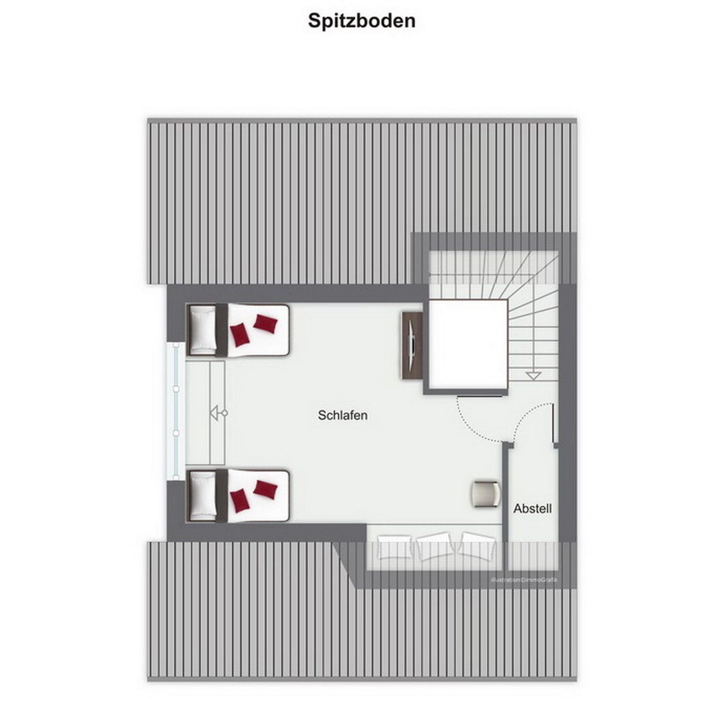 Im Spitzboden befindet sich ein weiteres Schlafzimmer mit TV, zwei Einzelbetten (90 x 200 cm) sowie eine Schlafnische ohne Lattenrost für 1 Kind (Auflage, dreigeteilt 65 cm breit, 3x65 cm lang x 8 cm hoch). Für ganz kleine Gäste steht ein Kinderreisebett mit Matratze zur Verfügung. In dieser Nichtraucher-Wohnung sind maximal zwei Haustiere erlaubt. Eine Waschmaschine ist vorhanden. WLAN (ohne Gewähr) steht dir kostenlos zur Verfügung.