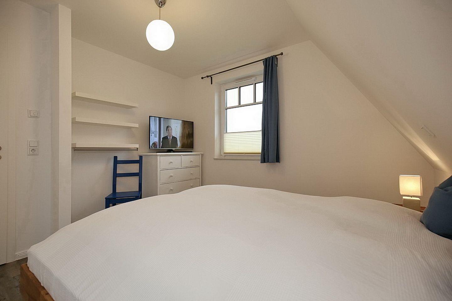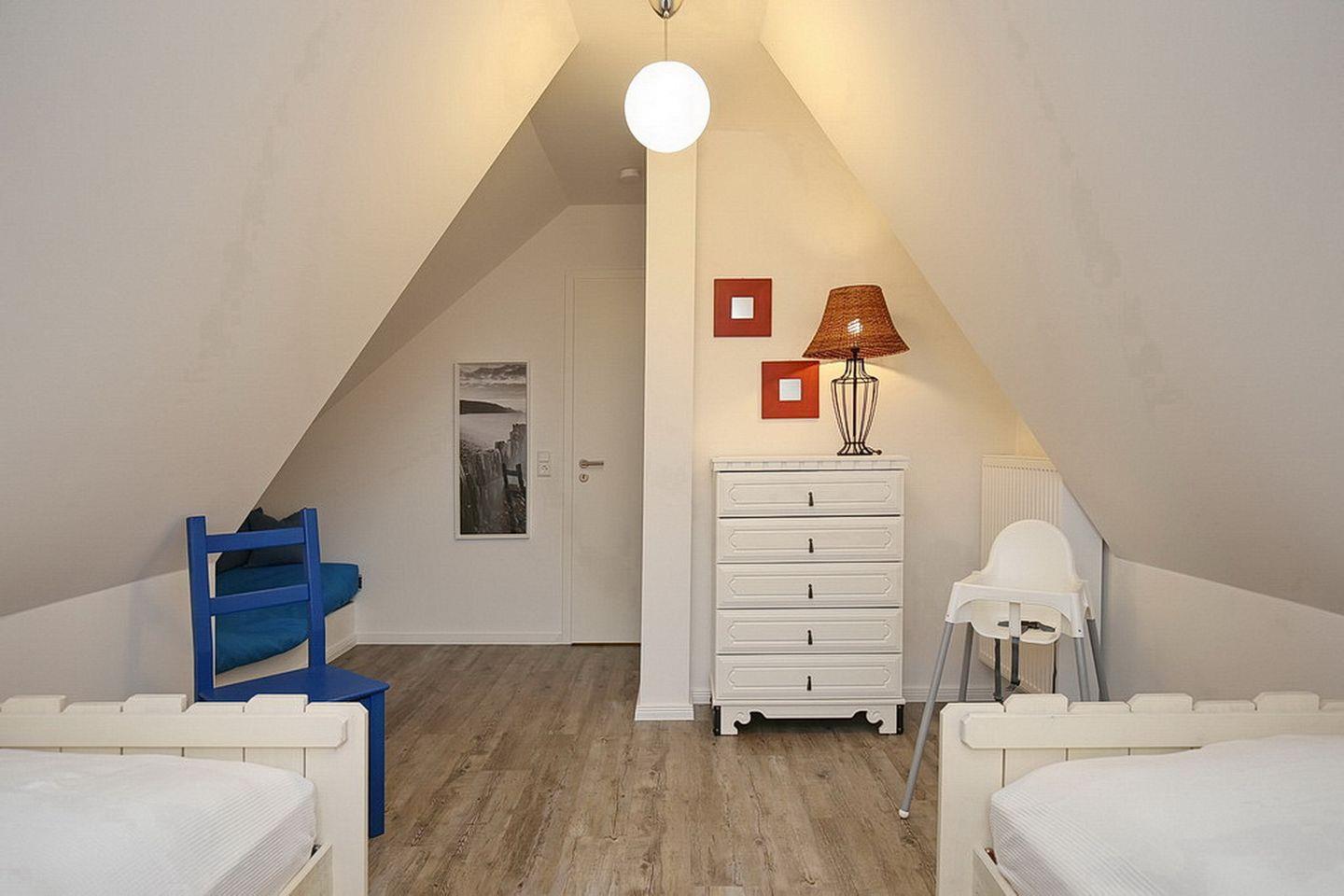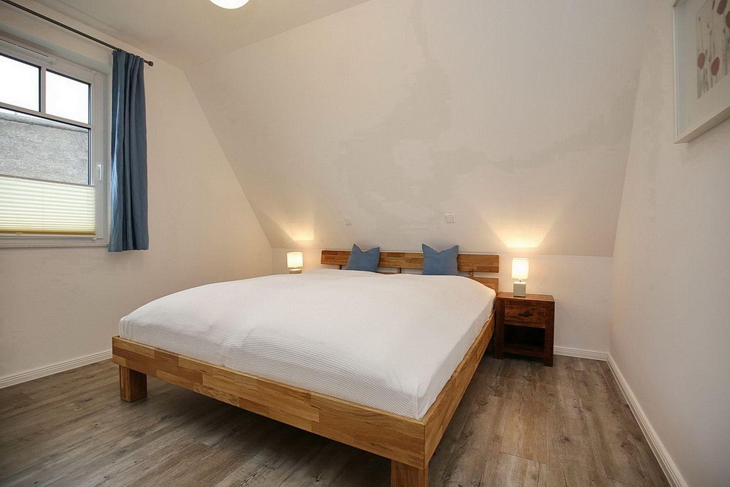 In den beiden Schlafzimmern im ersten Obergeschoss stehen dir jeweils ein Doppelbett (2 x 90 x 200 cm), ein LED Fernseher, sowie ausreichend Platz für deine Urlaubsgarderobe zur Verfügung. Im Spitzboden befindet sich ein weiteres Schlafzimmer mit zwei Einzelbetten (90 x 200 cm).