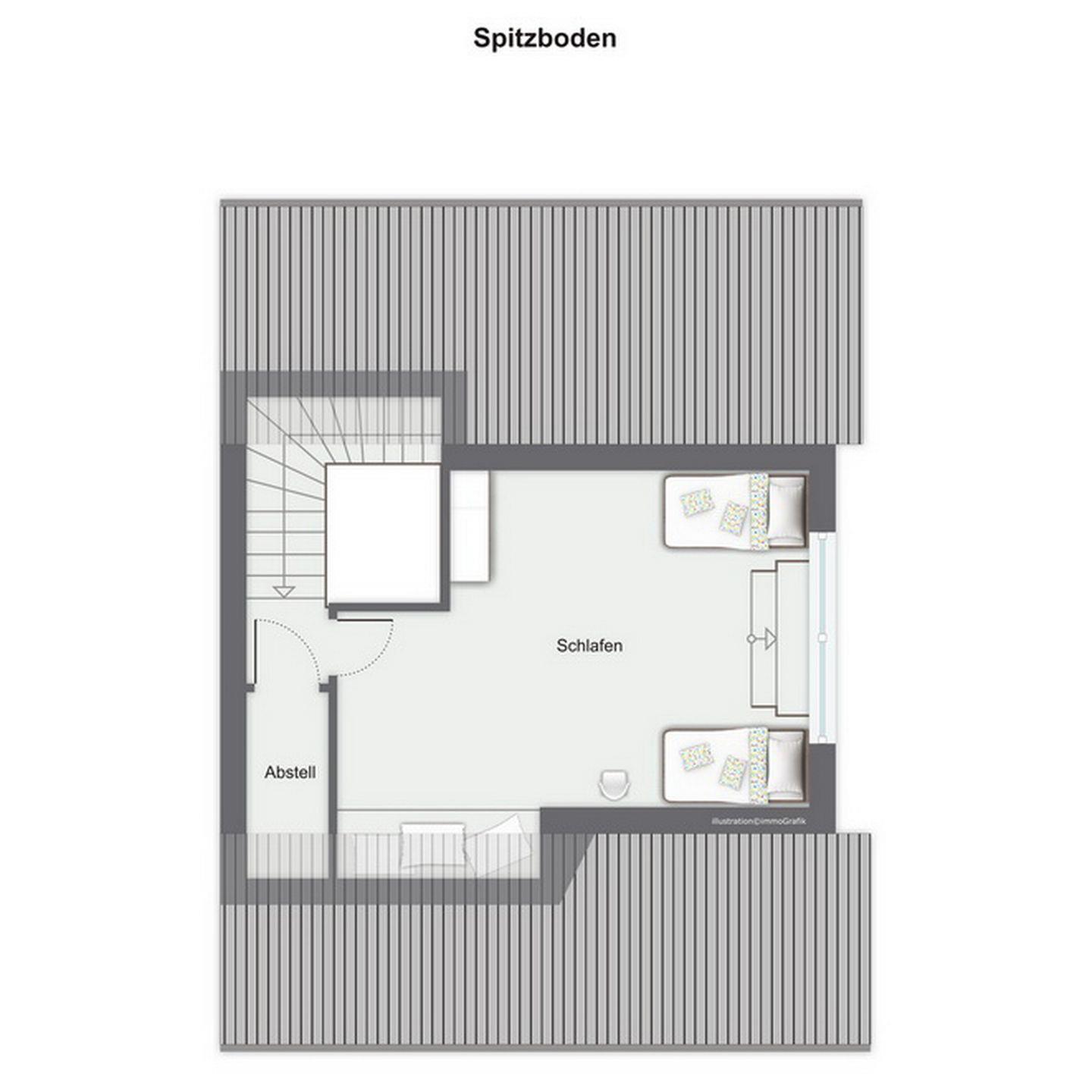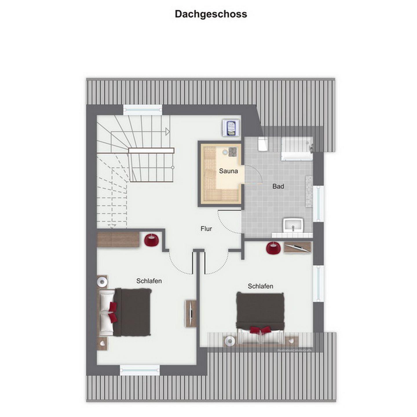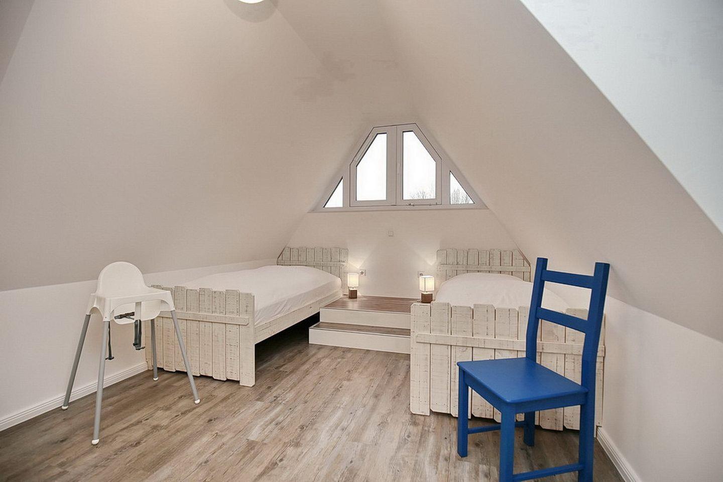 In den beiden Schlafzimmern im ersten Obergeschoss stehen dir jeweils ein Doppelbett (2 x 90 x 200 cm), ein LED Fernseher, sowie ausreichend Platz für deine Urlaubsgarderobe zur Verfügung. Im Spitzboden befindet sich ein weiteres Schlafzimmer mit zwei Einzelbetten (90 x 200 cm).