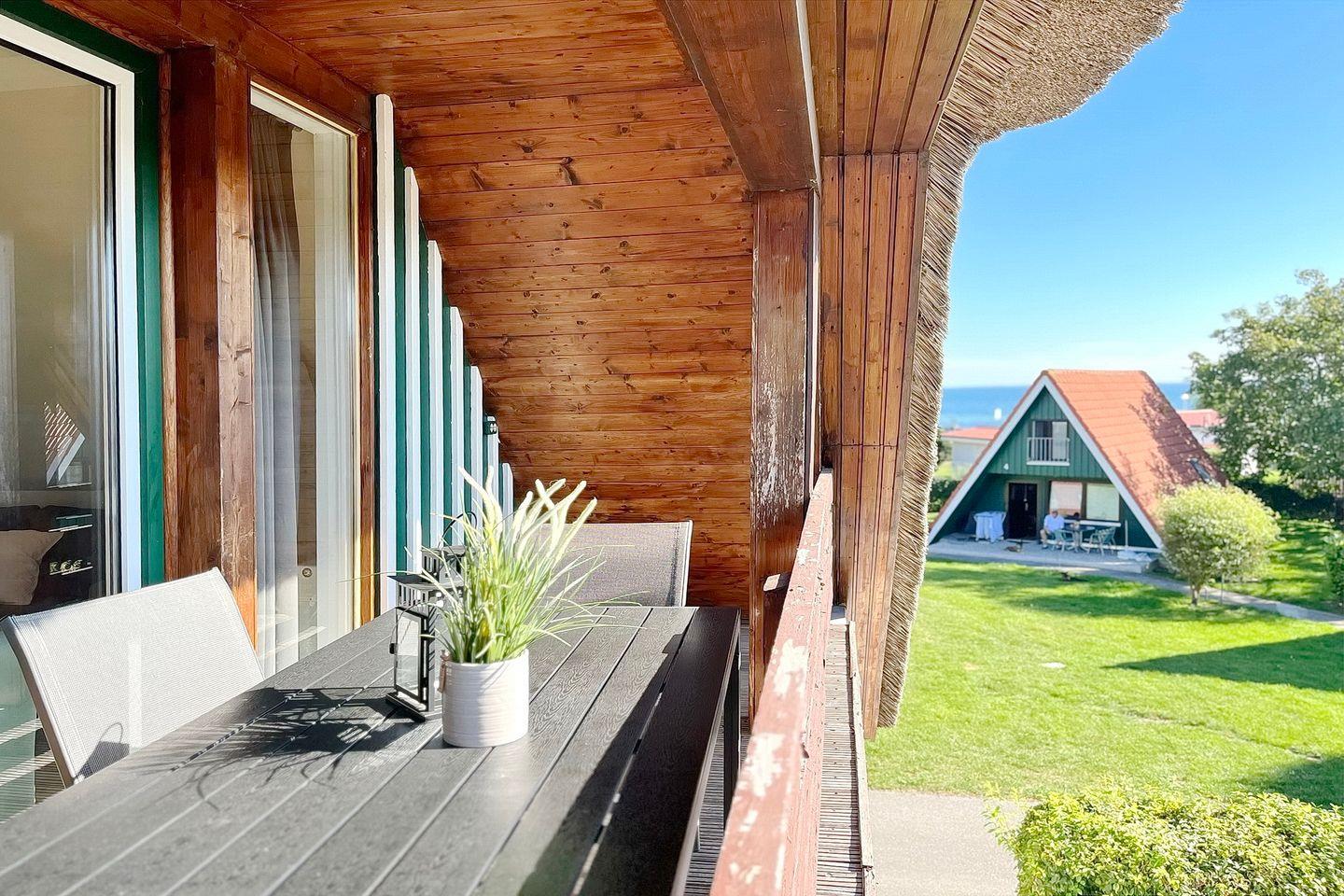 Entspanne dich auf dem großen möblierten Balkon mit herrlichem Blick u.a. auf die Ostsee. Bitte hab Verständnis, dass das Grillen mit Holzkohle und der Umgang mit Feuerwerkskörpern nicht erlaubt sind.