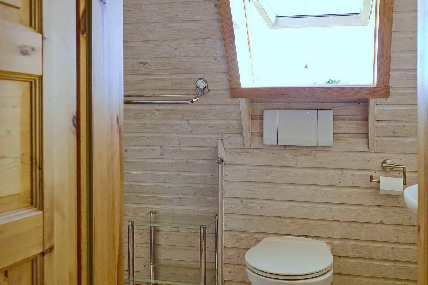 Das Badezimmer mit Fenster, Dusche und WC befindet sich ebenfalls im Erdgeschoss.