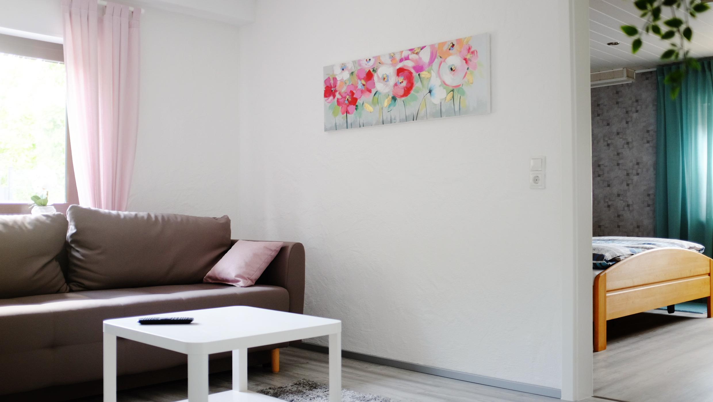Unsere gemütlich eingerichtete Ferienwohnung ist über eine Außentreppe mit separatem