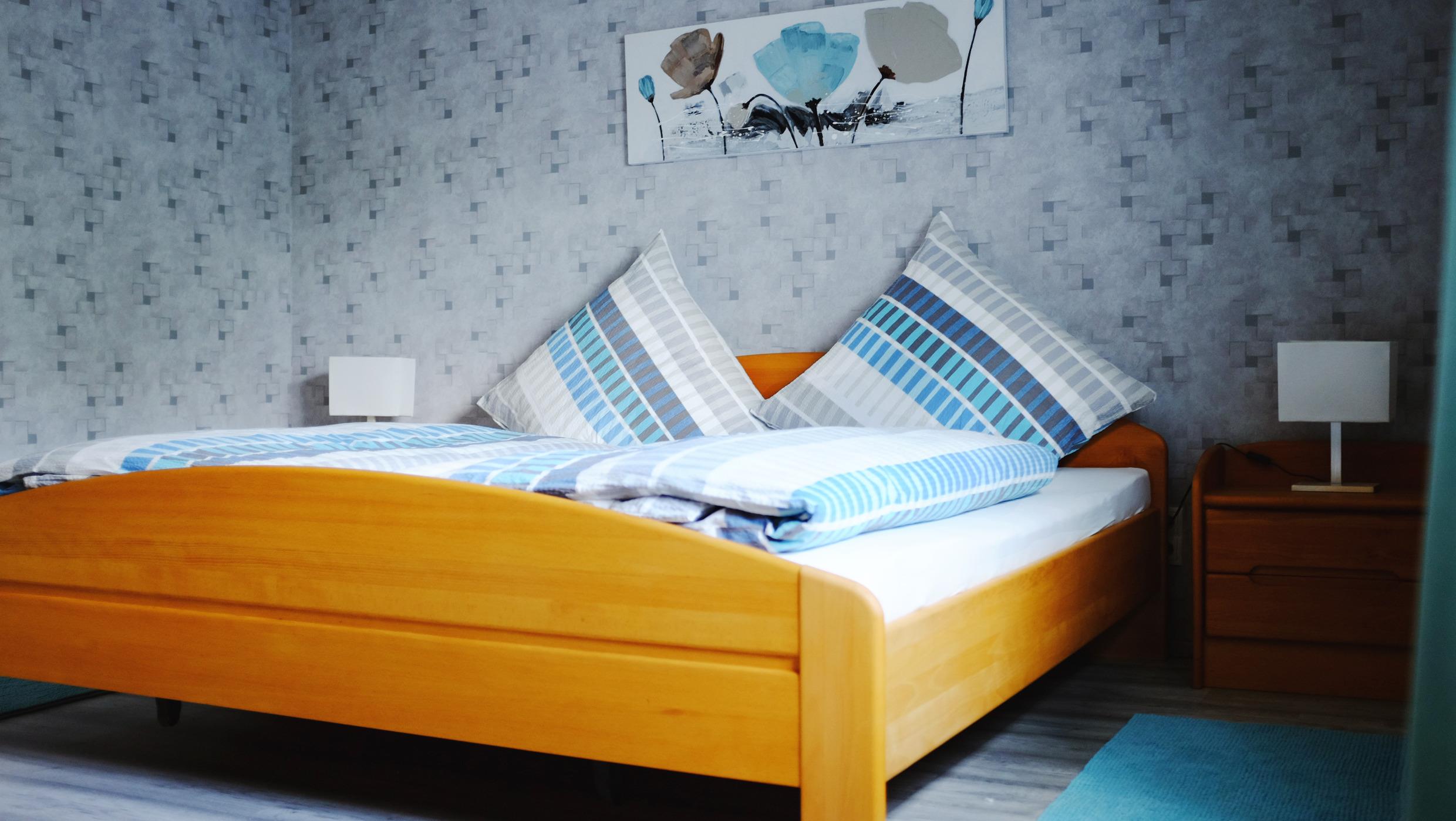 (eins mit Doppelbett 200 x 200 cm, eins mit zwei Einzelbetten), sowie ein Bad mit Dusch/WC.