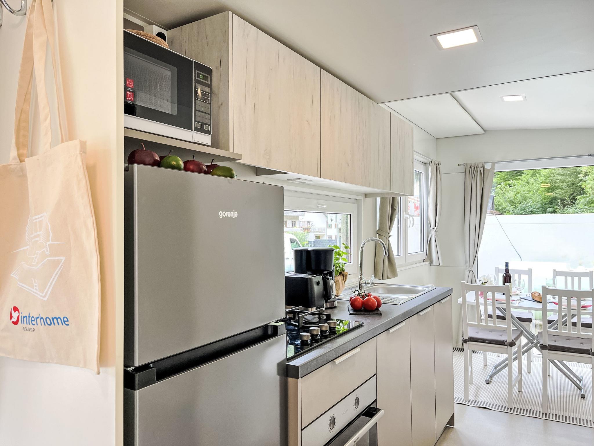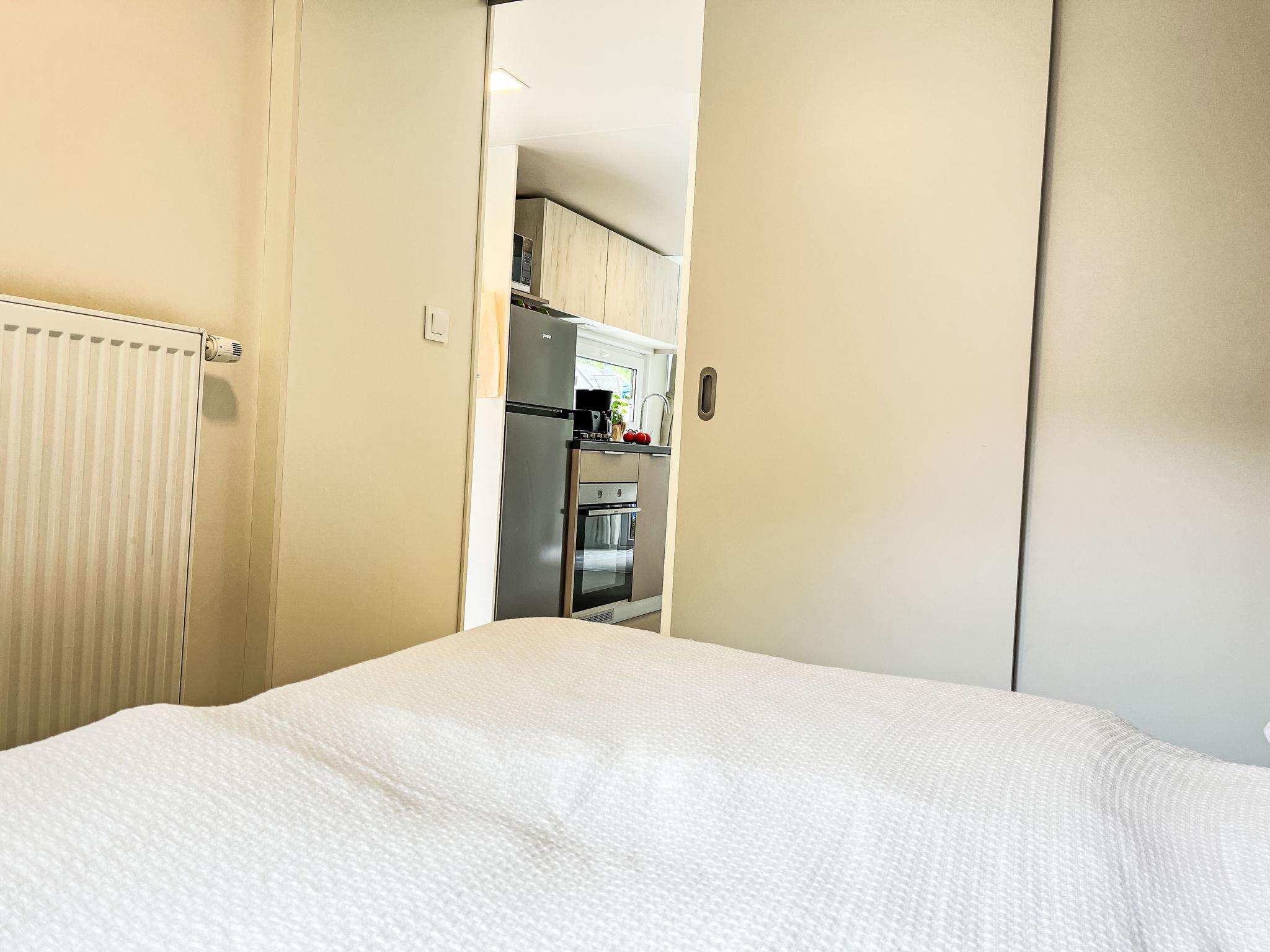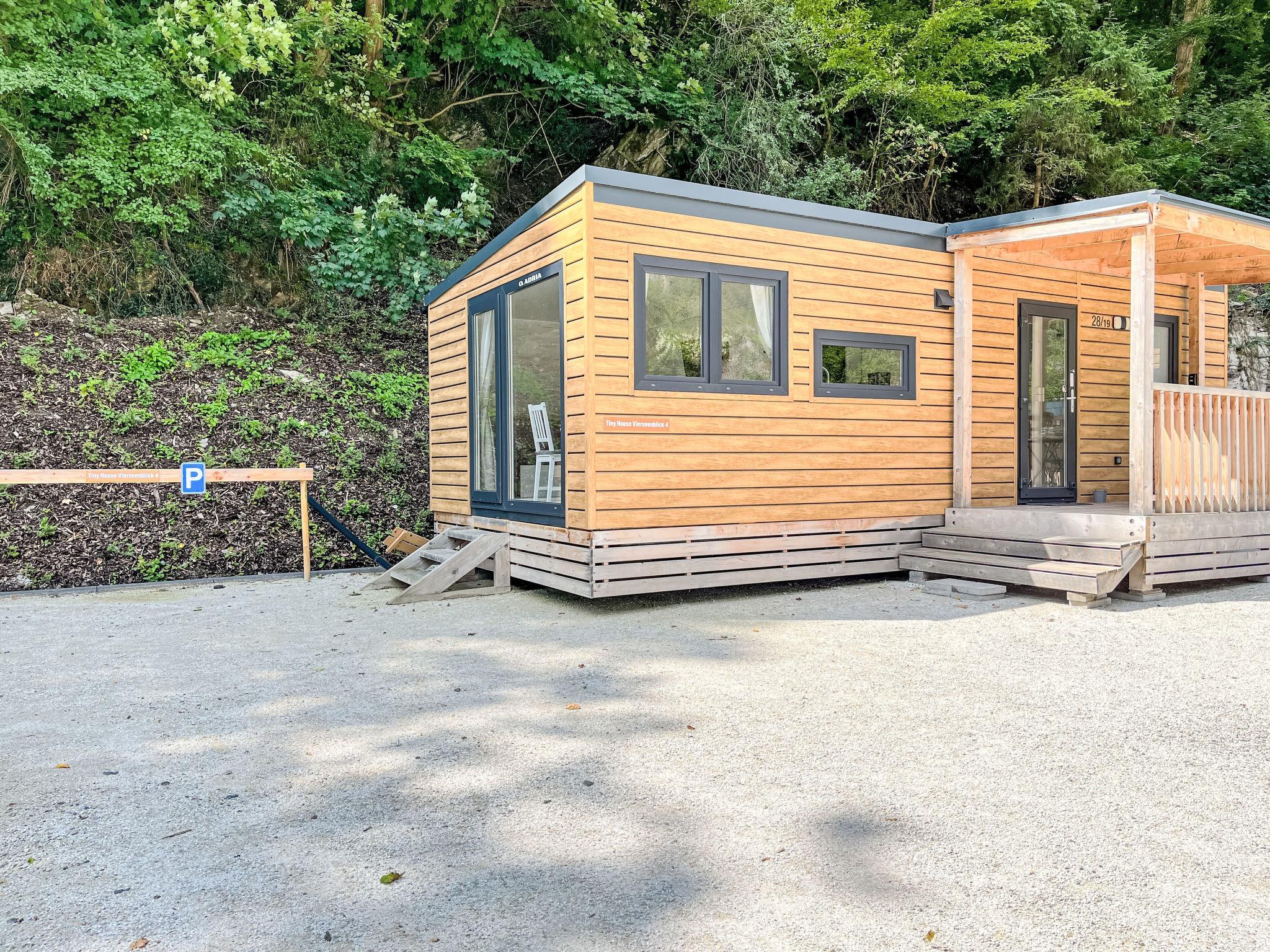 "Tiny Haus Vierseenblick Nummer 4", 3-room mobile home 40 m2, on the ground floor. Beautiful and cosy furnishings: living/dining room with dining nook. 1 room with 2 beds (80 cm, length 190 cm). 1 room with 1 double bed (160 cm, length 200 cm). Small, open kitchen (oven, Gas stove, 4 gas rings, toaster, kettle, microwave, freezer, electric coffee machine). Shower/WC. Electric heating. Terrace partly roofed. Terrace furniture. Parking (1 car) at the house. Please note: non-smoking house. Maximum 1 pet/ dog allowed. Smoke alarm.