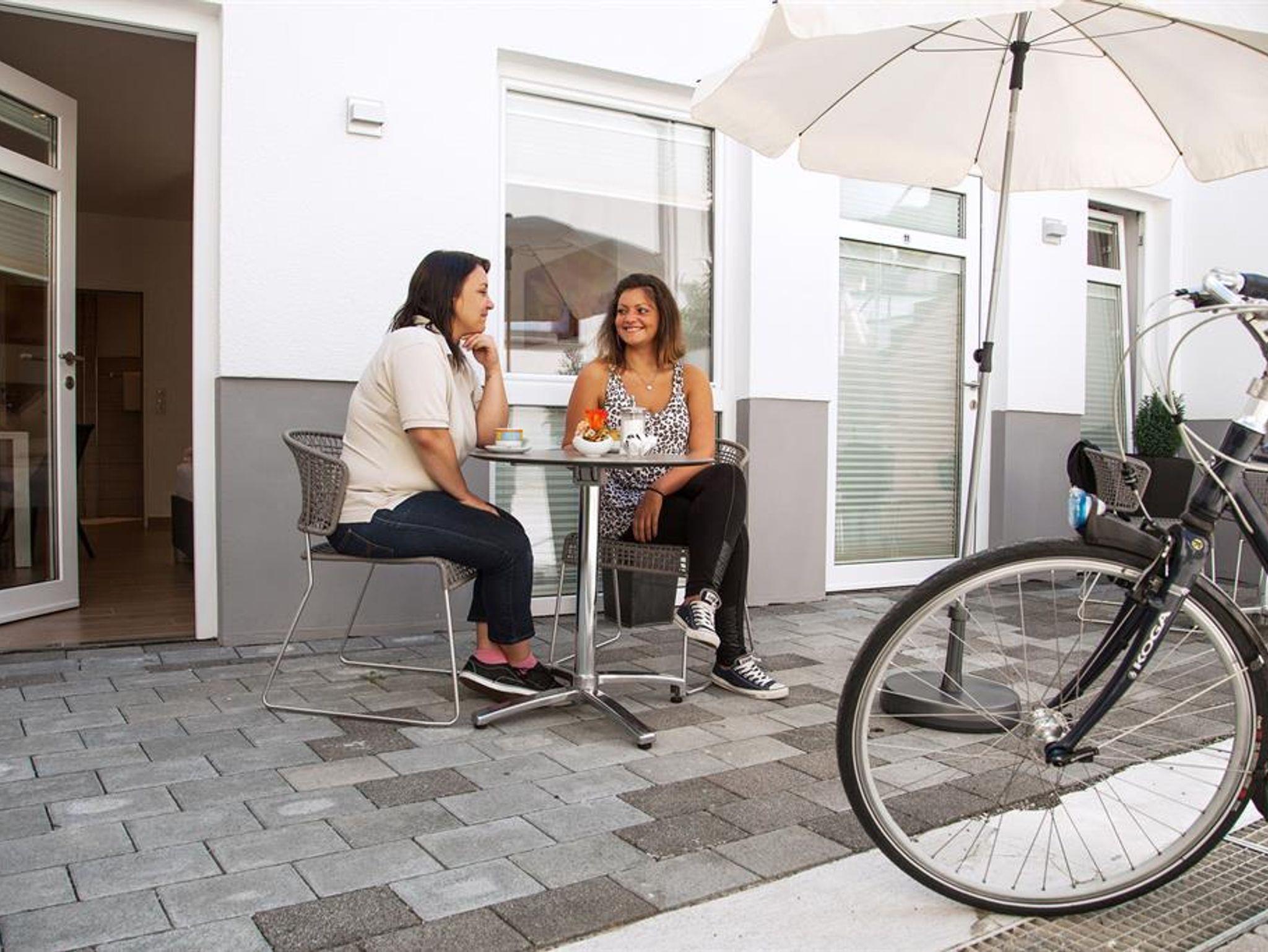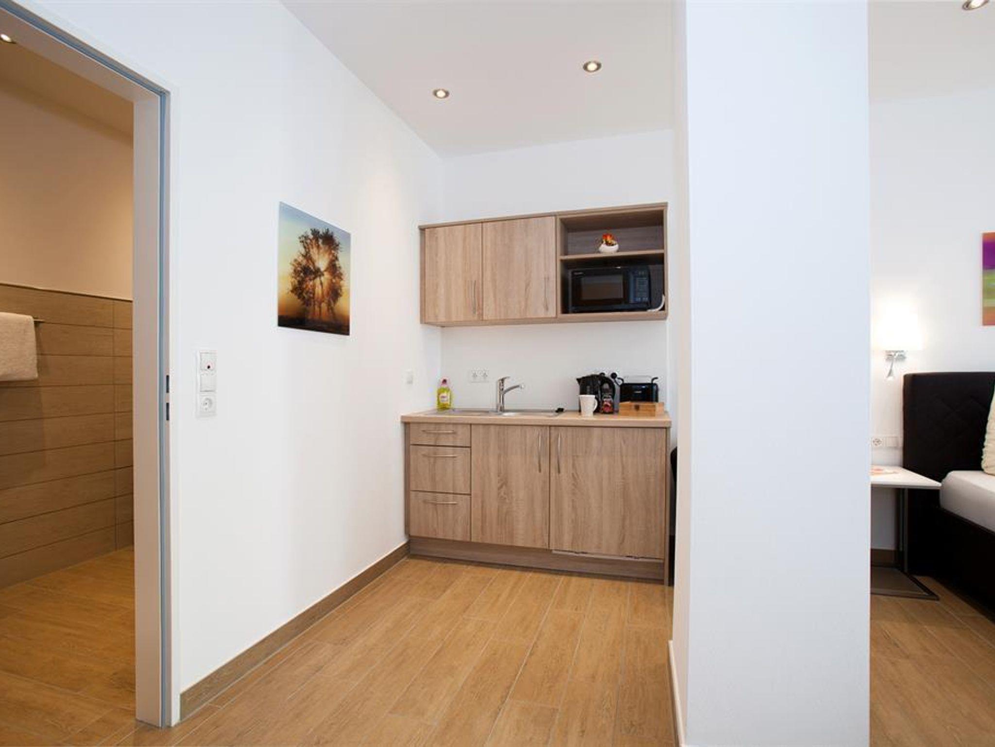 Unsere Studios sind barrierearm, verfügen über ein großes Badezimmer mit Dusche und WC und Fön, eine kleine Cafeecke mit Kühlschrank, Wasserkocher, Toaster, Mikrowelle. Tee und Cafe sind inlusive. Für die warmen Sommertage ein Ventilator. Die bequemen Boxspringbetten sind elektrisch verstellbar. Unser schnelles W-Lan können Sie auch auf der kleinen Terrasse vor Ihrem Studio nutzen.