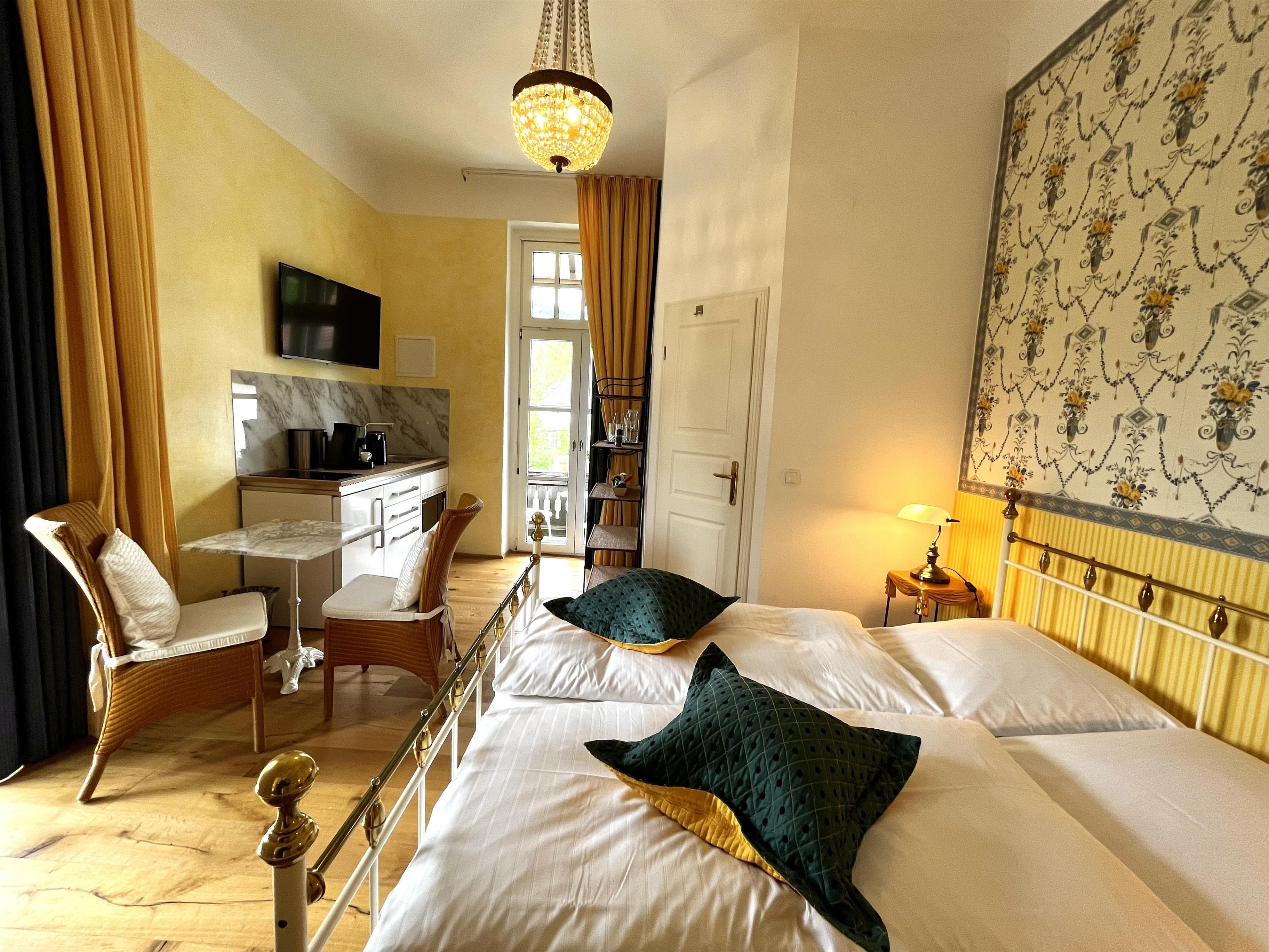 Die PARK VILLA existiert seit 1907 und hat im Laufe ihres Bestehens Zeitgeschichte erlebt und geschrieben. Wir suchten nach einer Möglichkeit, unserer schönen PARK VILLA eine neue Zukunft zu geben. Mit großer Freude dürfen wir Ihnen heute unsere neuen Apartments vorstellen, die von 1 bis 6 Personen buchbar sind. Alle unsere Apartments und Zimmer sind alle liebevoll gestaltet und wir haben unser beliebtes Themenkonzept beibehalten. Die Apartements sind mit kleinen Küchen ausgestattet, sodass unsere Gäste in Zukunft ausschlafen und in Ruhe ihr Frühstück auf ihrem Zimmer zubereiten können. Die neuen Küchen verfügen über einen Kühlschrank, ein Induktionskochfeld, einen Geschirrspüler, eine Mikrowellen/Ofen Kombi und sind mit einer Senseo-Kaffeemaschine, einem Toaster und einem Wasserkocher und Geschirr ausgestattet. Bei den Renovierungsarbeiten haben wir darauf geachtet, dass der in unserer Villa so geschätzte Stil erhalten bleibt.