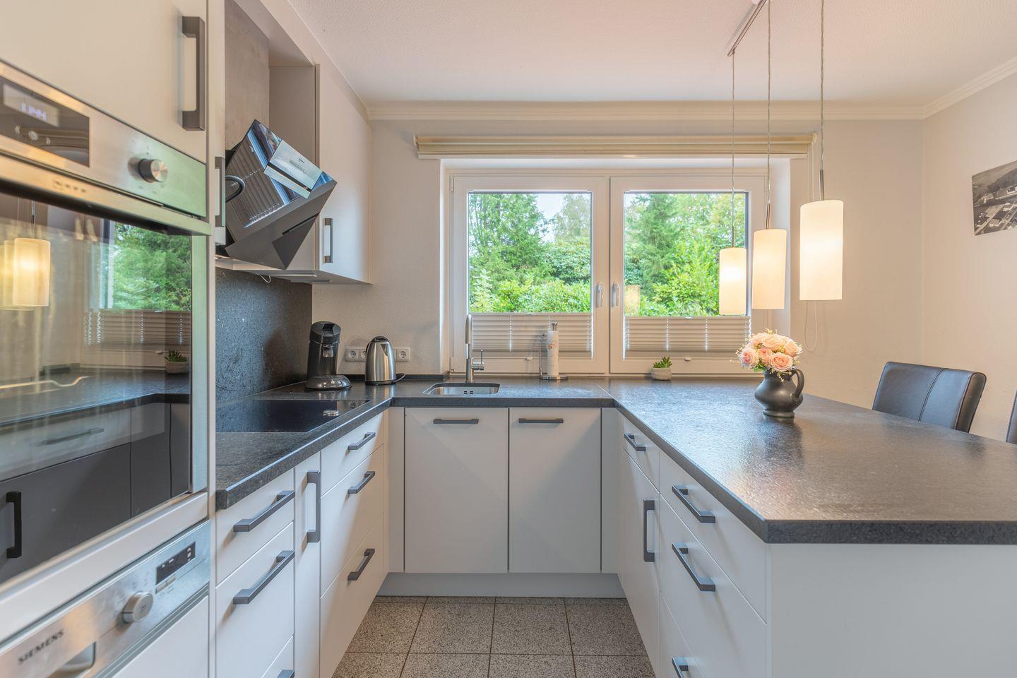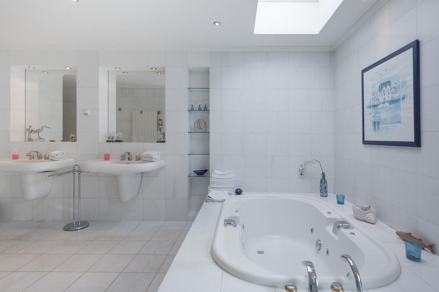 Die komfortable Küche ist mit Herd, Backofen, Kühlschrank, Mikrowelle, Waschmaschine/Trockner, Toaster, Wasserkocher, Filterkaffeemaschine (Filtergröße 4) und Senseo-Kaffeemaschine ausgestattet. Das große Badezimmer verwöhnt Sie mit zwei Waschbecken, einer Dusche, einem Whirlpool, einem WC und ein Bidet. Das gesamte Erdgeschoss wird über eine Fußbodenheizung erwärmt. Über das Wohnzimmer gelangen Sie zum Wellnessbereich mit einem schönen Pool (ca. 4 x 8 Meter groß). Das Wasser ist auf ca. 28 Grad aufgeheizt. Hier steht Ihnen ebenfalls eine geräumige Sauna zur freien Verfügung.