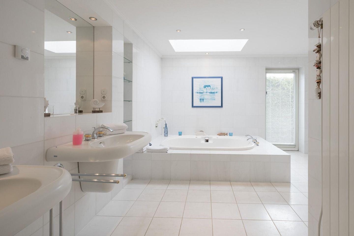 Ferienhaus, 10 km zur Nordsee, für 6 Personen. Wellnessbereich: Schwimmbad, Sauna, Whirlpool. 3 Schlafzimmer, großes Wohnzimmer, Kamin, gut ausgestattete Küche, 2 Bäder. Terrasse mit Grill, eingezäunter Garten. Parkplatz, WLAN, Haustiere erlaubt. Max. 300 qm. Mietzeit in Hauptsaison: Samstag bis Samstag.