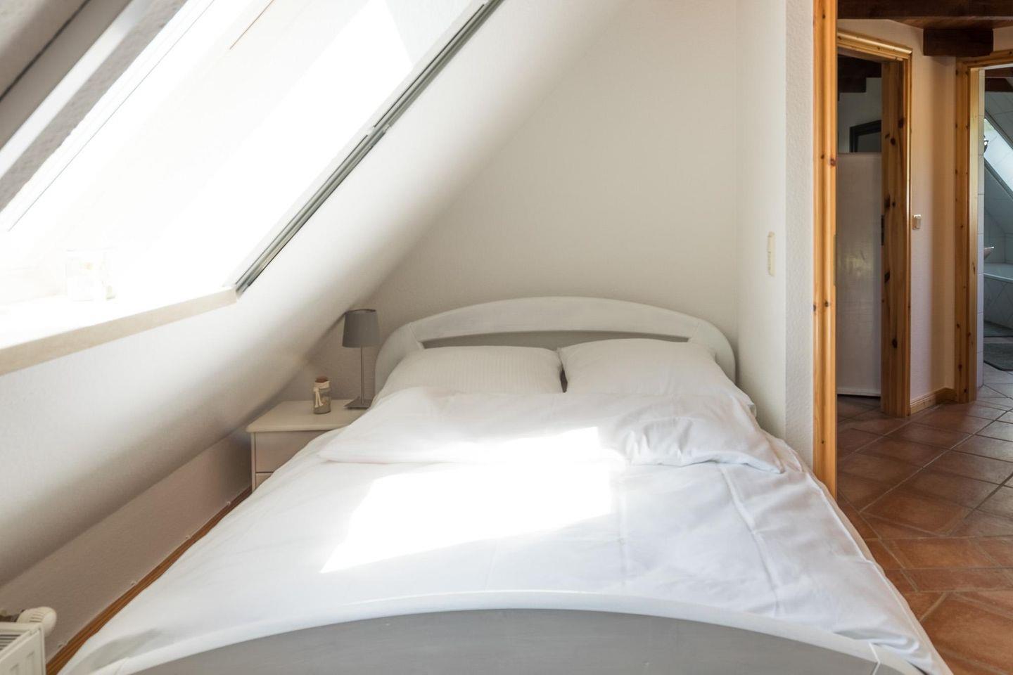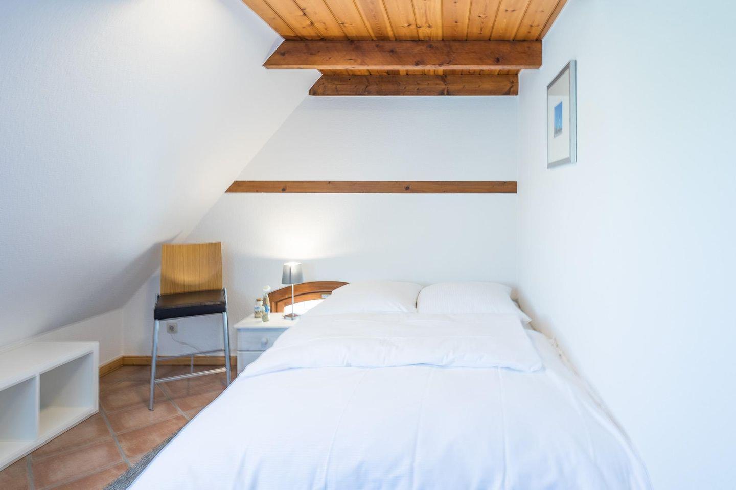 Das Ferienhaus verfügt über drei Schlafzimmer (1 Boxspringbett 180 x 200, zwei Doppelbetten 140 x 200), im Erdgeschoss finden Sie ein Duschbad und im Obergeschoss ein kombiniertes Dusch/Wannenbad, beide mit WC.