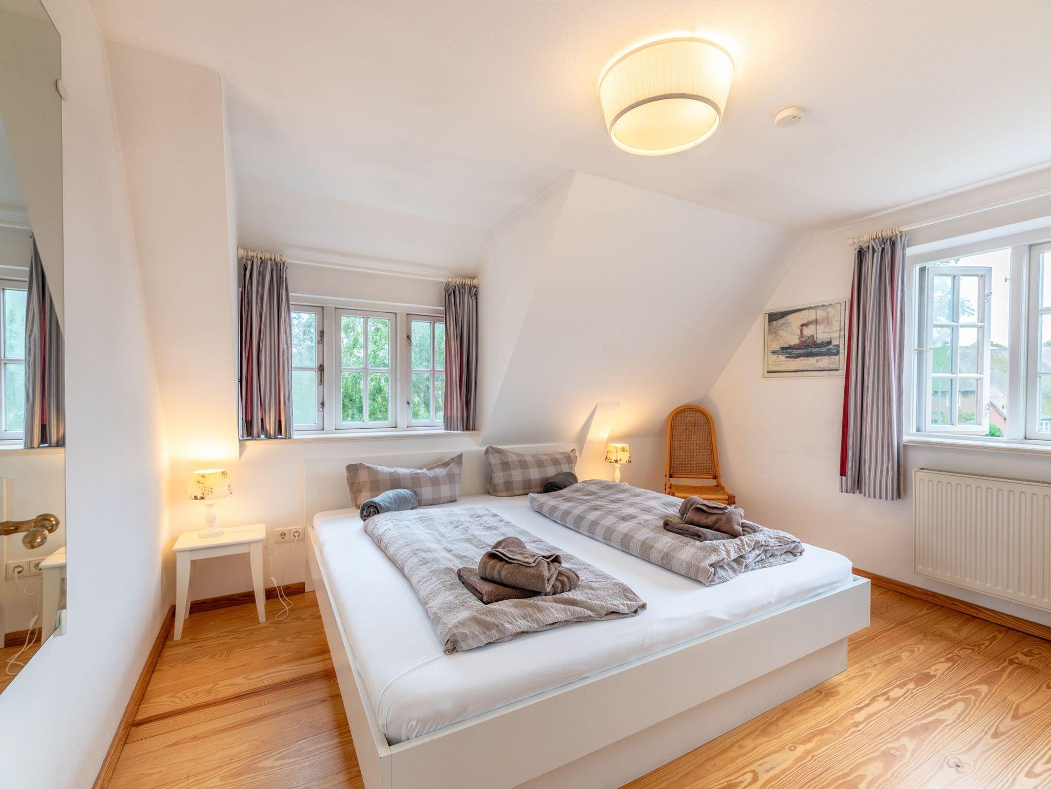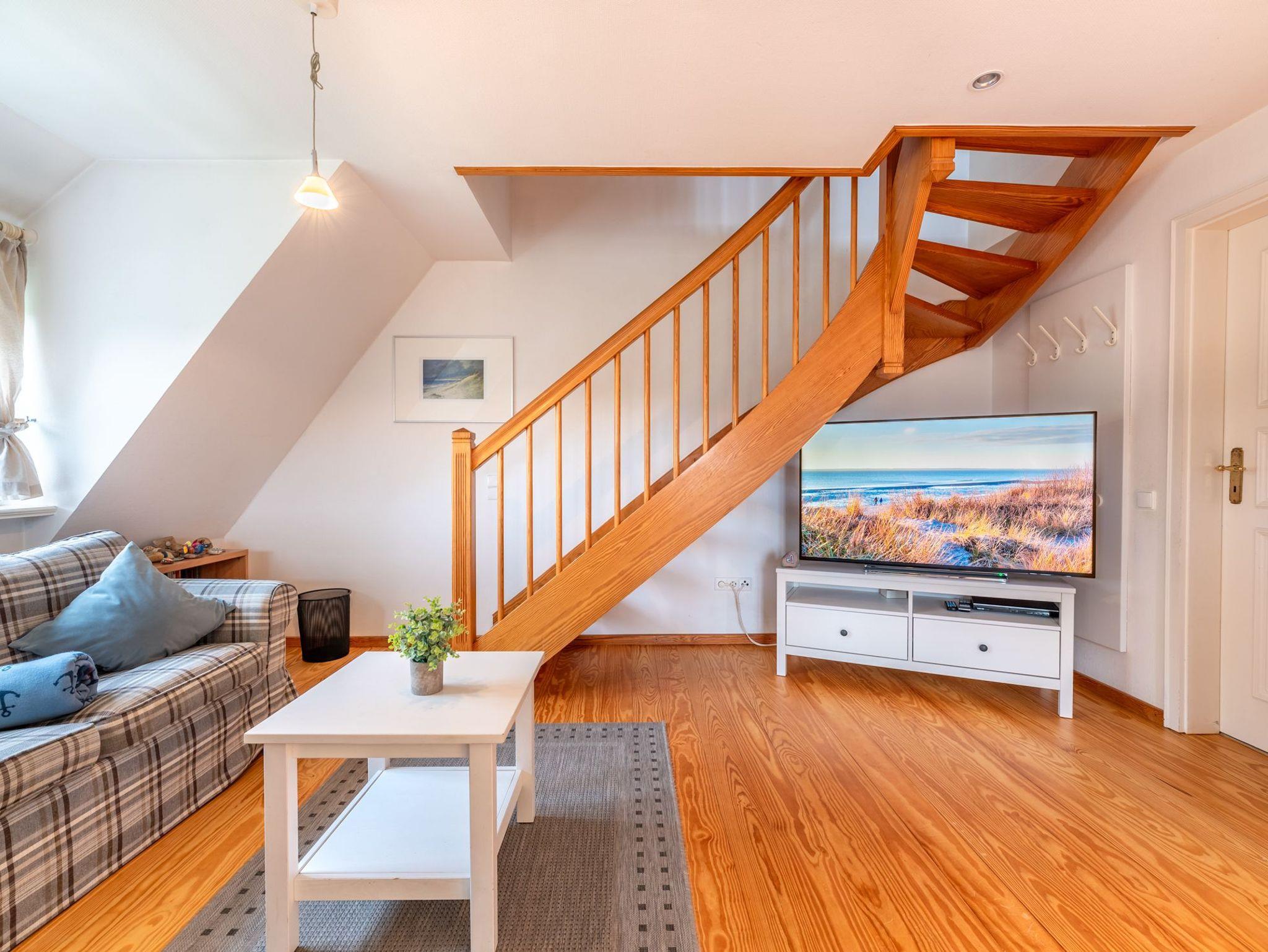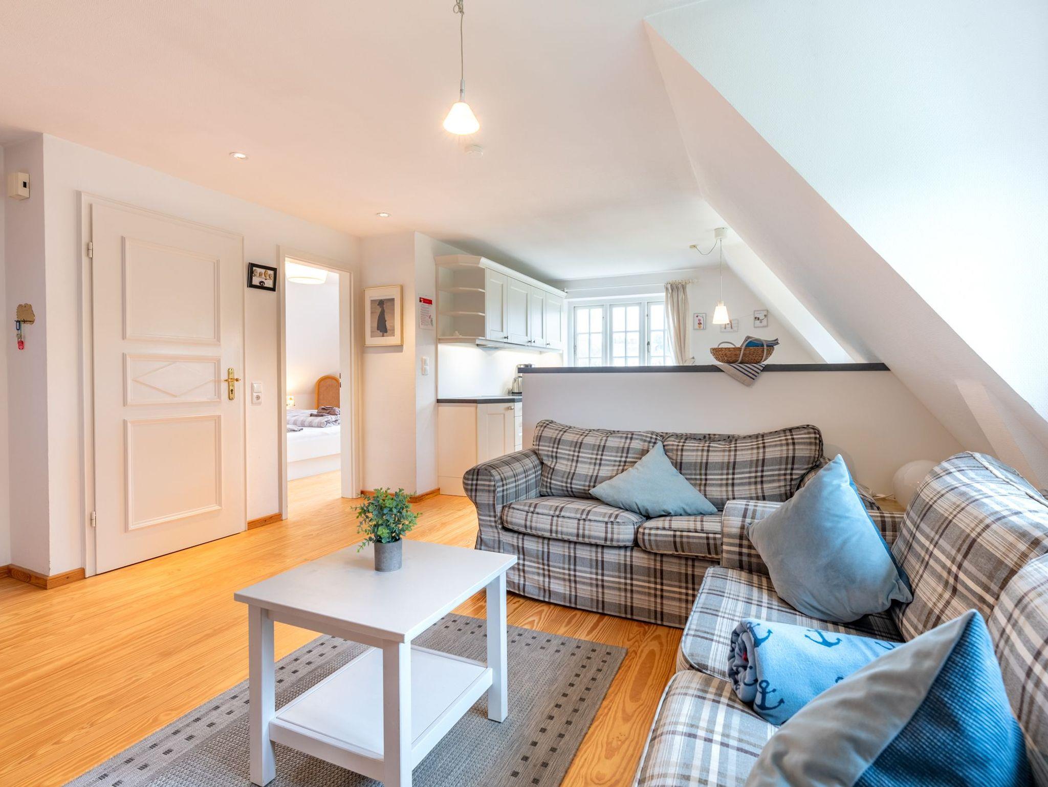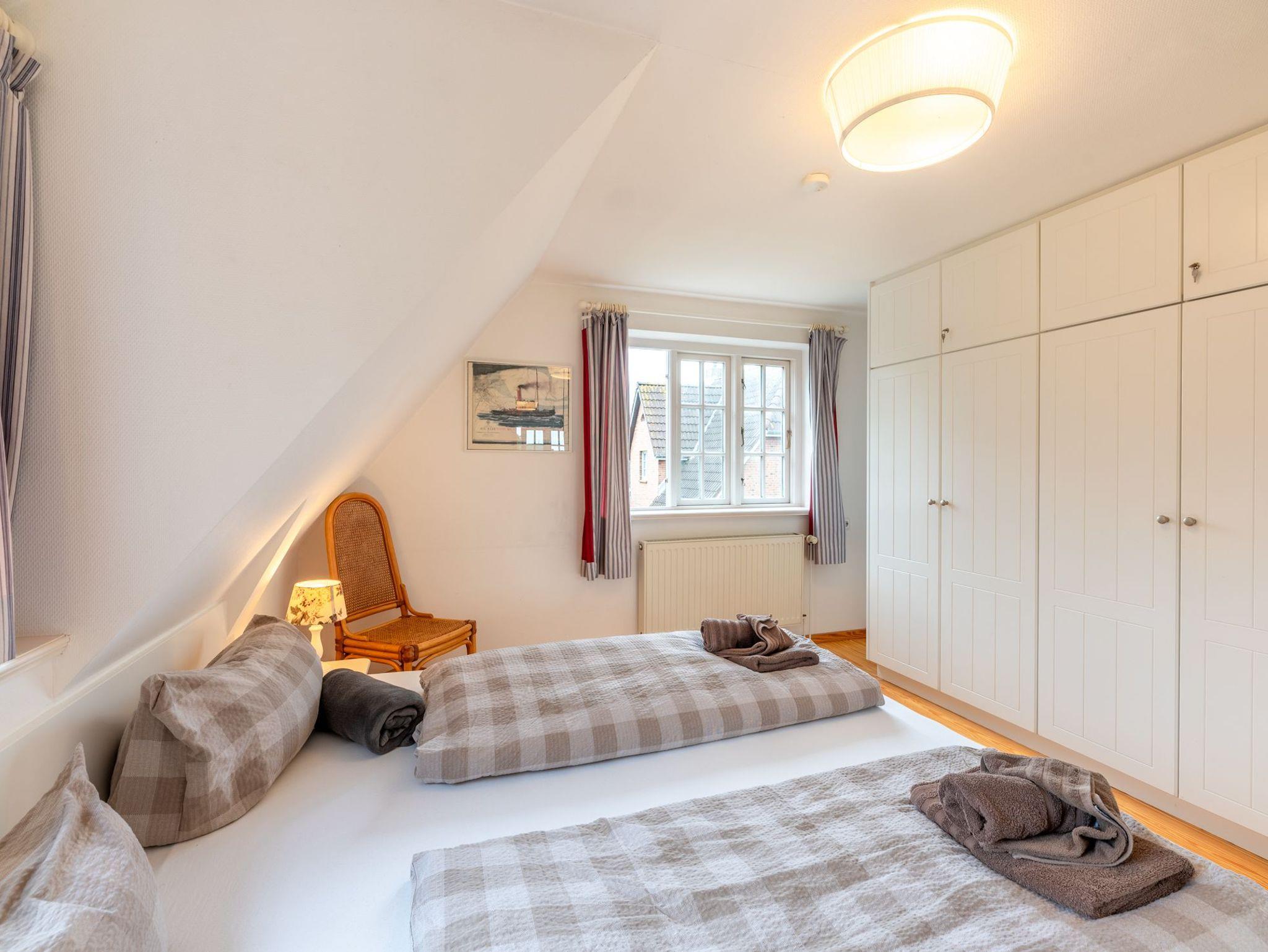 Diese gemütliche 74 m² große Obergeschosswohnung erstreckt sich über 2 Etagen und bietet Platz für bis zu 5 Personen. Die Wohnung erreichen Sie über den linken Hauseingang.