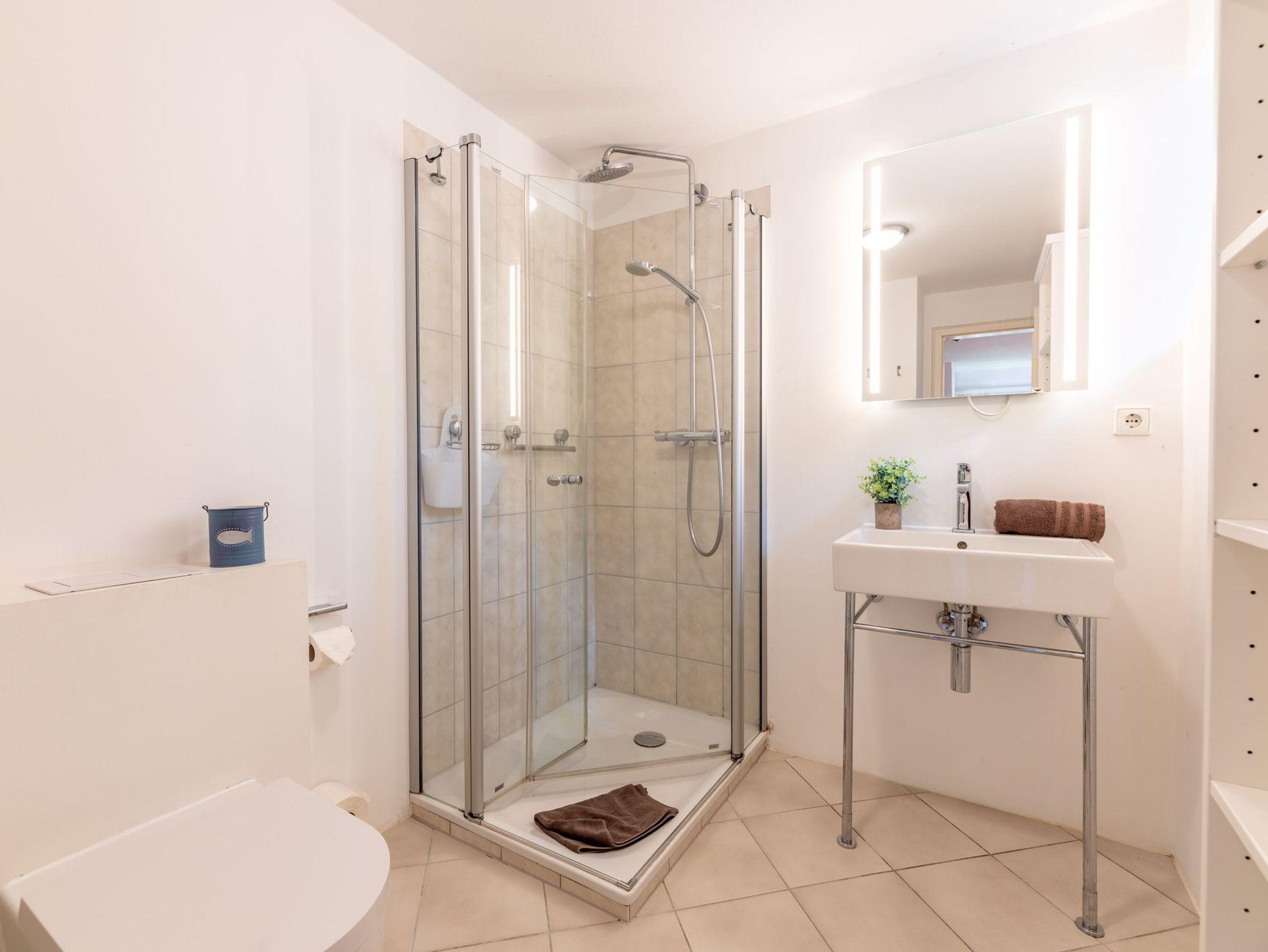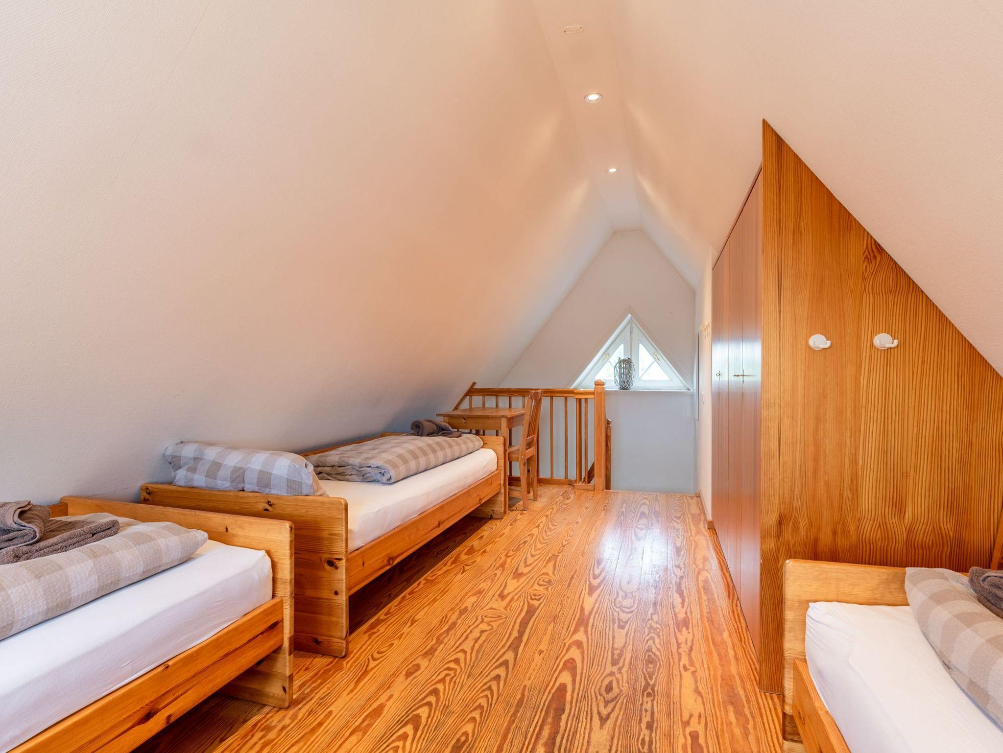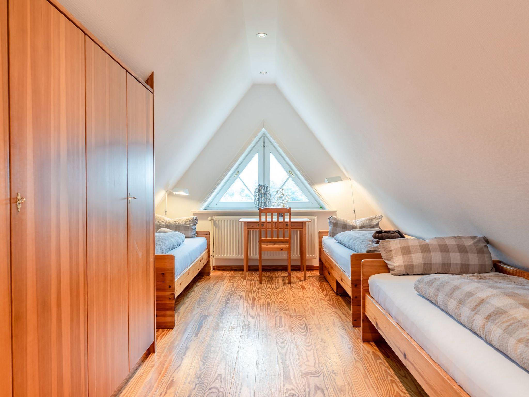 1 Schlafzimmer mit Doppelbett, 1 Schlafzimmer mit 3 Einzelbetten im Dachgeschoss, 1 gemütliche Wohnküche bietet an Ausstattung alles, was das Herz begehrt, 1 Bad mit Dusche.