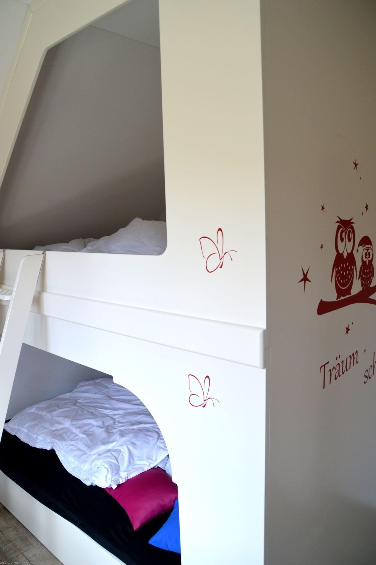 Die drei Schlafzimmer - 2 x mit Doppelbett, 1x mit zwei Einzelbetten stehen Ihnen im Obergeschoss zur Verfügung, ebenso das Wannenbad / WC und die hauseigene Sauna. Im Dachgeschoss befindet sich ein weiterer Aufenthaltsraum mit Sitzkissen, sollte das Wetter mal nicht so passend sein.