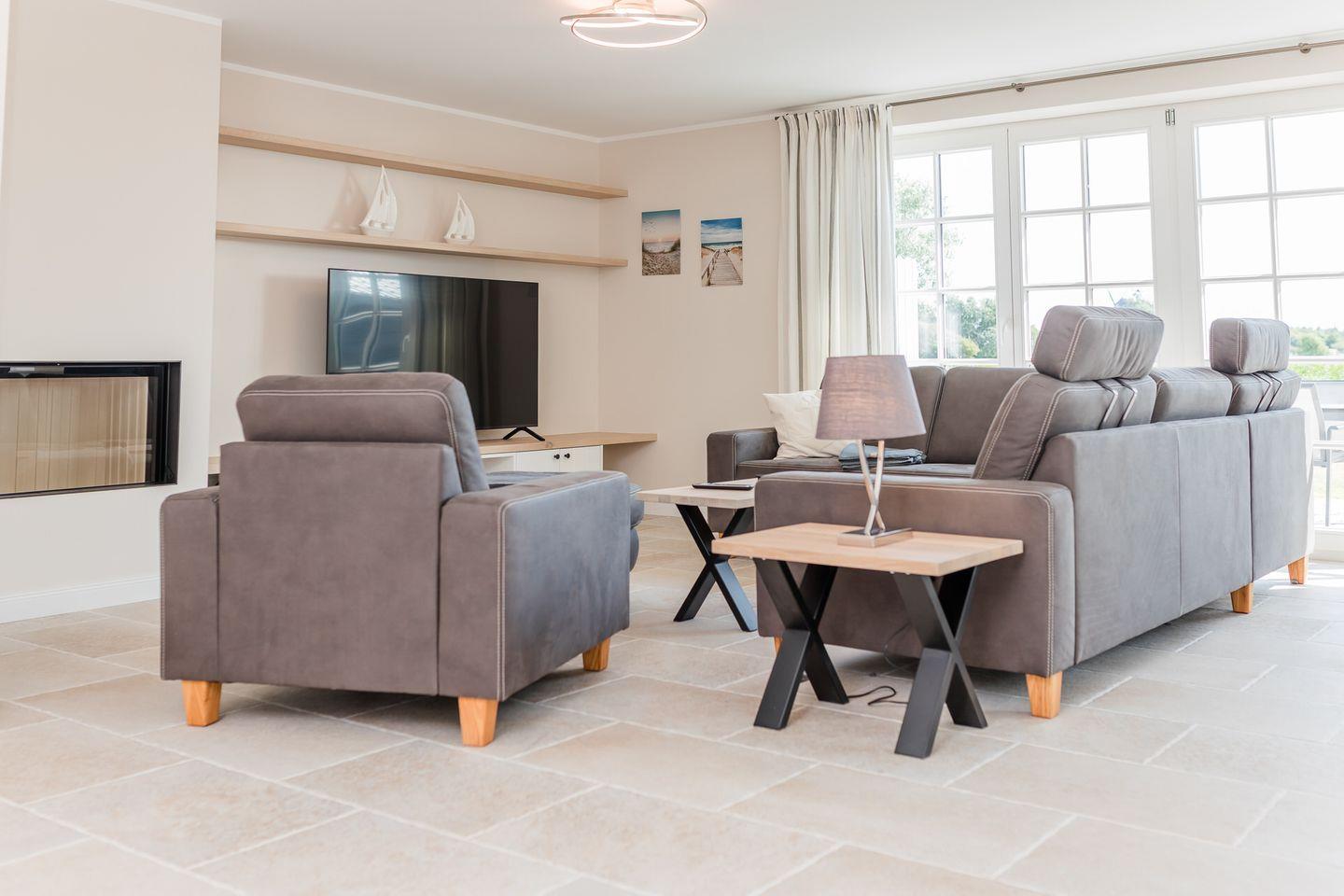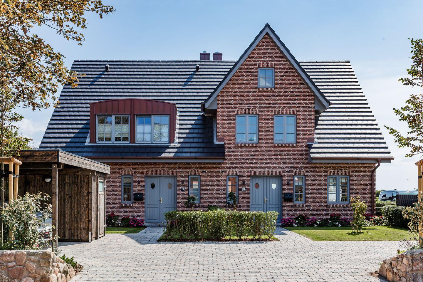 Exklusive Doppelhaushälfte mit eigenem Kamin und Terrasse im großen Garten sowie schönem Ausblick auf Meer und Natur.