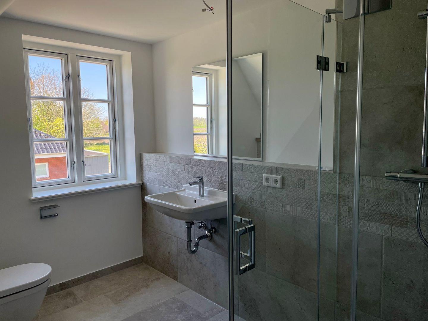 Im Obergeschoss sind die beiden Schlafzimmer - jeweils mit einem Doppelbett ausgestattet -, ein Vollbad mit Dusche und Badewanne sowie ein weiteres Duschbad mit der hauseigenen Sauna gelegen.