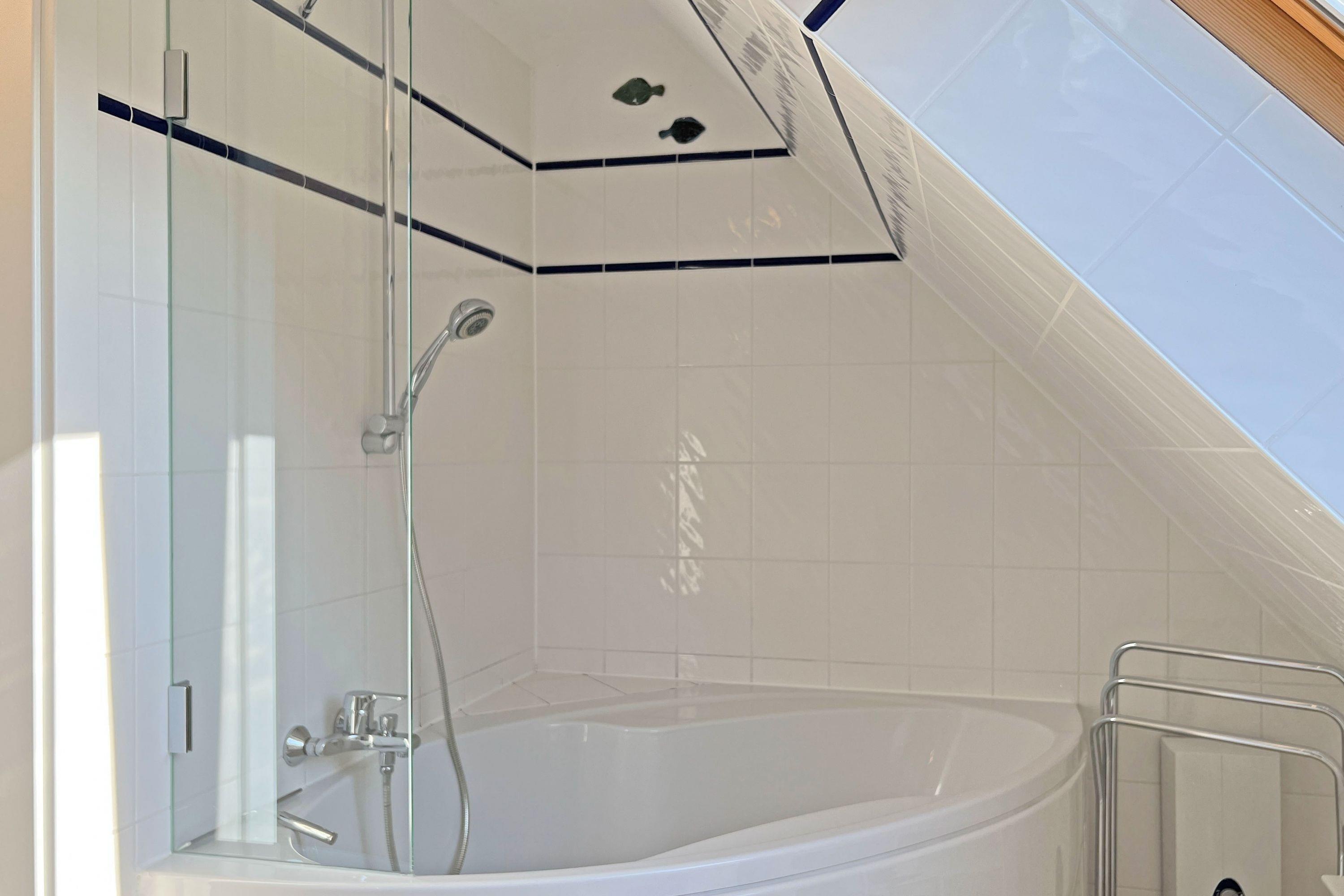 Die offene Küche bietet alles, was Sie für gemeinsame Kochmomente brauchen – vom ersten Frühstück in der Morgensonne bis zum Abendessen bei Sonnenuntergang. Zwei Schlafzimmer mit bequemen Doppelbetten sorgen für erholsame Nächte, während das moderne Badezimmer mit Badewanne und Fußbodenheizung kleinen Wellnessmomenten Raum gibt.