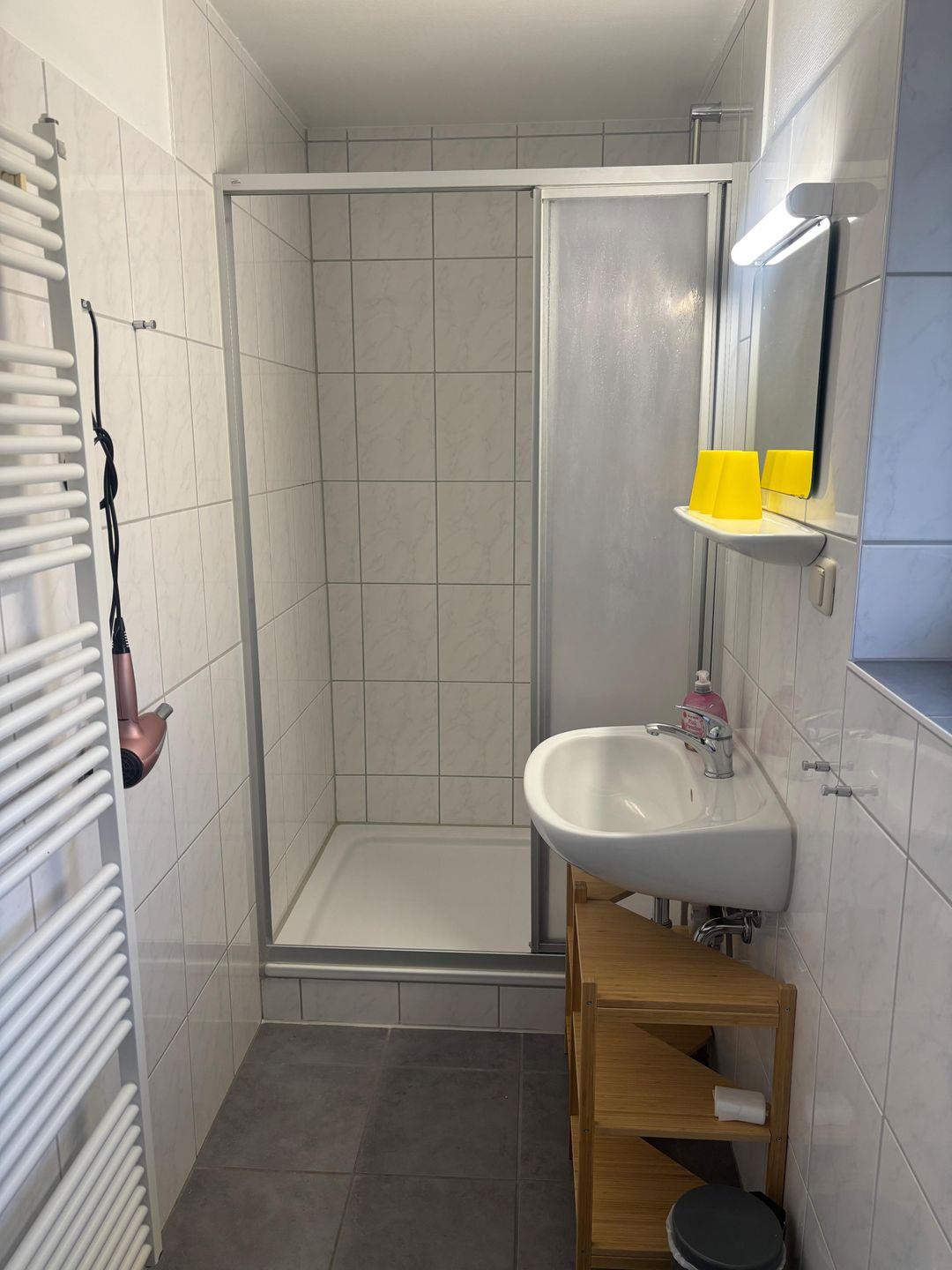 Die modern und freundlich eingerichtete Erdgeschoss-Wohnung bietet alles, was Sie für einen erholsamen Aufenthalt benötigen. Sie wurde 2026 renoviert. Im großzügigen Wohn- und Essbereich erwartet Sie eine komplett ausgestattete Küche mit vier Kochplatten, Backofen, Geschirrspülmaschine sowie Kaffeemaschine, Toaster und Wasserkocher. Das gemütliche Eck-Sofa kann für eine dritte Person ausgezogen werden (Liegefläche 120x200cm). Das separate Schlafzimmer verfügt über ein komfortables Doppelbett (180x200cm) und einen geräumigen Kleiderschrank. Das Badezimmer ist mit einer Dusche und WC ausgestattet.