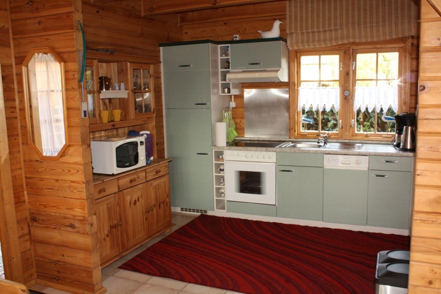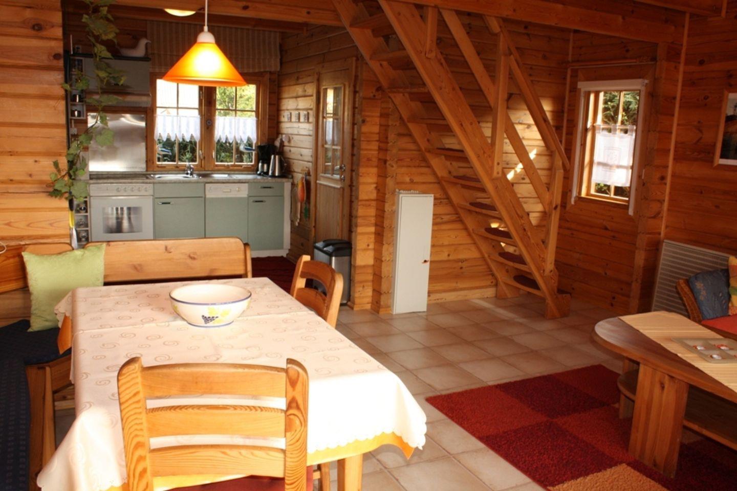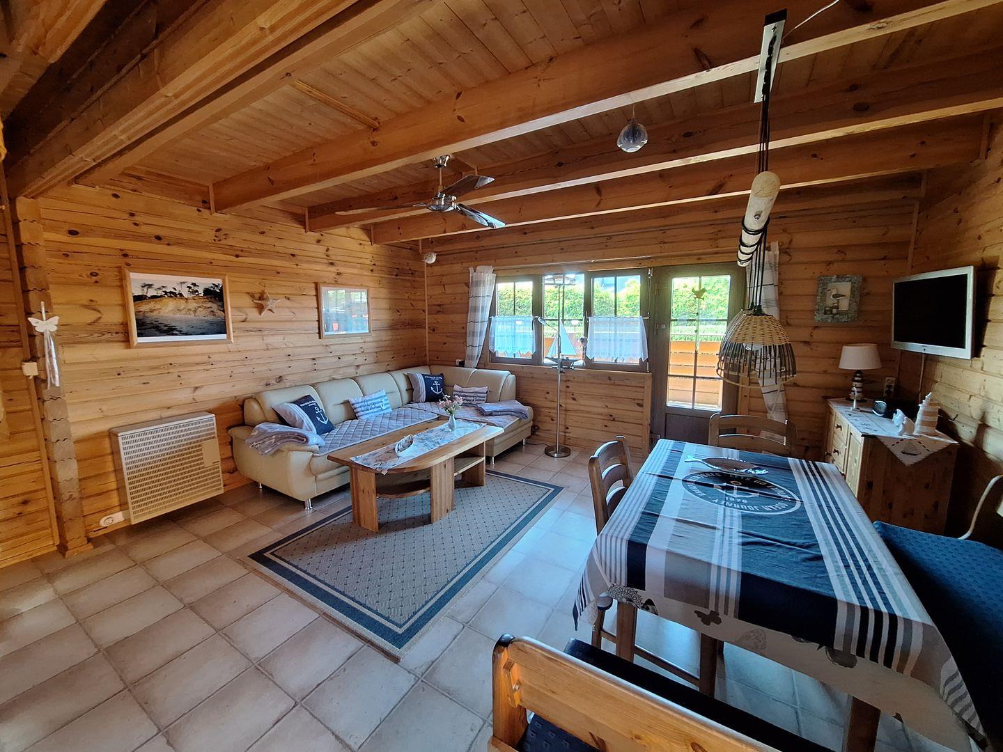 Sehr gepflegtes und liebevoll eingerichtetes Blockhaus mit zwei Schlafzimmern und eigener Terrasse.