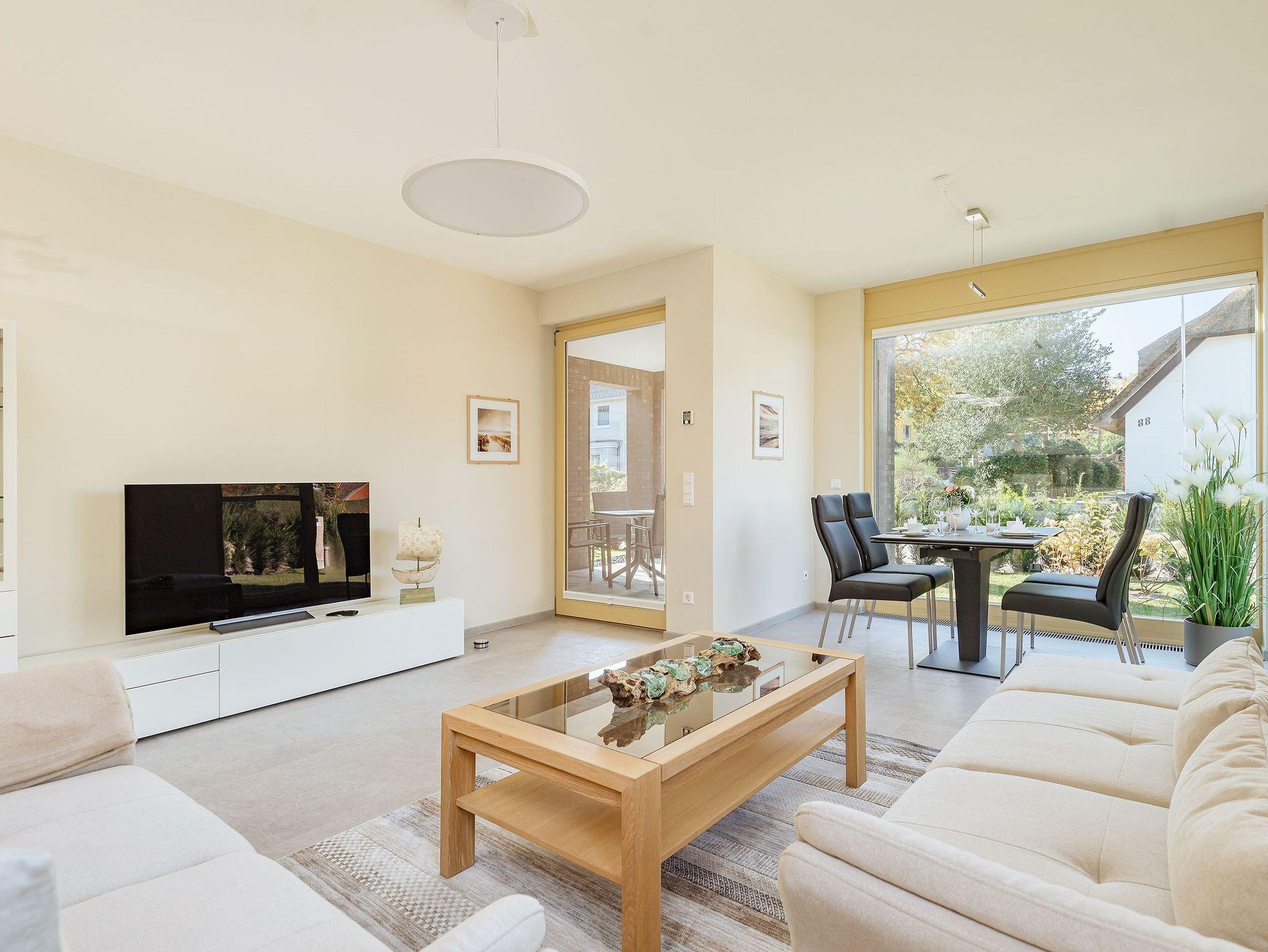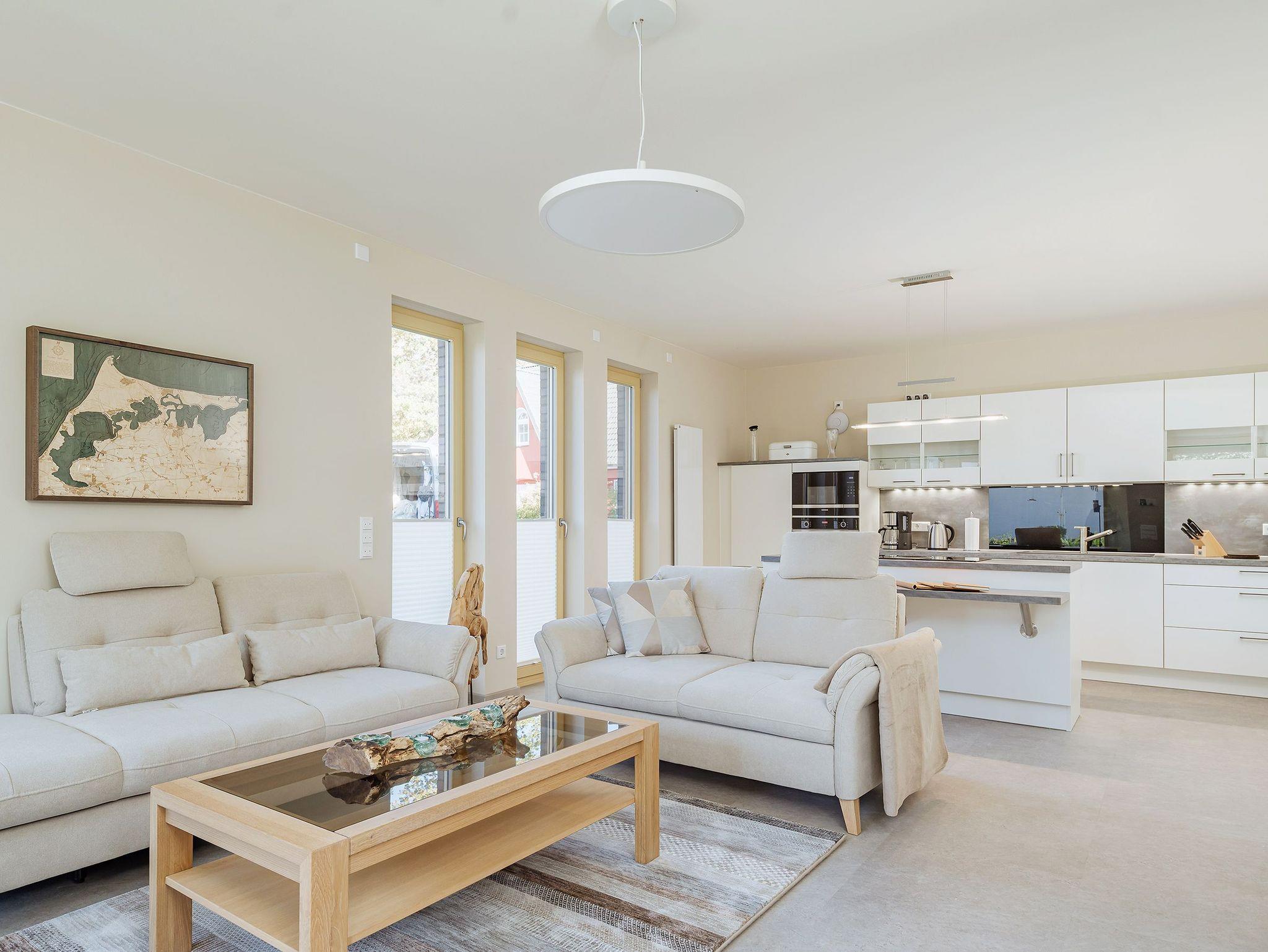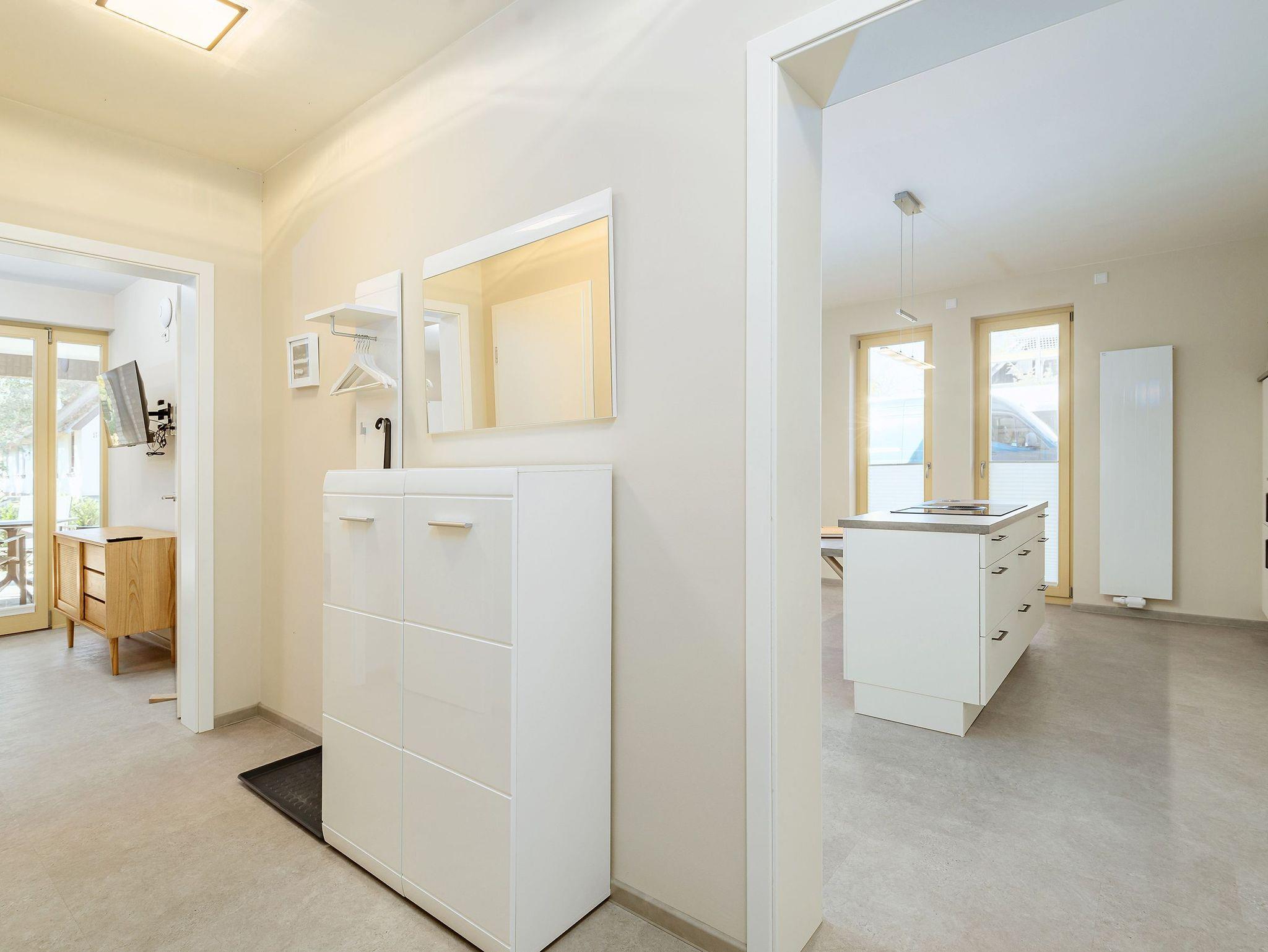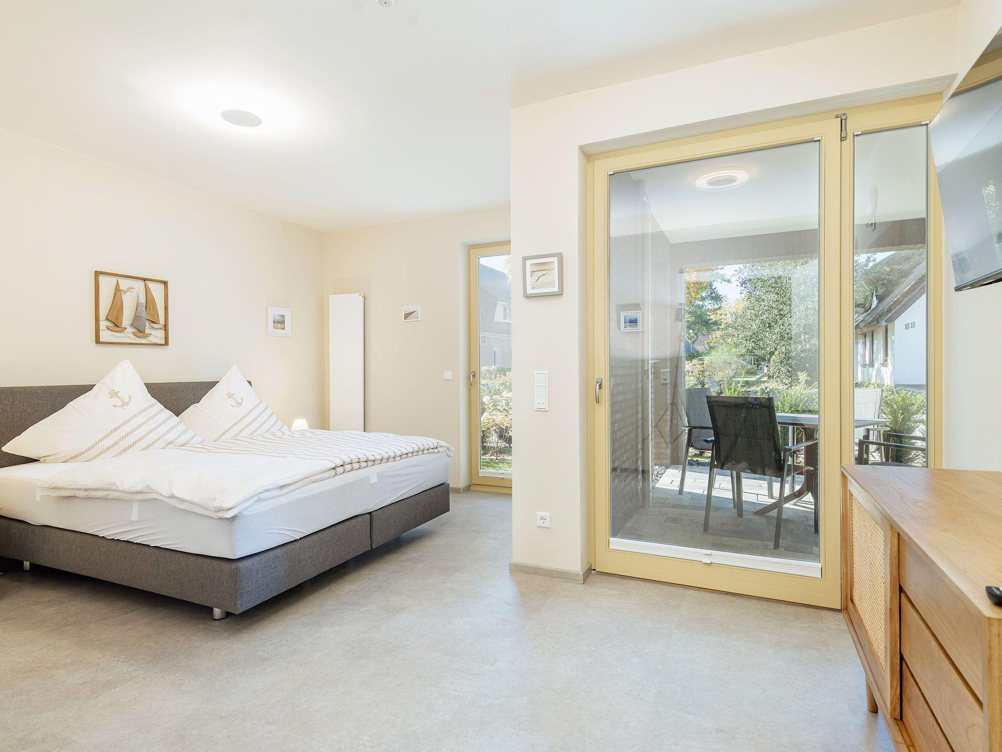 Entdecke Dein neues Feriendomizil im Seebad Born in dieser charmanten Erdgeschosswohnung Pinschieter. Diese moderne 2-Zimmer-Wohnung bietet mit ihren 79 m² großzügigen Wohnraum, der perfekt für Singles oder Paare geeignet ist. Die Wohnung verfügt über ein geräumiges Schlafzimmer mit einem Boxspringbett 2 x 1,80 m. Das stilvolle Badezimmer bietet Komfort und Funktionalität mit einem großen Waschtisch, einem Handtuchheizkörper, einer elektr. Fußbodenheizung, einer ebenerdigen Dusche und einer Sauna.