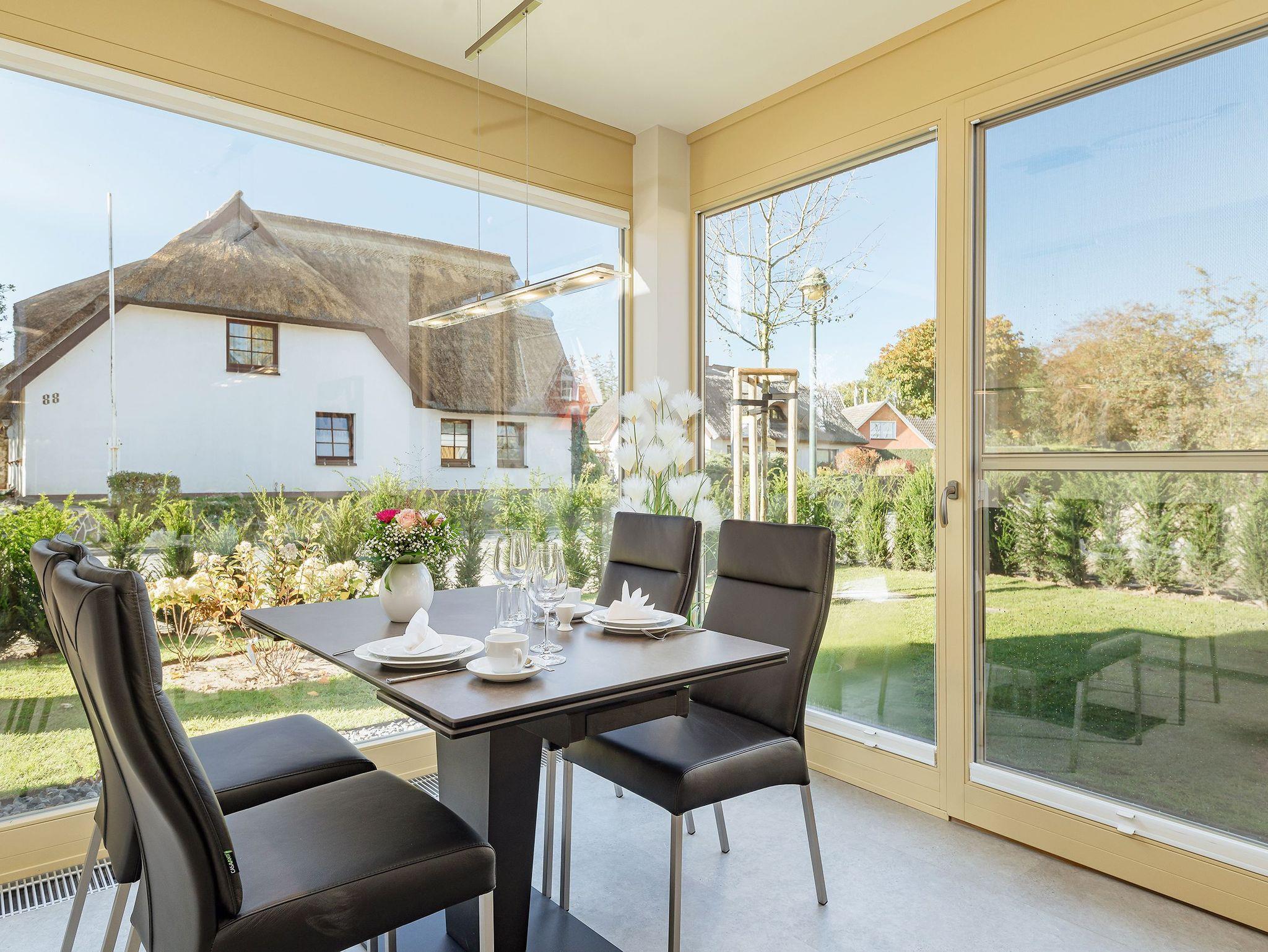 Auf einem ca. 1278 m² großen Grundstück im schönen Seebad Born a. Darß ist unser neues Feriendomizil mit 5 Ferienwohnungen und einer Gewerbeeinheit entstanden. Die Wohnungen sind für 2 - 4 Personen geeignet. Die Grundrisse der jeweiligen Wohnungen, mit 73 m² - 99 m², sind sehr großzügig geschnitten. 4 der 5 Ferienwohnungen sind mit einer Sauna ausgestattet. Tageslichtbäder mit je einem großen Waschtisch, einer ebenerdigen Dusche, einer elektrischen Fußbodenheizung und einem Handtuchheizkörper sind Bestandteil der Ausstattung.