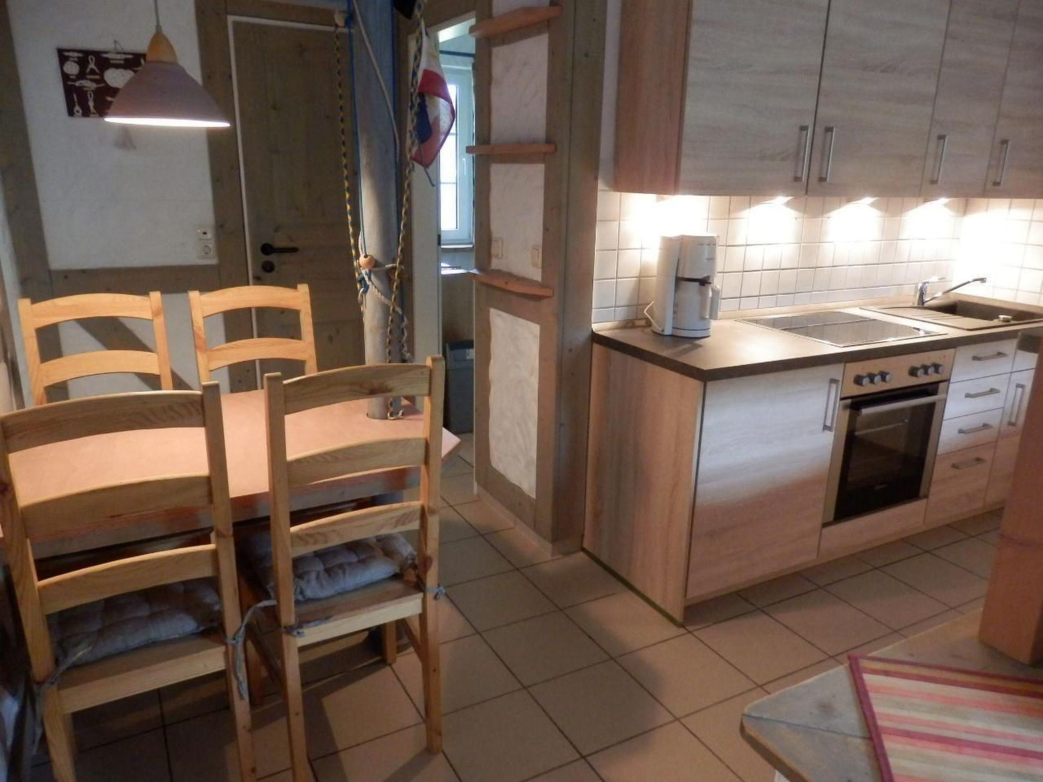 Inside the flat you will find everything you need for a carefree holiday. The kitchenette is fully equipped with appliances such as a fridge, freezer, hob, oven, coffee machine, toaster and kettle - perfect for preparing your own meals. For your comfort, there are two bedrooms, one with a cosy double bed (1.60m x 2.00m) and the second with a practical bunk bed (0.90m x 1.90m each). The living area is equipped with satellite TV, radio, CD player and a dining table with chairs. The bathroom has a shower, toilet and washbasin, supported by efficient gas central heating and solar panels for hot water.