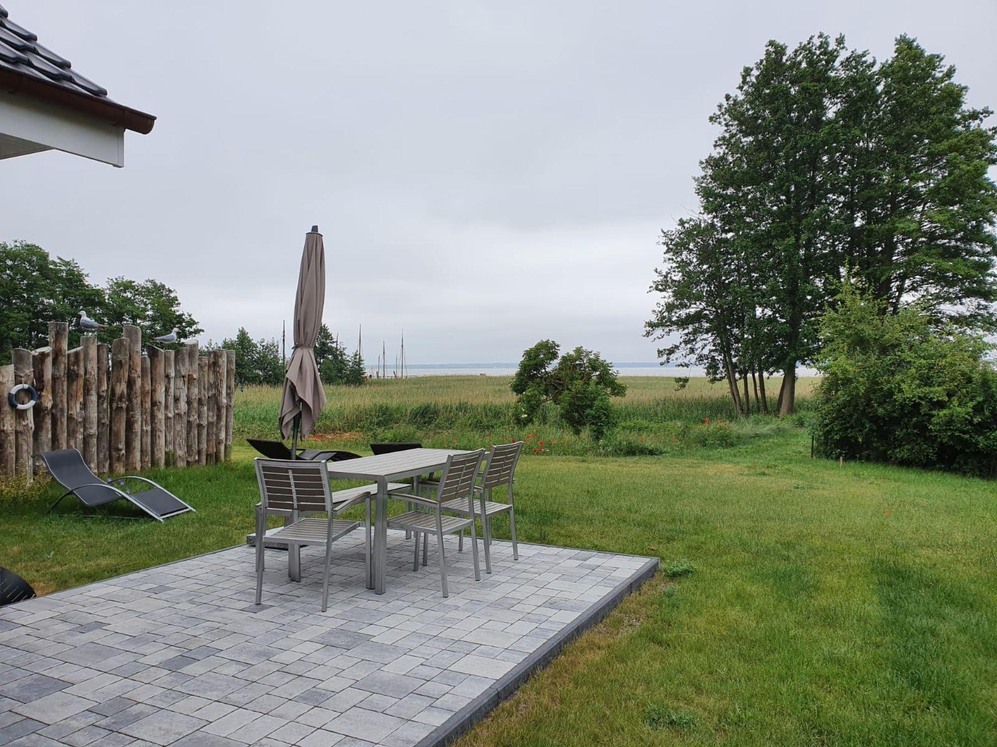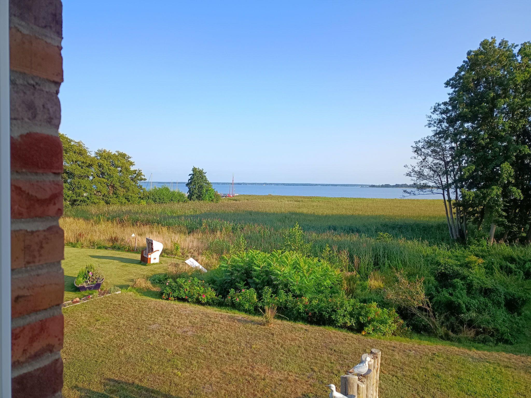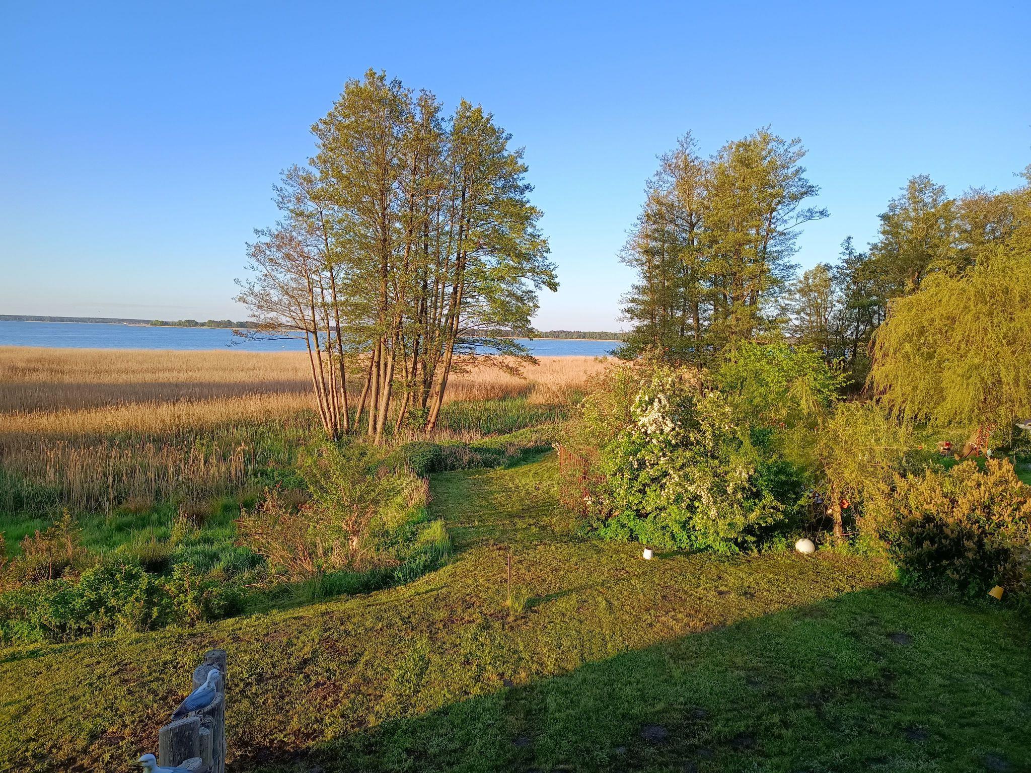 The house is situated on the shore of the Bodden with an unobstructed view of the wide expanse of water. It is located at the end of a private path, approx. 60 metres away from the street 'Bauernreihe'. The restaurant 'Kum rin' is 60 metres away, the children's beach and Wieck harbour are 300 metres away. The Baltic Sea is 5 kilometres away. Ideally, you should cycle along the signposted and well-surfaced cycle path and enjoy several views of the wide meadows where cattle graze and many migratory birds rest in spring and autumn.