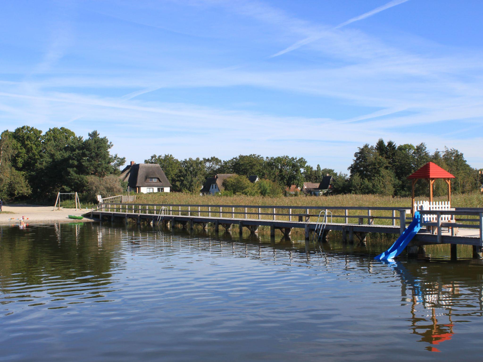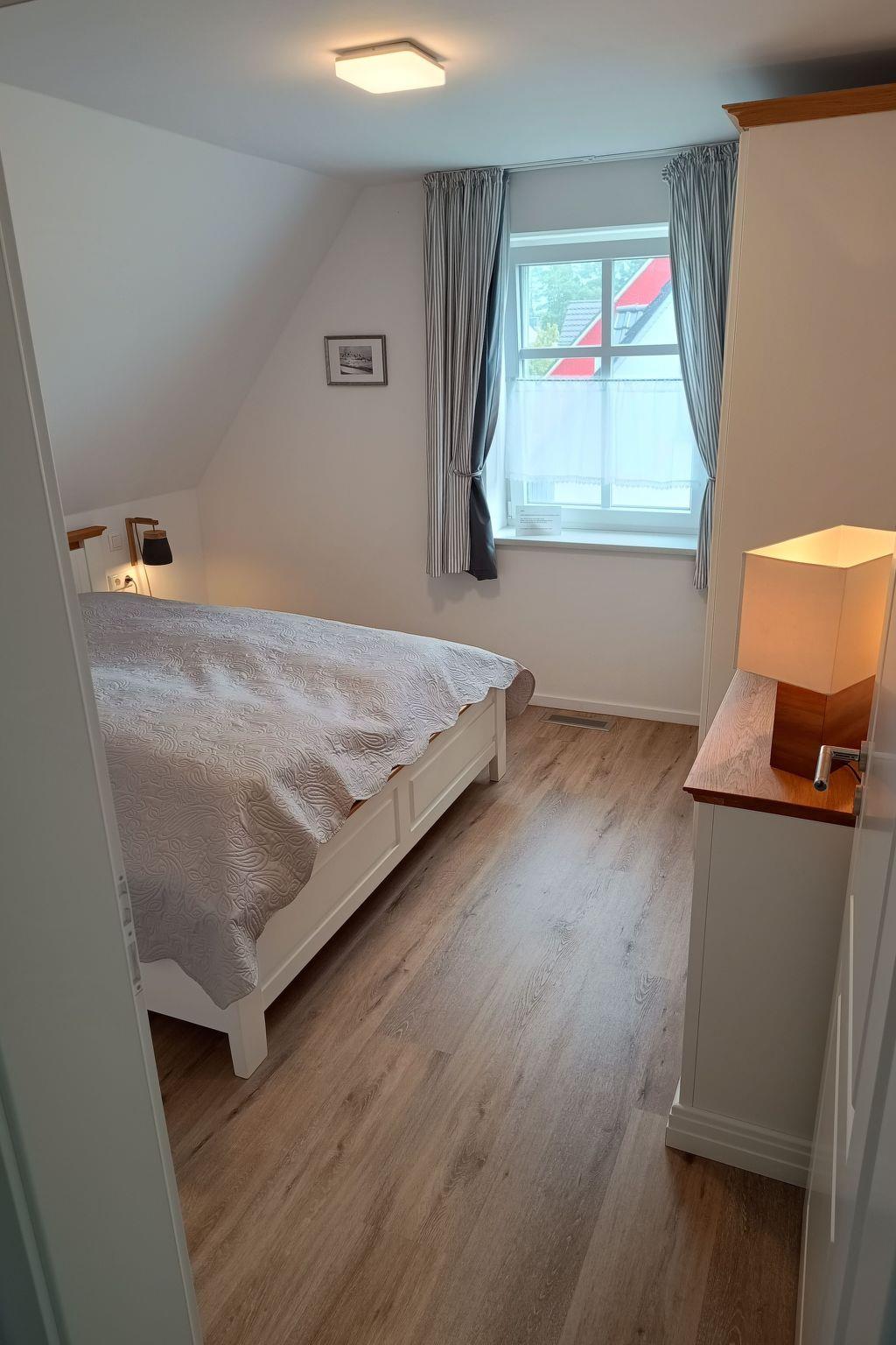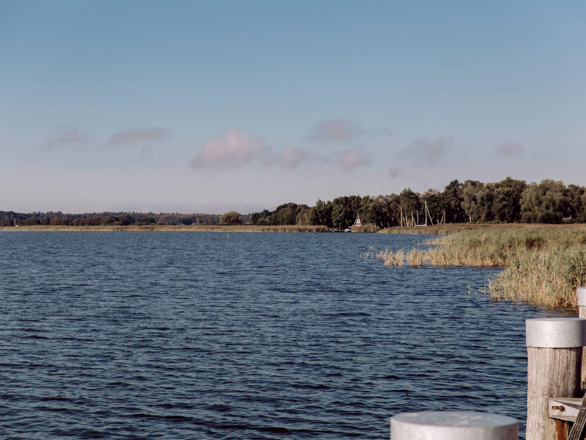 The house is situated on the shore of the Bodden with an unobstructed view of the wide expanse of water. It is located at the end of a private path, approx. 60 metres away from the street 'Bauernreihe'. The restaurant 'Kum rin' is 60 metres away, the children's beach and Wieck harbour are 300 metres away. The Baltic Sea is 5 kilometres away. Ideally, you should cycle along the signposted and well-surfaced cycle path and enjoy several views of the wide meadows where cattle graze and many migratory birds rest in spring and autumn.