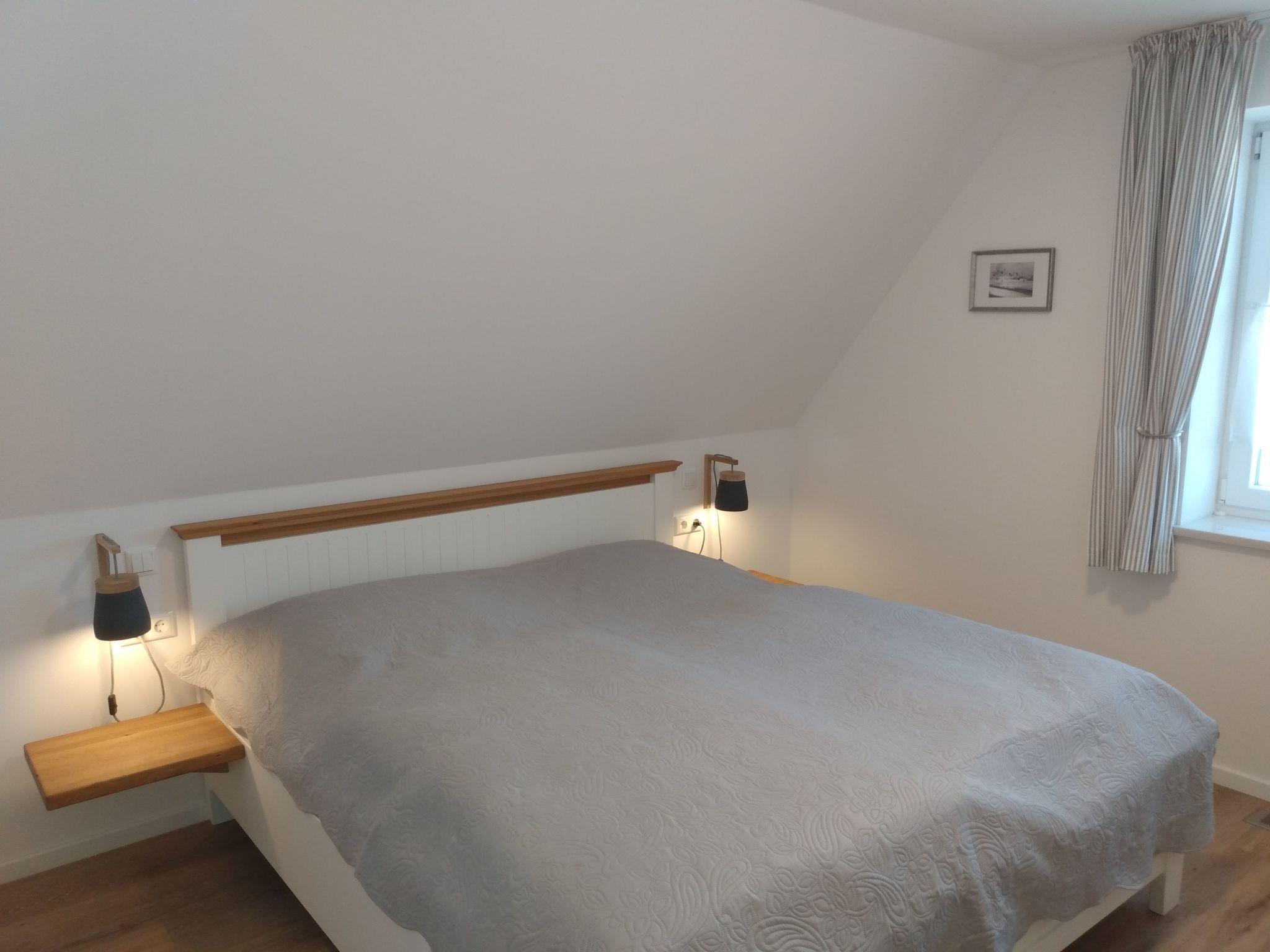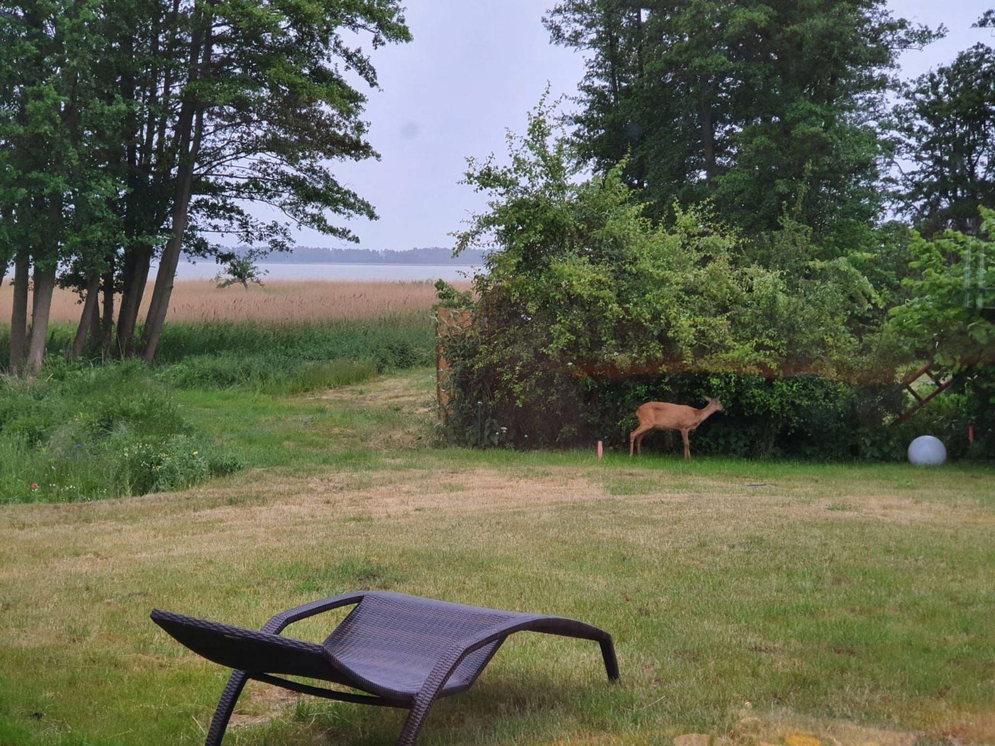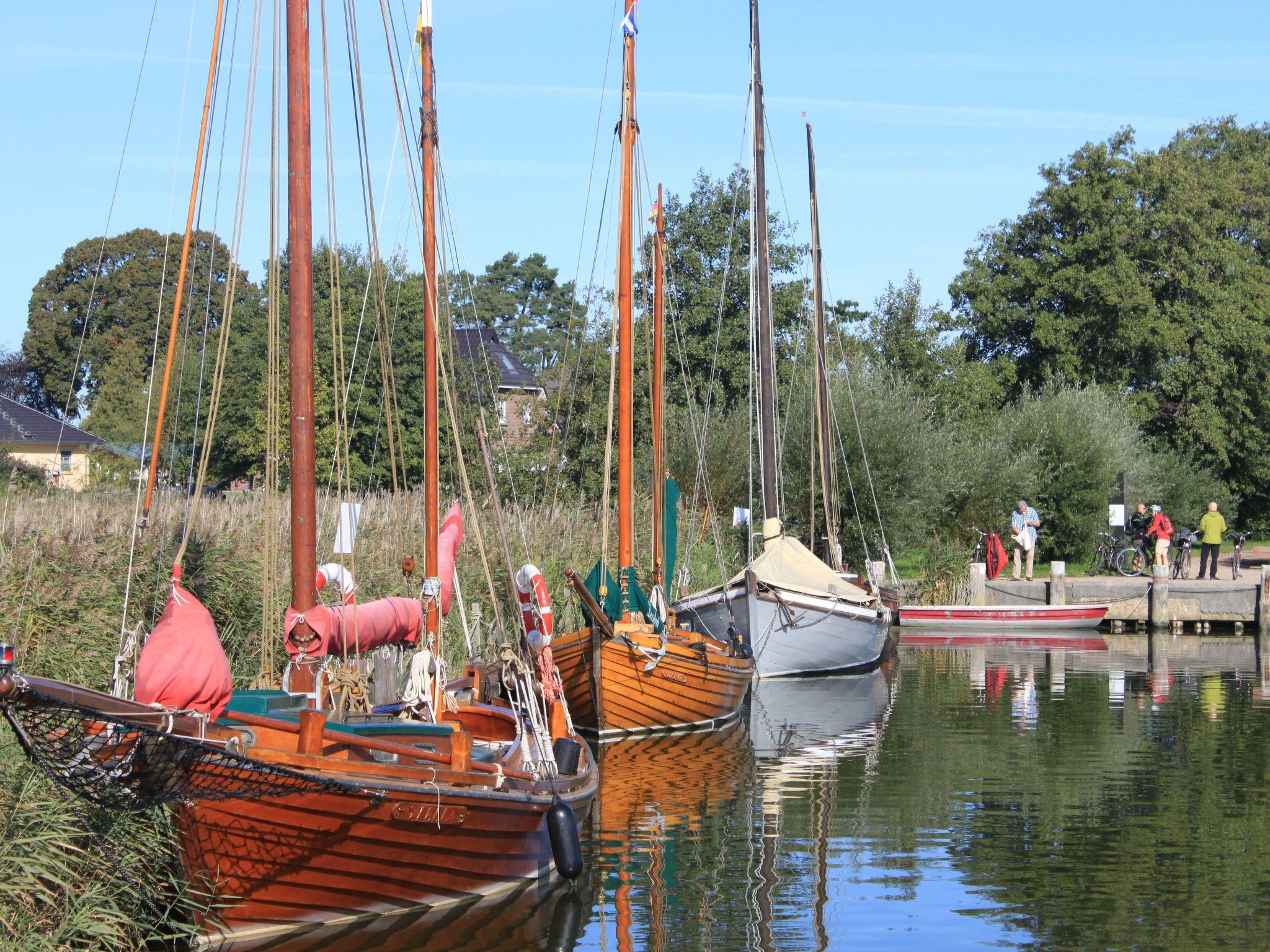 The house is situated on the shore of the Bodden with an unobstructed view of the wide expanse of water. It is located at the end of a private path, approx. 60 metres away from the street 'Bauernreihe'. The restaurant 'Kum rin' is 60 metres away, the children's beach and Wieck harbour are 300 metres away. The Baltic Sea is 5 kilometres away. Ideally, you should cycle along the signposted and well-surfaced cycle path and enjoy several views of the wide meadows where cattle graze and many migratory birds rest in spring and autumn.