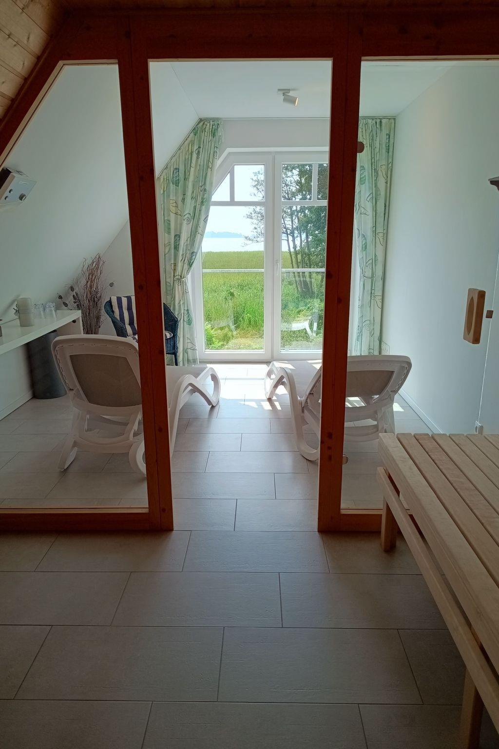 View of the Bodden, sauna - spacious & with a great view, bathtub, stylish furnishings, 3 bedrooms, 3 parking spaces, lockable wooden shed for bicycles with charging facilities for e-bikes. E-car charging at household socket is not permitted. The long charging time places a permanent load on the domestic power grid, which is not designed for this. This heavy load can lead to a short circuit or even a fire. Internet: The holiday accommodation has free and freely accessible internet access. The landlord accepts no liability for the proper functioning of the equipment or the performance of the provider. Claims for damages due to a fault-prone or 'slow' connection are excluded. Guests are responsible for all internet activities during the agreed rental period.