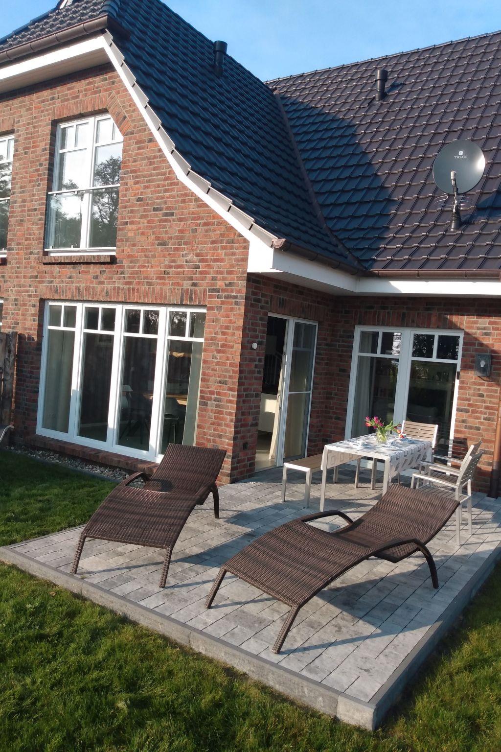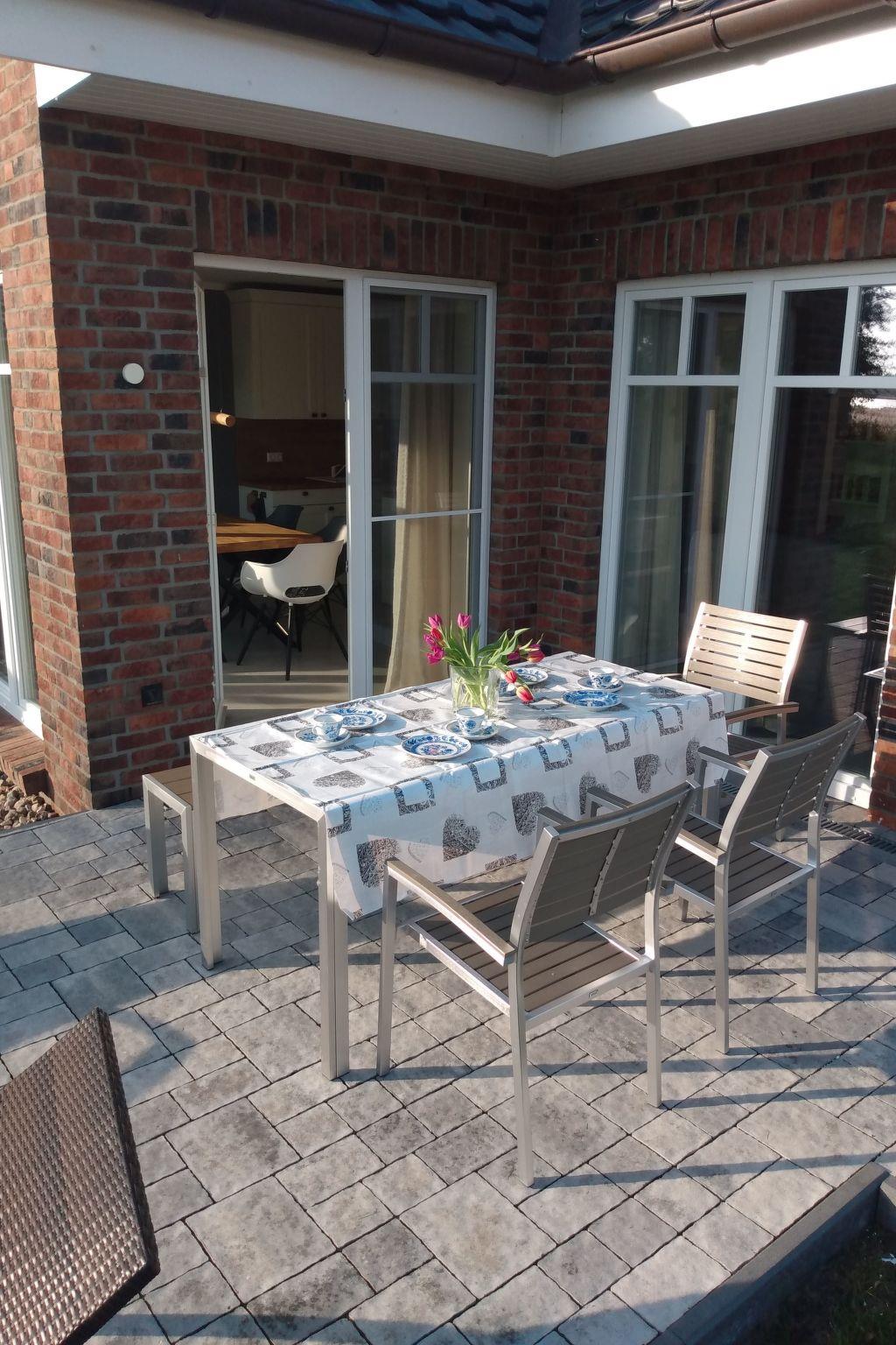 The south-facing terrace area offers ample seating for all the occupants of the house. From the terrace you have a fantastic view of the countryside and the Bodden. The house is in a quiet location, as it was built approx. 60 metres back from the street "Bauernreihe" at the end of a private path. Google/Maps offers a good overview of the 'location' on site.
