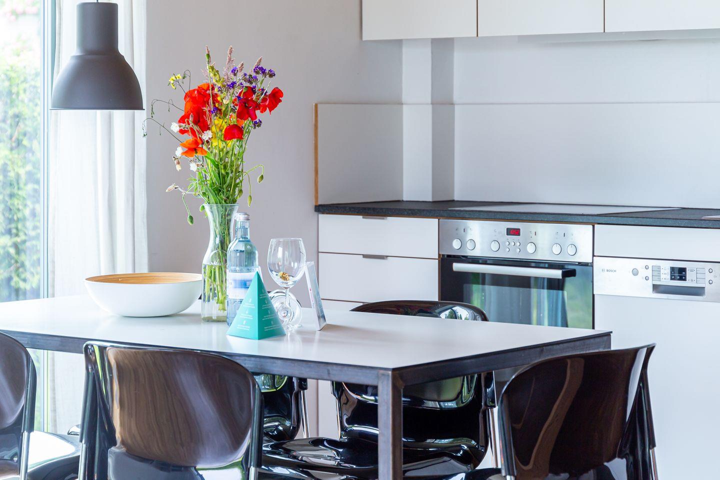 Im Außenbereich begeistert eine große Holzterrasse mit modernen Gartenmöbeln zum Relaxen. Hier kannst du grillen, die lauen Sommerabende genießen oder einfach mit Blick ins Grüne die Seele baumeln lassen. Der große Garten mit Liegewiese kann gemeinschaftlich genutzt werden. Außerdem steht dir ein PKW-Stellplatz zur Verfügung.