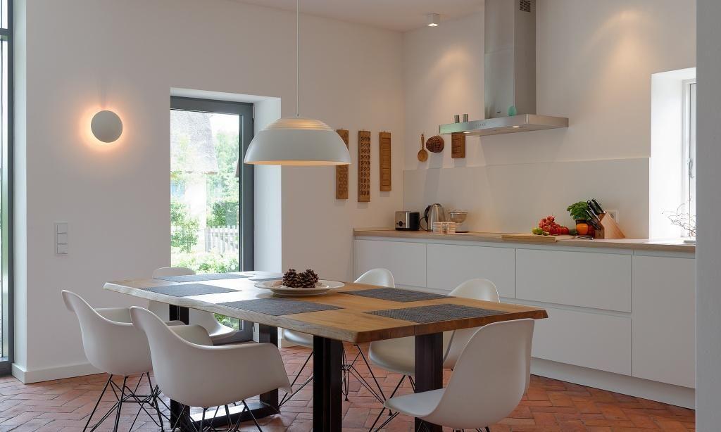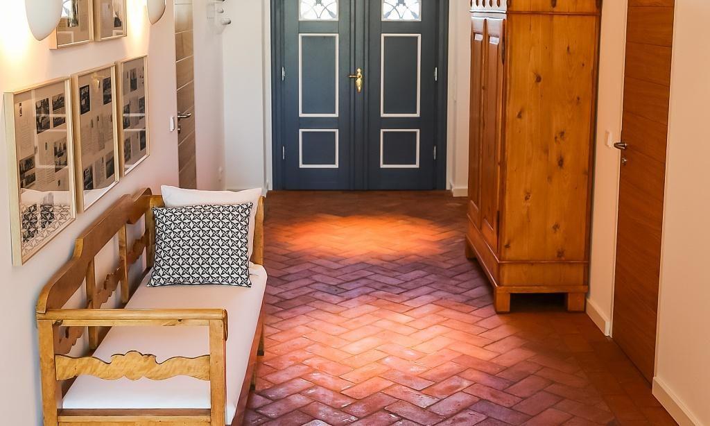 Das heutige Haus ist auf dem Grundriss eines historischen Hallenhauses aus den 1790-iger Jahren erbaut. Den Eigentümern war es wichtig, die Charakteristiken des ehemaligen Bauernhauses zu bewahren - und das nicht nur im äußeren Erscheinungsbild mit Fachwerk, Sprossenfenstern, Klappläden und traditionellen Darßer Haustüren. Auch im Inneren finden sich Zitate, die an das ehemalige Haus erinnern: die große Eingangshalle mit Blick bis in den Garten, die Böden aus handgeformtem Cotto oder auch antike Möbel. Auf modernen Komfort musst du natürlich nicht verzichten: Bodengleiche Duschen, eine exklusive Einbauküche, ein großer Kamin sowie Fußbodenheizung gehören ebenso zur Ausstattung. Die Erdgeschosswohnung verfügt über großzügige 120 Quadratmeter. Tritt ein in den großzügigen Wohnbereich mit einer gemütlichen Sitzecke am Kamin und einem einladenden Essbereich. Die Einbauküche ist sehr exklusiv und komplett ausgestattet. Es erwartet dich außerdem ein Schlafzimmer mit einem Doppelbett (180 cm) und einem Bad en Suite mit einem Doppelwaschtisch und Dusche/WC sowie ein weiteres Schlafzimmer mit Doppelbett (180 cm) und ein separates Bad mit Dusche/WC.