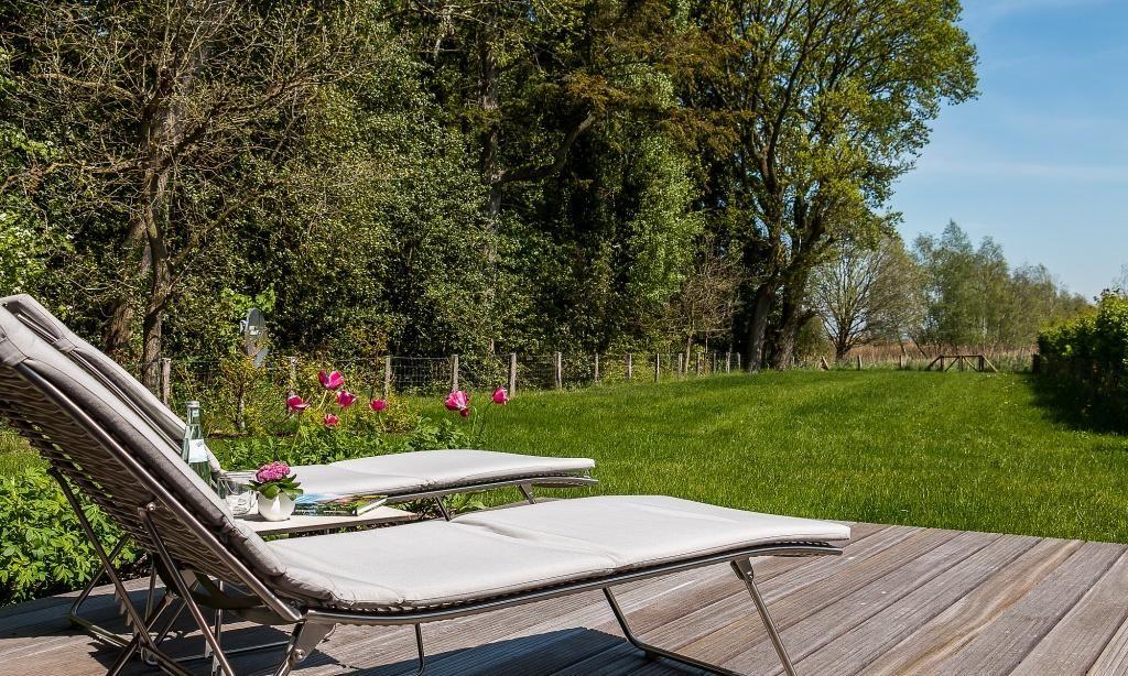 Die Ferienwohnung verfügt über eine herrliche Terrasse zum Bodden mit hochwertigen Gartenmöbeln. Der weitläufige Garten ist circa 1200 Quadratmeter groß und geht direkt in den Schilfgürtel über. Dir stehen neben der Sonnenterrasse auch der angrenzende Teil des Gartens sowie ein PKW-Stellplatz zur Verfügung - auf Anfrage gern mit kostenloser Lademöglichkeit (Voraussetzung ist das mitbringen eines 16A Adapters) für ein Elektrofahrzeug.