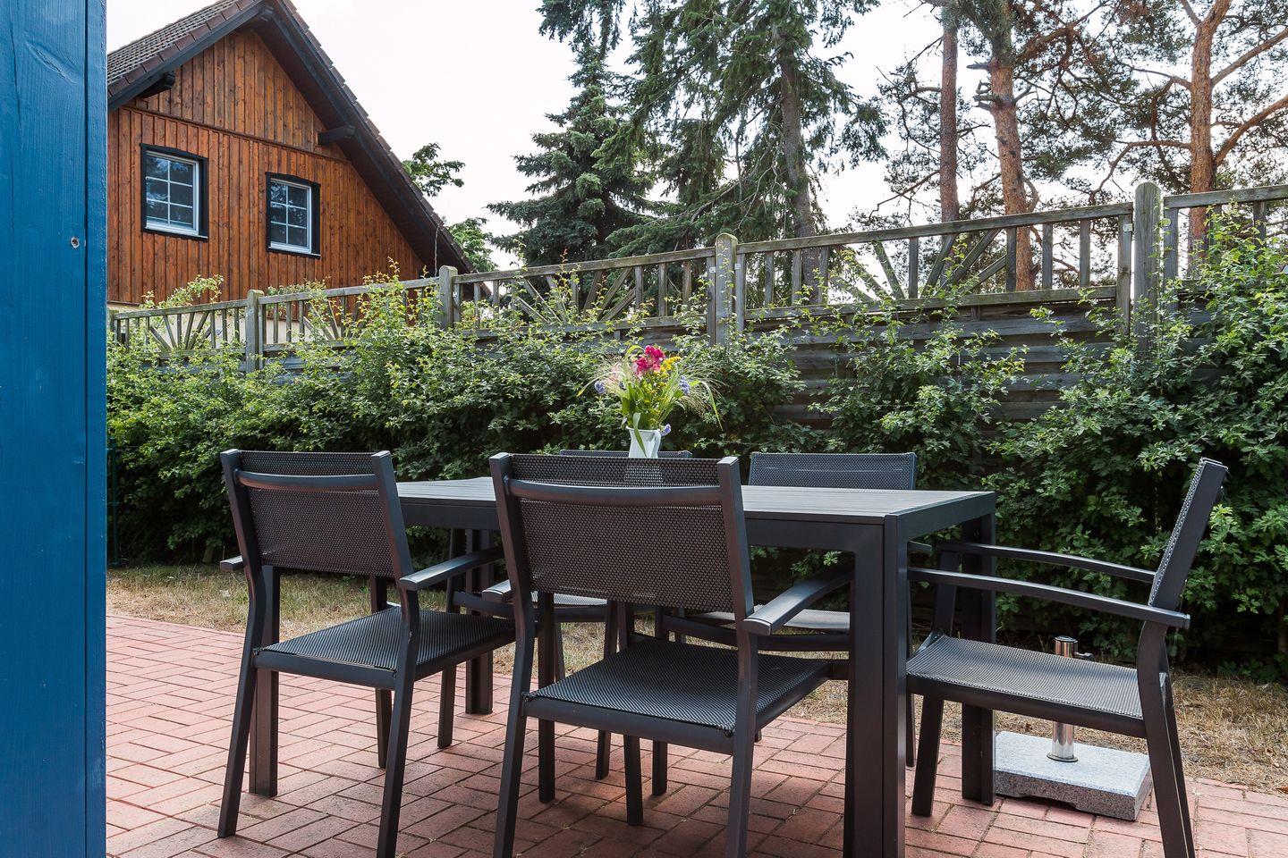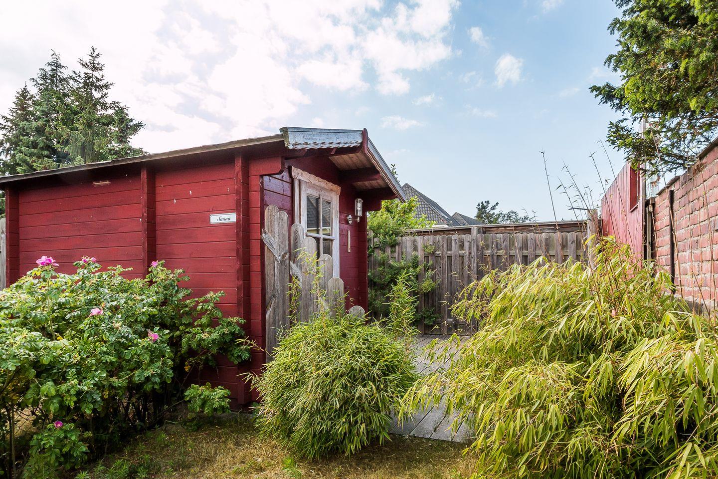 Eine Steinterrasse gehört zum Ferienobjekt dazu und verspricht dank der Bepflanzung drumherum Privatsphäre und Ruhe. Hier kannst du den Tag bei einem sonnigen Frühstück beginnen oder nach Herzenslust ausklingen lassen. Für Saunaliebhaber steht ein separates Saunahäuschen* im Garten, dass von allen Parteien des Ferienensembles genutzt werden kann. Ein PKW-Stellplatz steht dir auf dem Grundstück zur Verfügung.