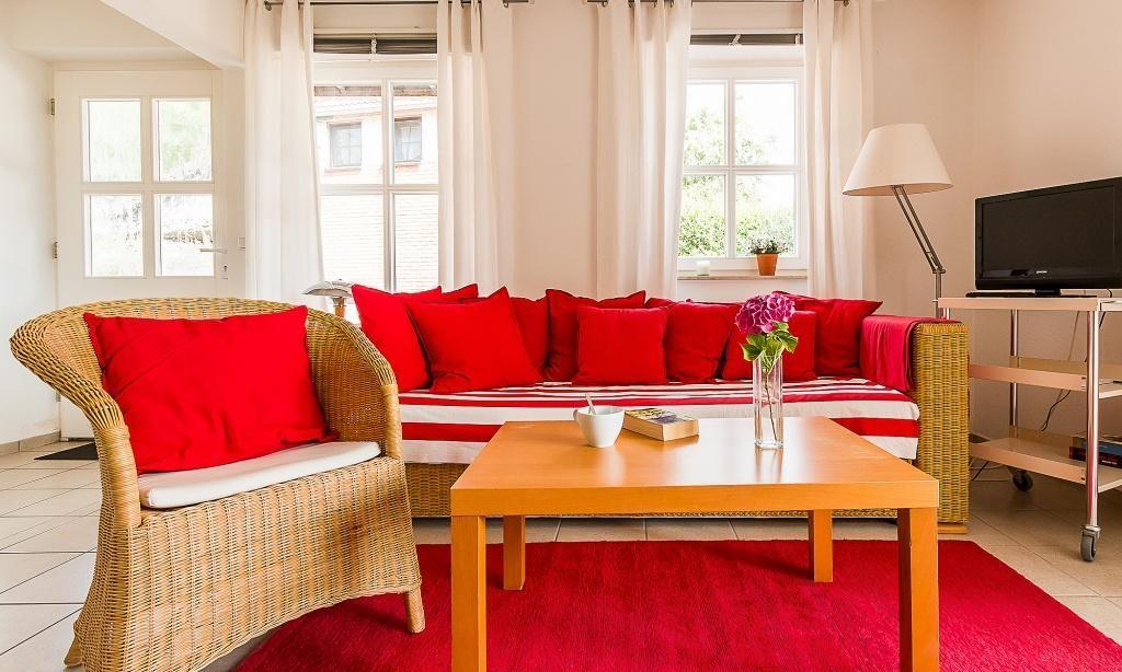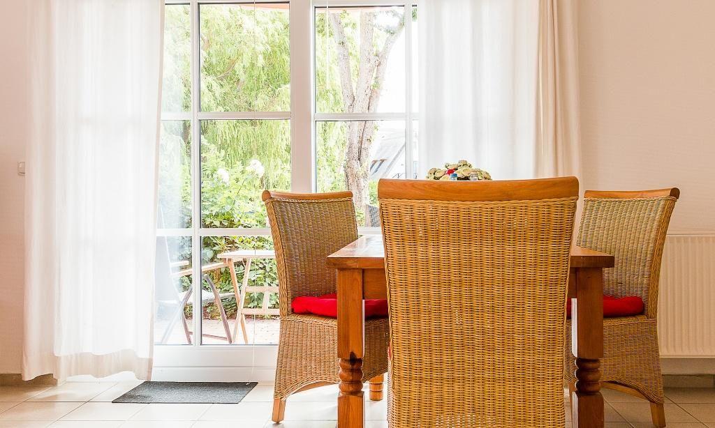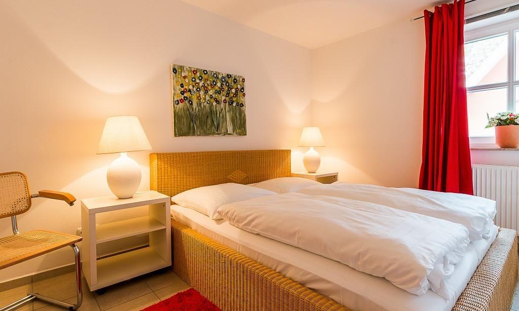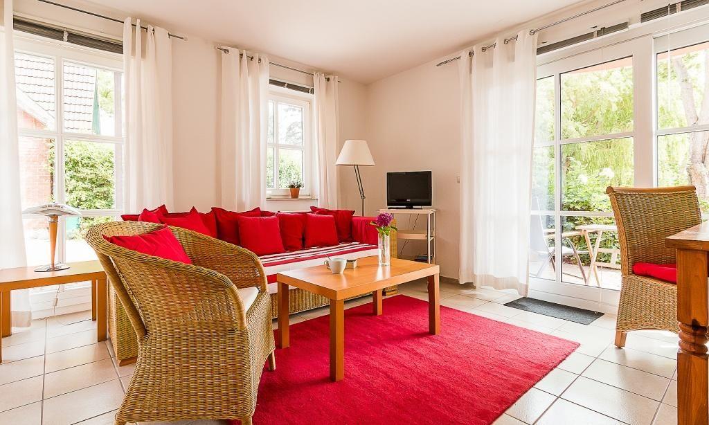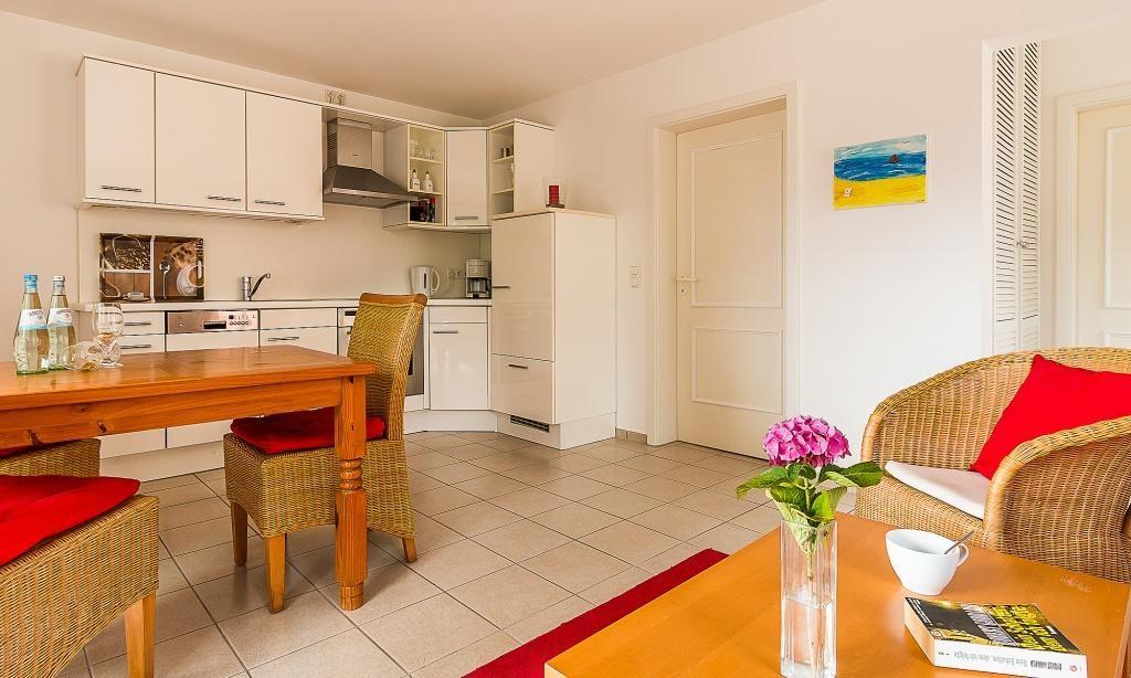 Die niedliche Erdgeschosswohnung befindet sich in einem darßtypischen Ferienhaus unter Reet und versetzt dich dank der hochwertigen Einrichtung und harmonisch abgestimmten Farben sofort in Urlaubsstimmung. In dem offen gestalteten Wohnbereich erwarten dich eine gemütliche Couch mit TV, ein sonniger Esstisch an bodentiefen Fenstern und eine moderne Küchenzeile. Das Schlafzimmer bietet ein Doppelbett und dank dem großzügigen Schrank viel Stauraum für deine Sachen. Komplementiert wird die Ferienwohnung durch das Tageslichtbad mit Dusche/WC und Waschmaschine.