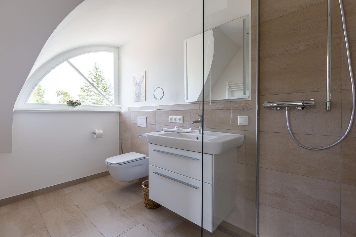 Herzlich willkommen in dieser wunderschönen Doppelhaushälfte. Hier ist wirklich an alles gedacht worden, das zum Wohnkomfort im Urlaub gehört. Durch den Flur gelangst du in den lichtdurchfluteten und großzügigen Wohn- und Küchenbereich. Dank der vollausgestatteten Küche und dem gemütlichen Essplatz kannst du hier mit der ganzen Familie nach Herzenslust kochen und klönen. Ein kleiner Loungebereich mit Ledercouch, Sessel und TV befindet sich nah am Kamin und lädt zu erholsamen Abendstunden ein. Ebenfalls im Erdgeschoss befindet sich ein Gäste-WC mit Waschmaschine und Trockner. Beide Geräte werden über einen Münzautomaten betrieben. Über die Treppe gelangst du in das erste Obergeschoss. Hier befinden sich die zwei identisch eingerichteten Schlafzimmer. Die hochwertigen Doppelbetten, Einbauschränke und je ein TV bieten den perfekten Rückzugsraum und erholsamen Schlaf, den du dir im Urlaub wünschst. Beide Schlafzimmer sind mit einem stylischen Bad en suite verbunden, dass du durch eine Schiebetür abtrennen kannst. Ein besonderes Highlight ist die großzügige Sauna im Dachgeschoss des Hauses. Hier kannst du dich nach erlebnisreichen Tagen entspannen, Kraft tanken und es dir einfach gut gehen lassen. Bitte beachte, dass die Sauna per Münzzahlung genutzt wird.